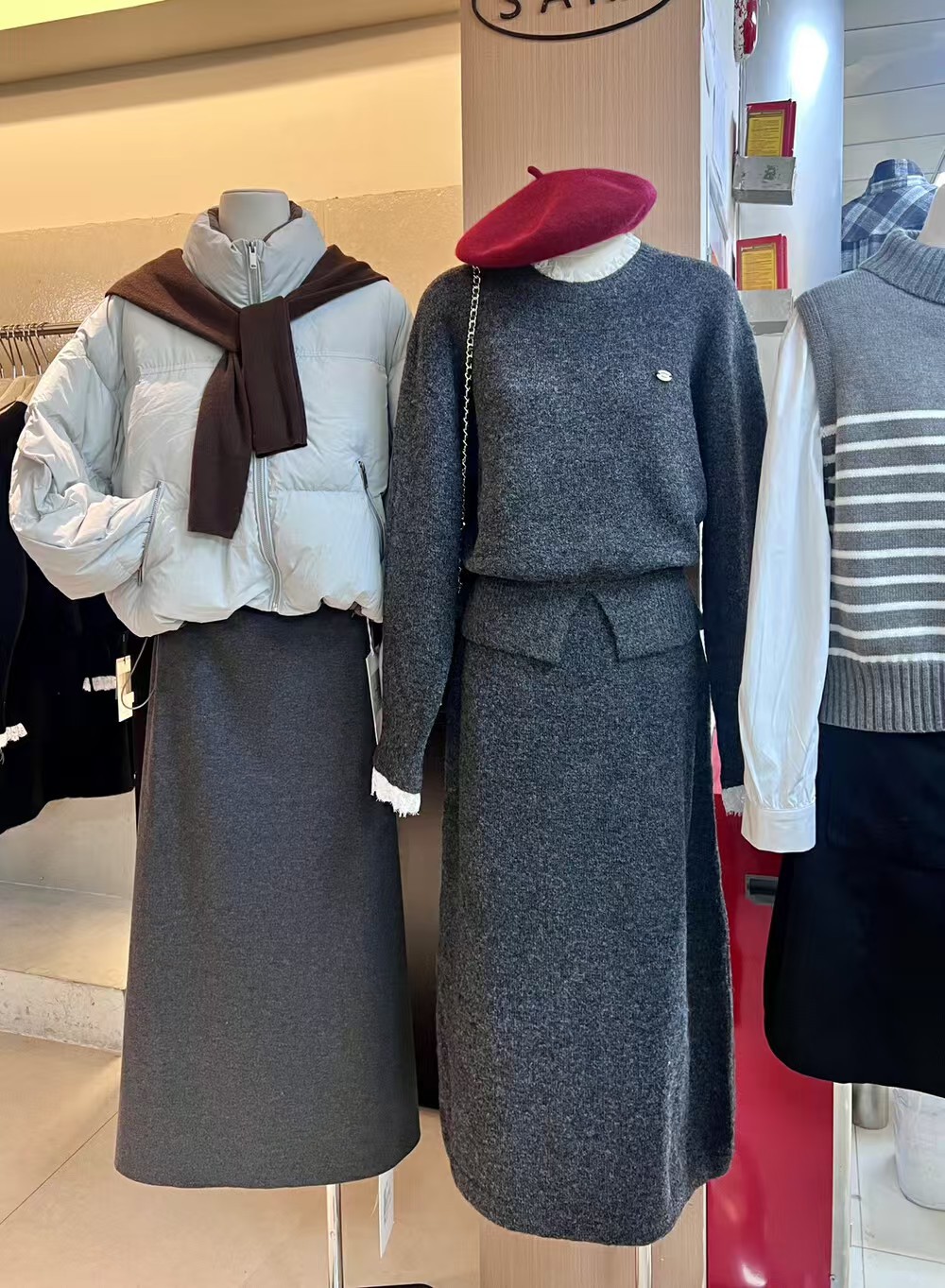 카이유상 LSARAJ 겨울 프렌치 스타일 달콤한 레이스 스티치 라운드넥 스웨터와 신축성 있는 허리 스커트 세트스토어 가기