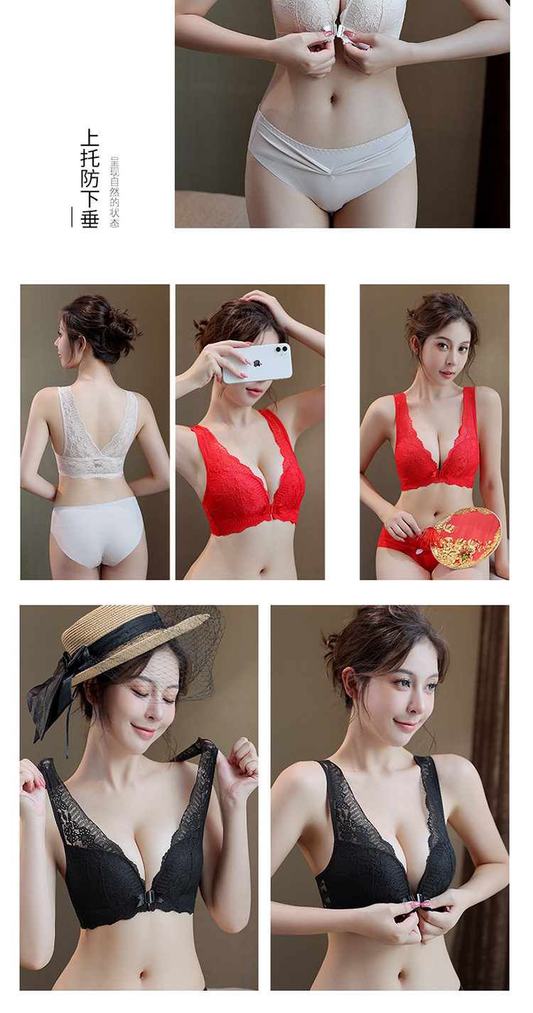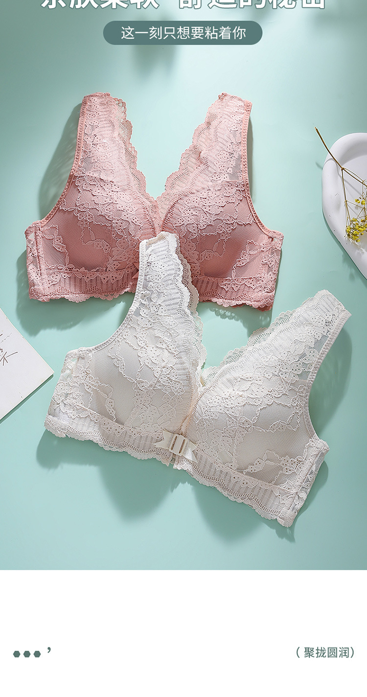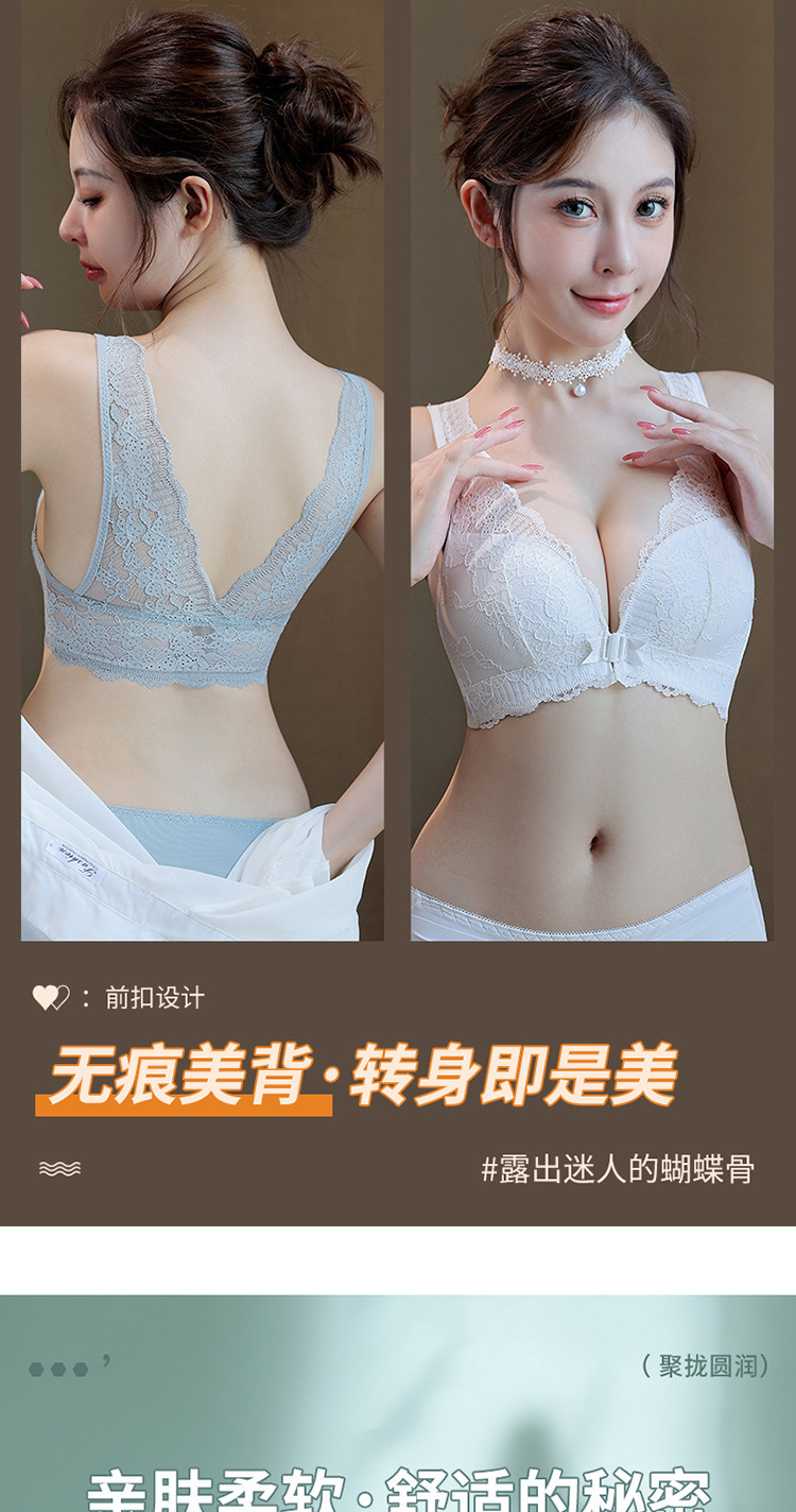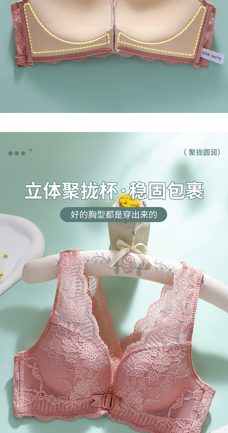 큰 가슴 작은 속옷 섹시한 레이스 푸시 업 프론트 오프닝 버클 속옷 얇은 여성의 아름다운 등 통기성 안티 처짐 브래지어스토어 가기
