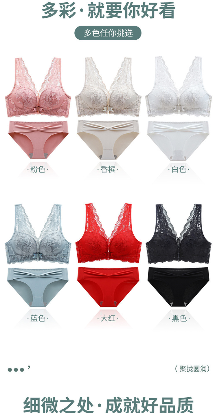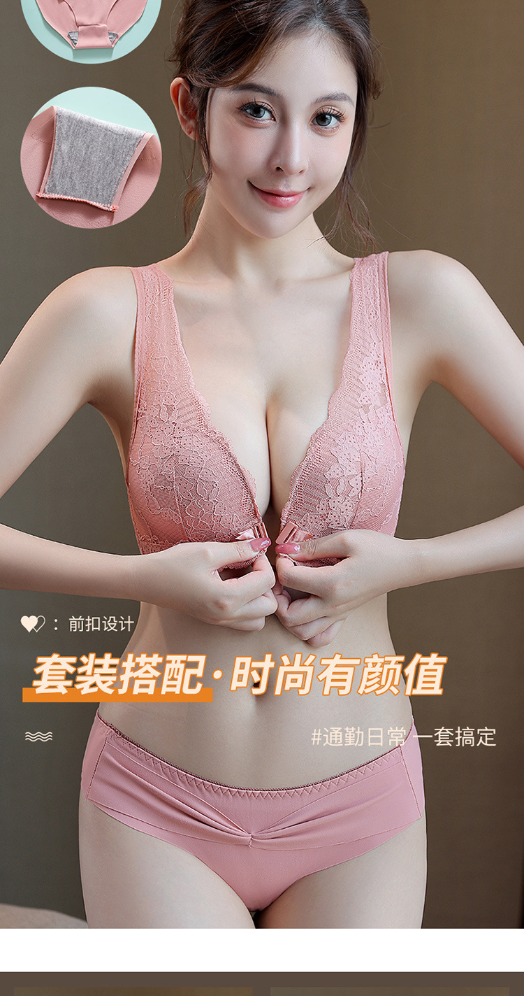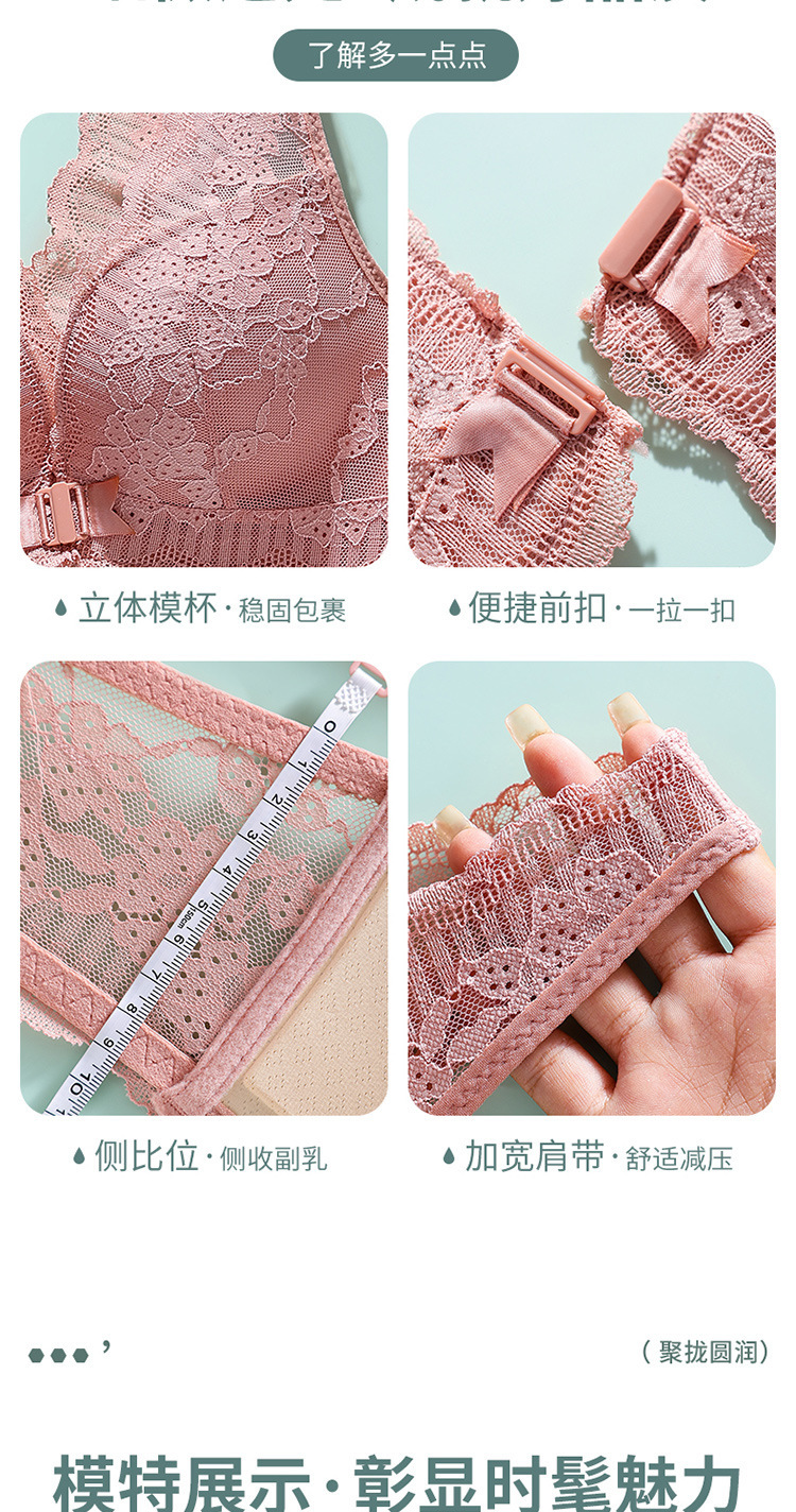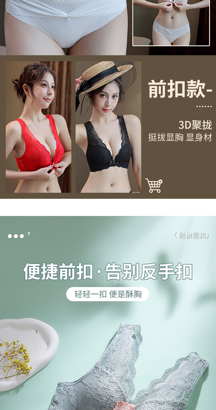 큰 가슴 작은 속옷 섹시한 레이스 푸시 업 프론트 오프닝 버클 속옷 얇은 여성의 아름다운 등 통기성 안티 처짐 브래지어스토어 가기