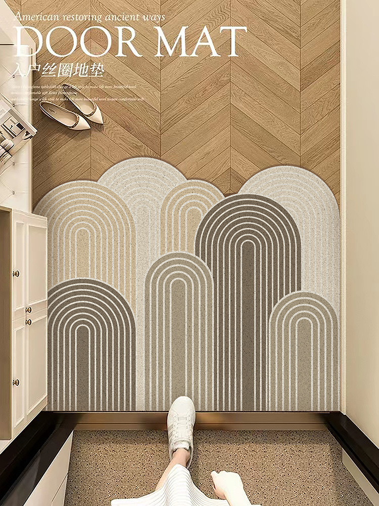 미국 스타일 올 매치 얼룩 방지 인쇄 실크 링 바닥 매트 입구 문 통로 먼지 제거 pvc 진흙 긁기 매트를자를 수 있습니다스토어 가기