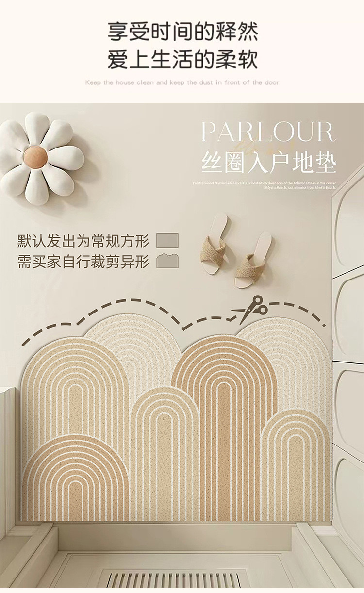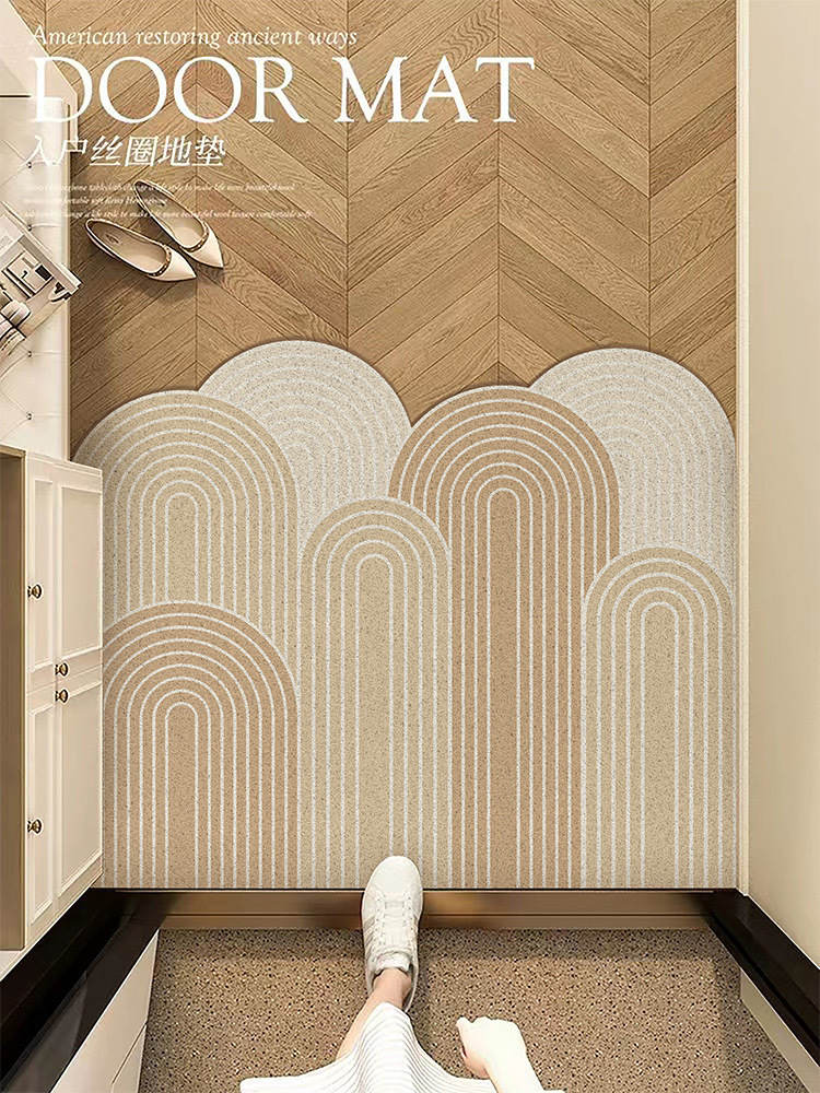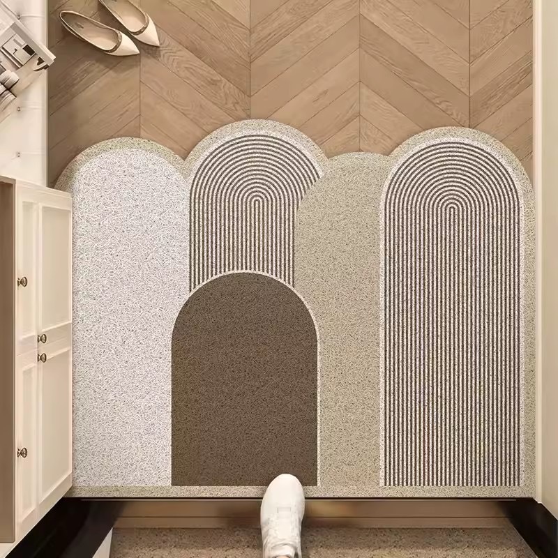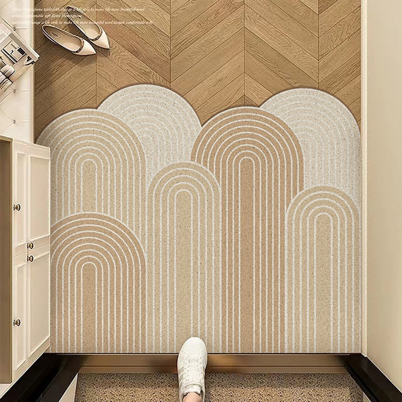 미국 스타일 올 매치 얼룩 방지 인쇄 실크 링 바닥 매트 입구 문 통로 먼지 제거 pvc 진흙 긁기 매트를자를 수 있습니다