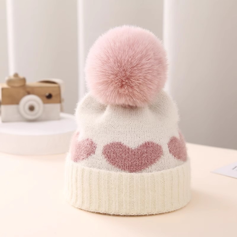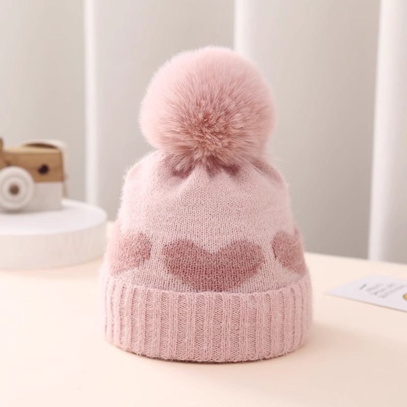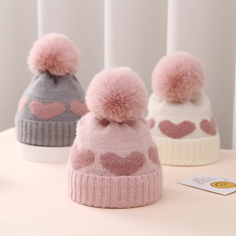 겨울 아기 모자, 이중 레이어 두꺼운 자카드 러브 니트 모자, 0-12개월 신생아 모직 모자, 해외 도매스토어 가기