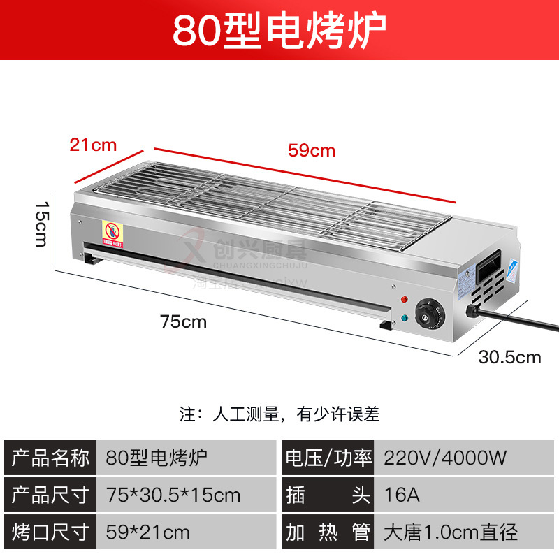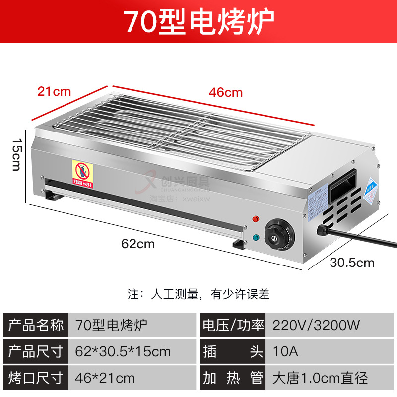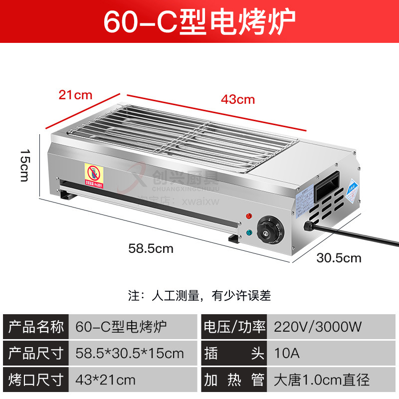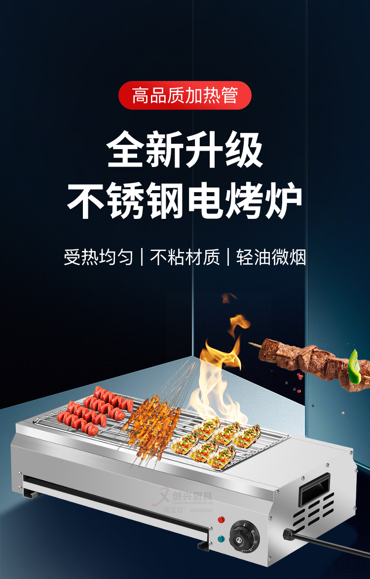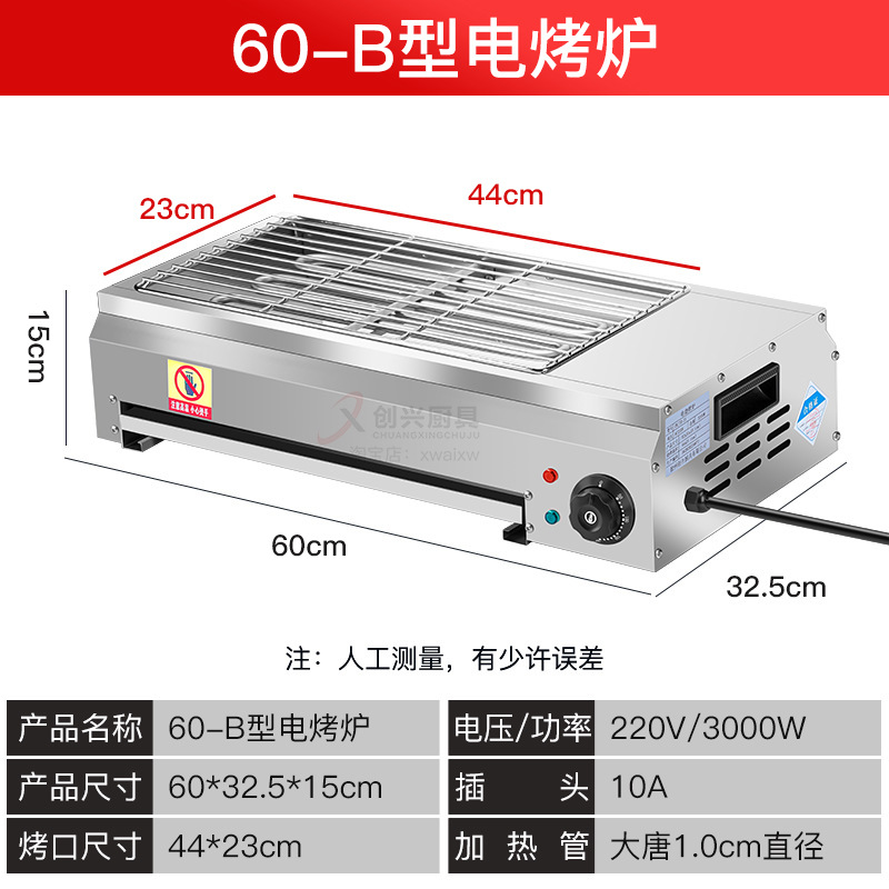 전기 그릴 전문 스테인레스 스틸 바베큐 선반 두꺼운 전기 그릴 가정용 바베큐 휴대용 꼬치 스토브 상업