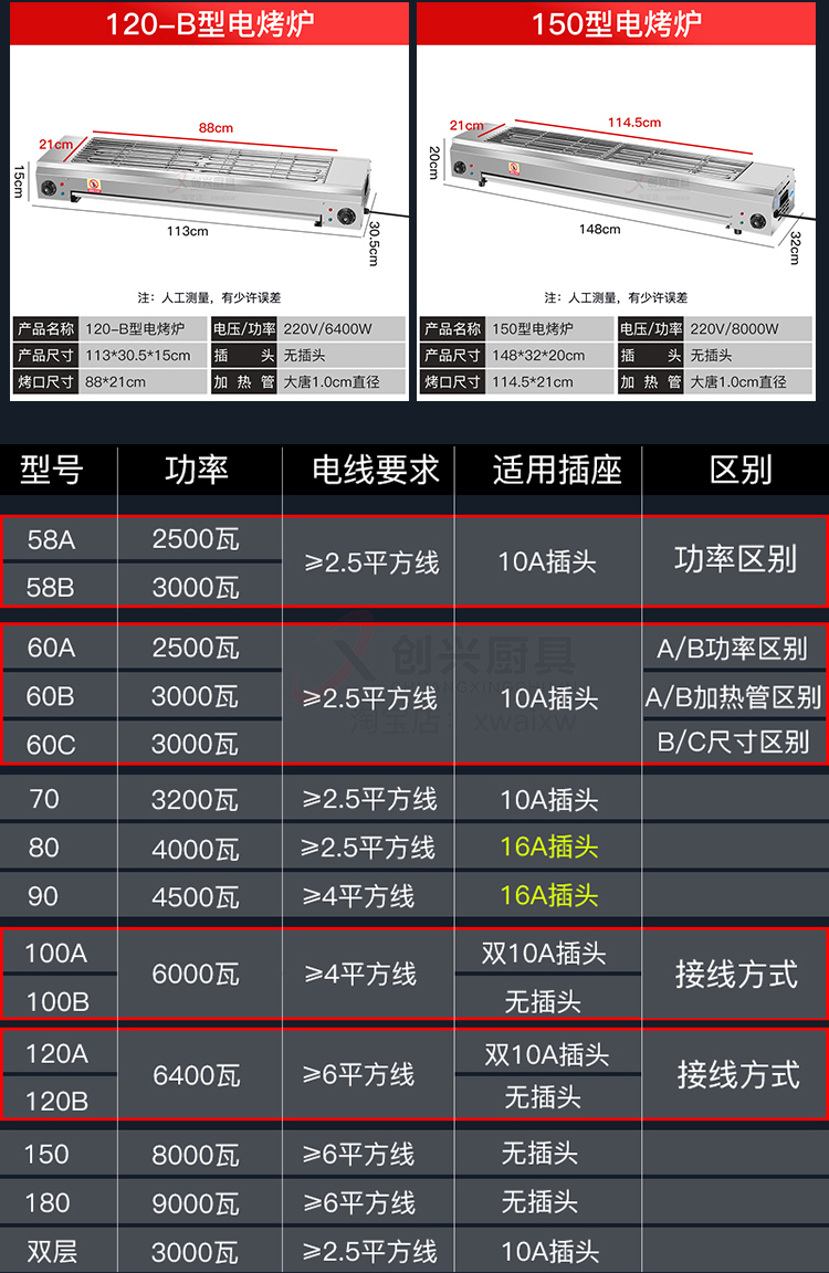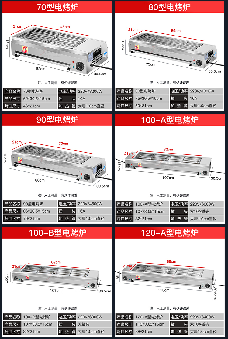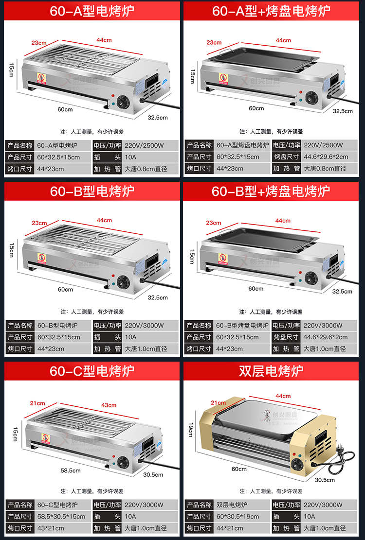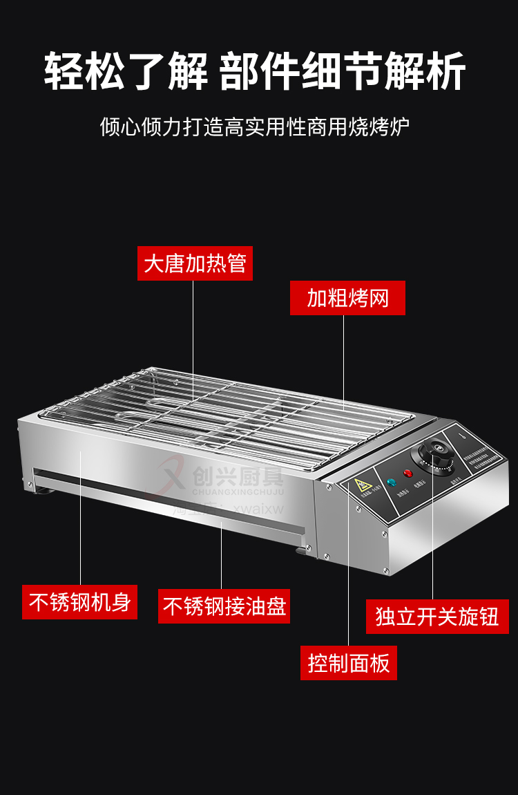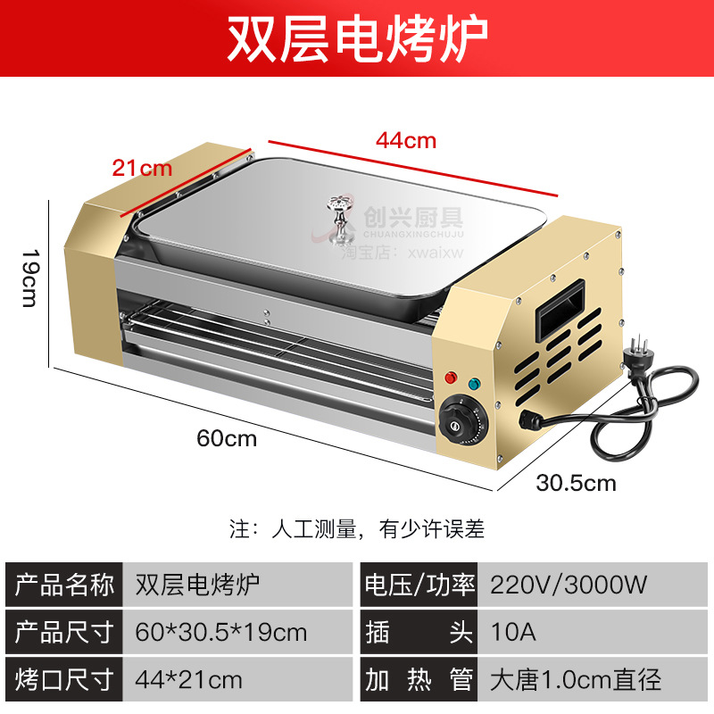 전기 그릴 전문 스테인레스 스틸 바베큐 선반 두꺼운 전기 그릴 가정용 바베큐 휴대용 꼬치 스토브 상업