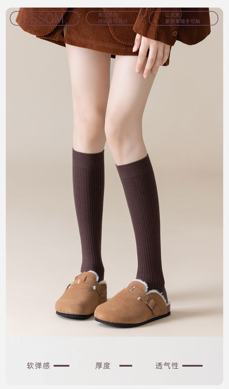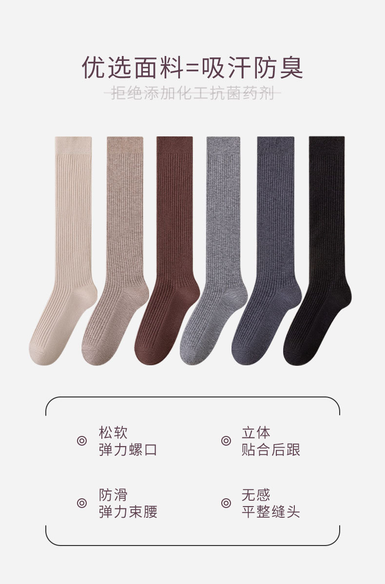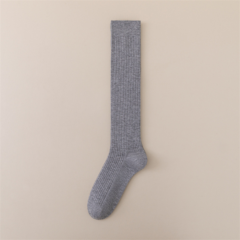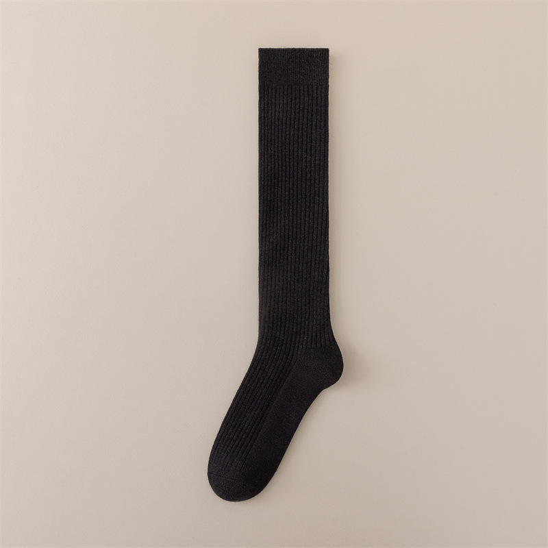 가을과 겨울 양모 송아지 양말 따뜻한 패딩 안감 캐시미어 무릎 양말 단색 한국식 수직 긴 튜브 스타킹