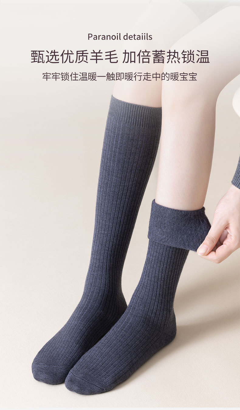 가을과 겨울 양모 송아지 양말 따뜻한 패딩 안감 캐시미어 무릎 양말 단색 한국식 수직 긴 튜브 스타킹스토어 가기