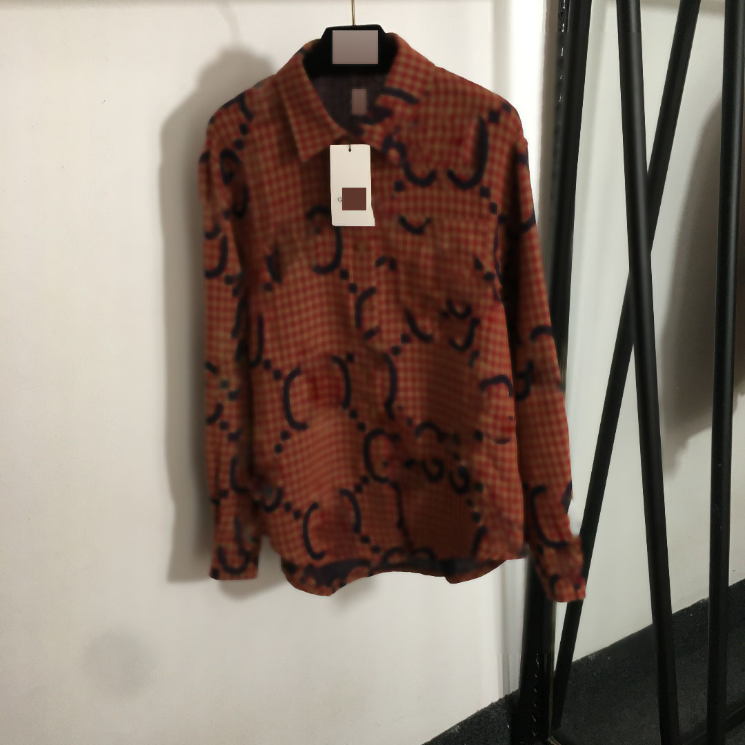 2025년 남유 무역 인기 패션 유럽 및 미국 여성복 올드 플라워 더블 G 레터 프린트 체크무늬 긴팔 순면 셔츠