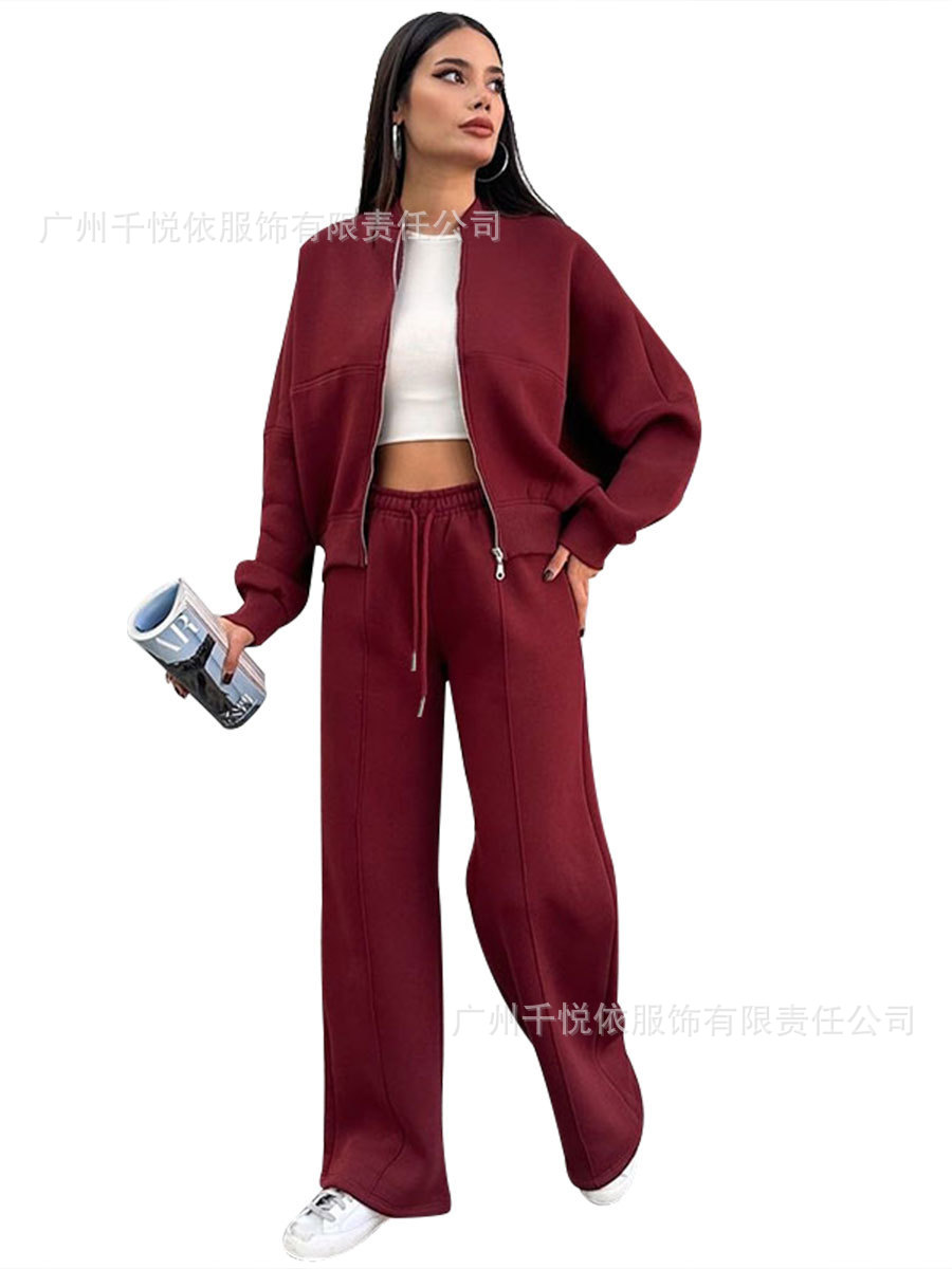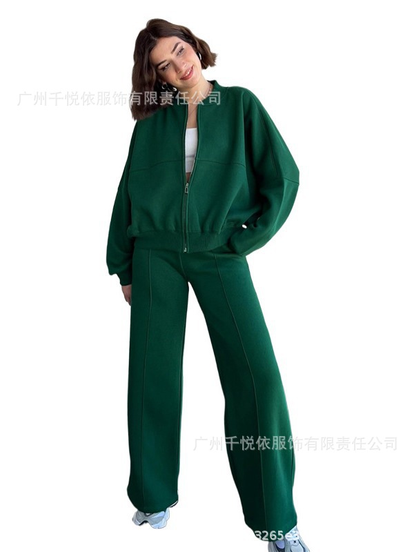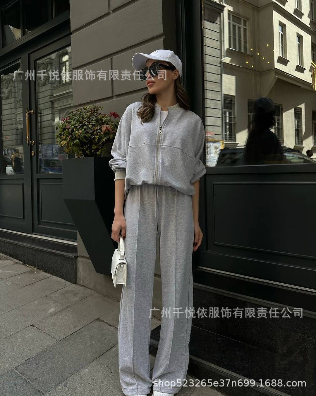 2024 봄, 가을 스웨트 셔츠 투피스 세트 여성 유럽과 미국의 국경 간 트렌드 패션 캐주얼 지퍼 카디건 바지