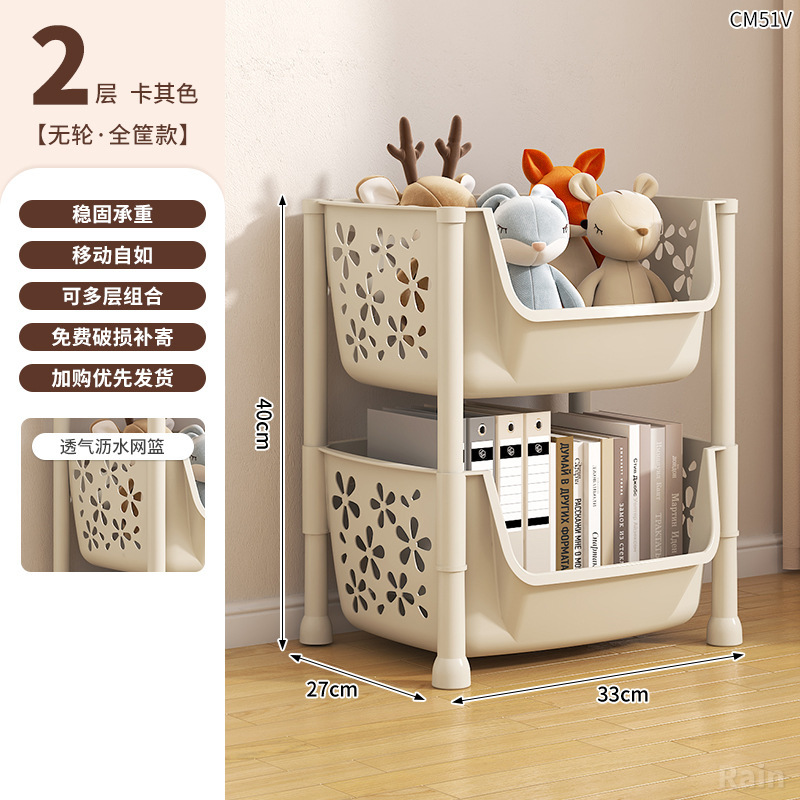 • 바퀴가 없는 플라스틱 2겹 2바구니 카키색