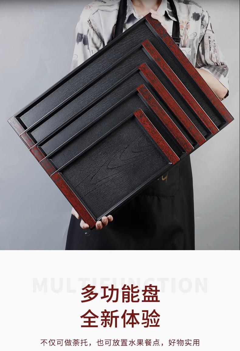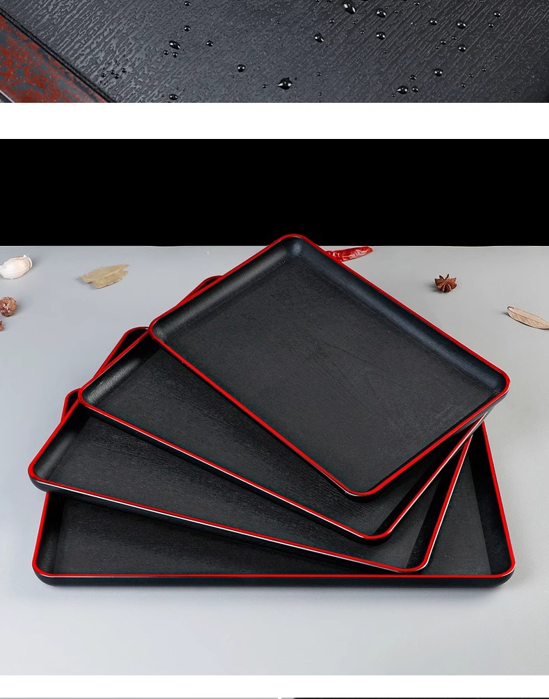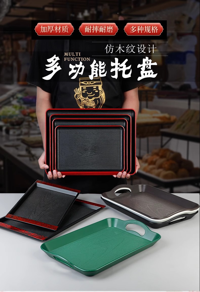 플라스틱 트레이 직사각형 레스토랑 미끄럼 방지 휴대용 디너 플레이트 일본식 상업용 대형 바이노럴 트레이 핸들