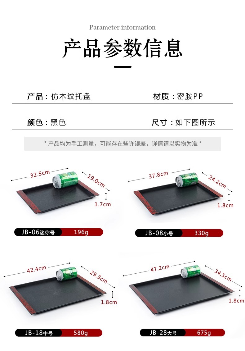 플라스틱 트레이 직사각형 레스토랑 미끄럼 방지 휴대용 디너 플레이트 일본식 상업용 대형 바이노럴 트레이 핸들스토어 가기