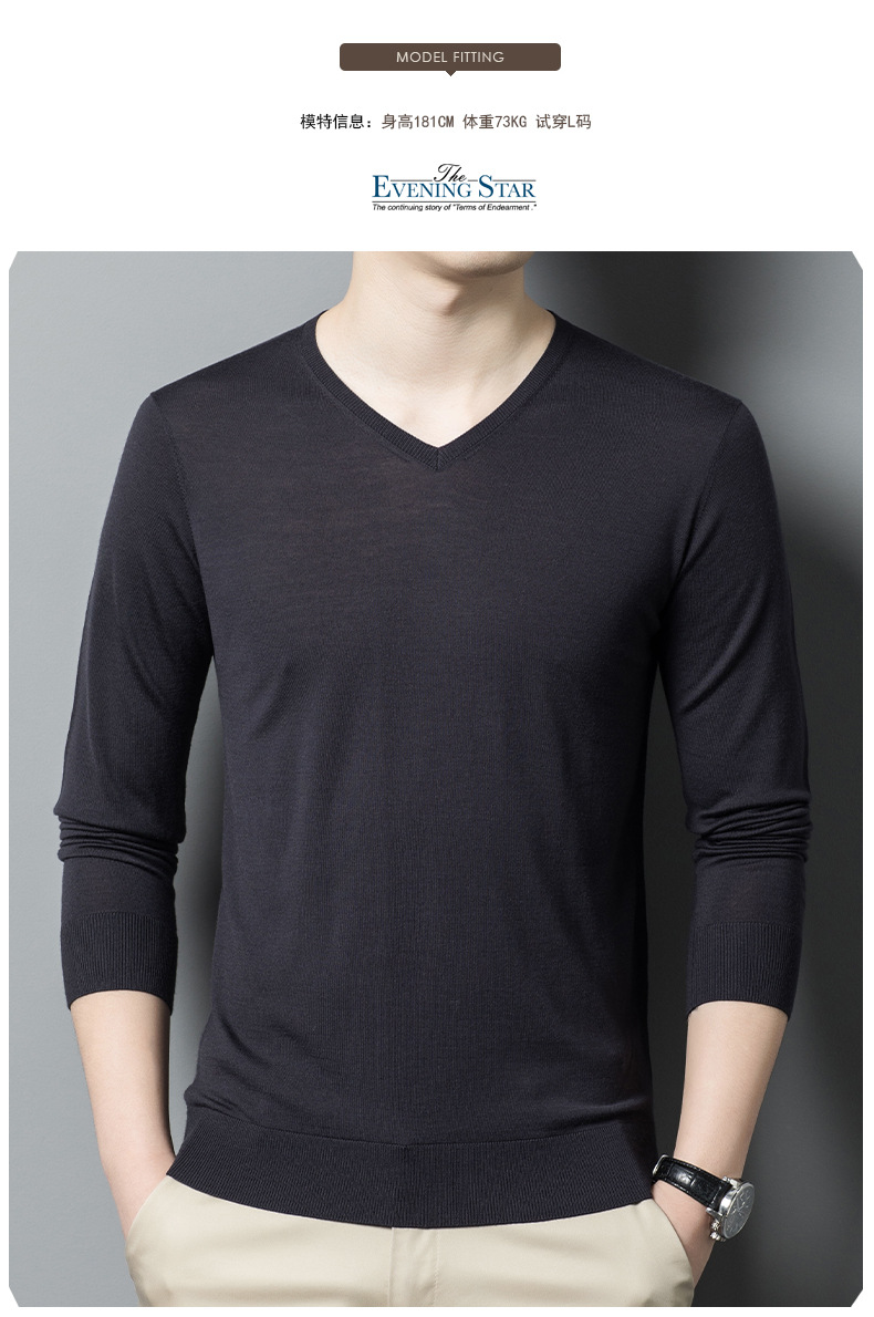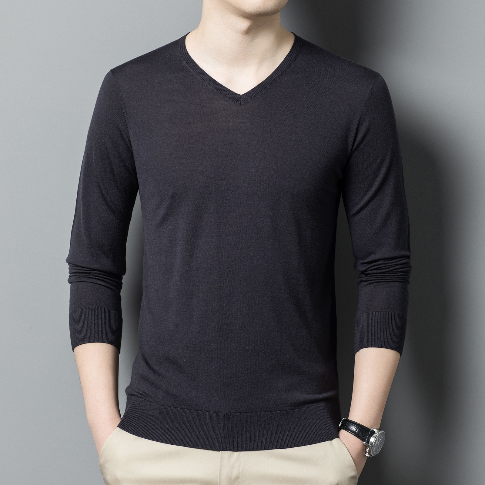 봄과 가을 새로운 60 최악의 모직 스웨터 남자 V 넥 스웨터 얇은 바디 피팅 넥타이베이스 스웨터스토어 가기