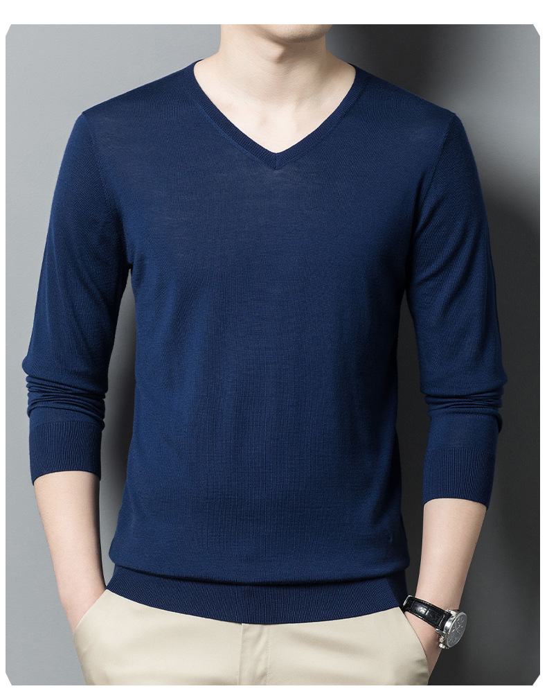 봄과 가을 새로운 60 최악의 모직 스웨터 남자 V 넥 스웨터 얇은 바디 피팅 넥타이베이스 스웨터