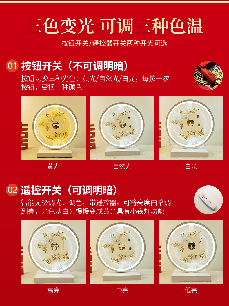 새로운 중국 스타일 웨딩 테이블 램프 신부 Dowry 램프 웨딩 룸 침실 장식 침실 램프 웨딩 로맨틱 선물 웨딩 램프스토어 가기