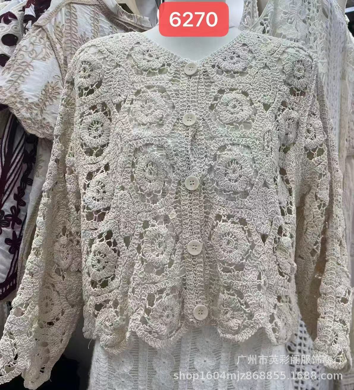 프랑스 중공업 크로 셰 빈티지 V-Neck 레이스 자수 중공 디자인 짧은 니트 카디건 선 스크린 최고 여성스토어 가기