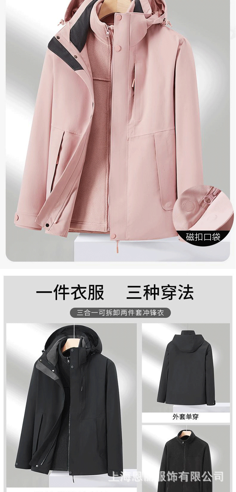 소스 제조업체 3 대 1 충전 의류 방풍 방수 야외 남성 및 여성 2 피스 등산 라이너 작업복스토어 가기