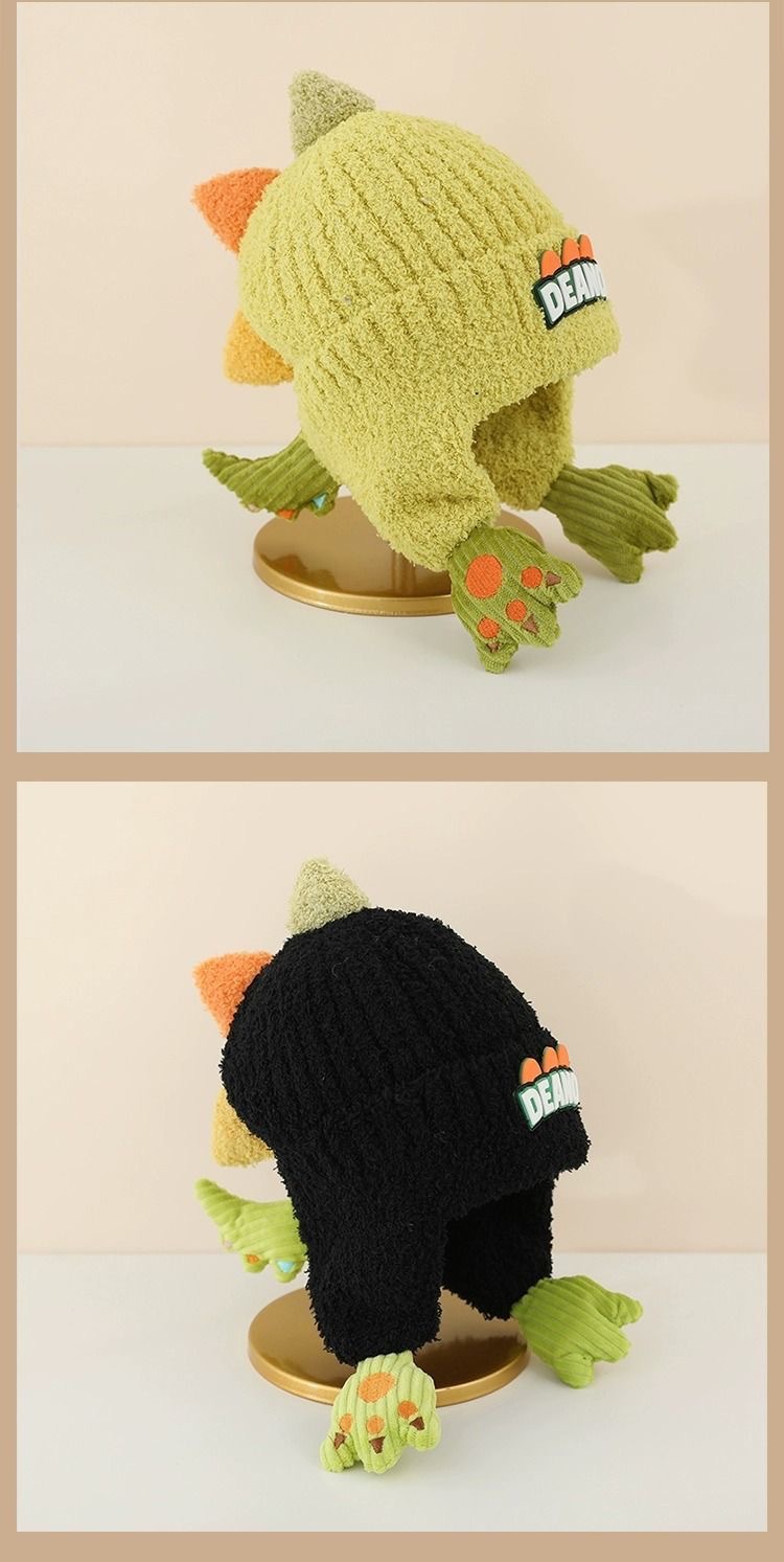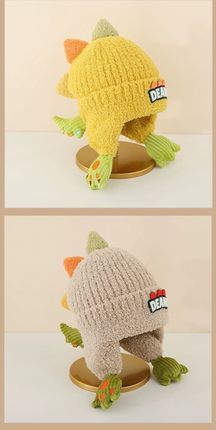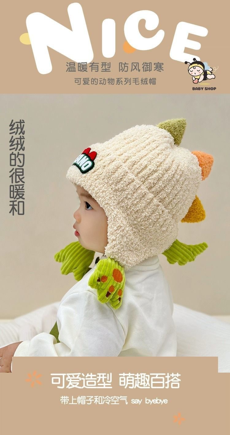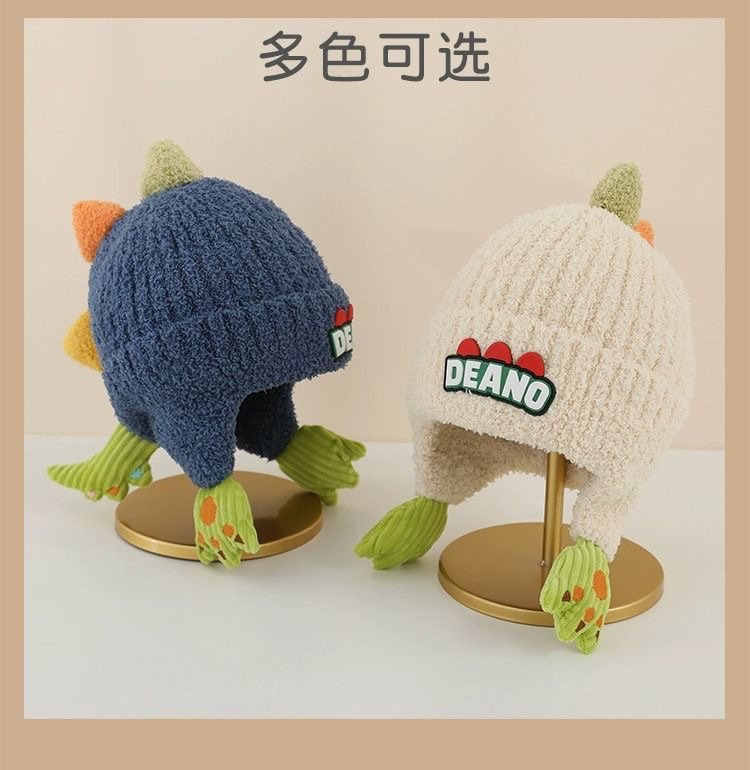 어린이 모자 가을과 겨울 귀 보호 니트 모자 두꺼운 아기 풀오버 캡 공룡 소년과 소녀 따뜻한 양모 모자스토어 가기