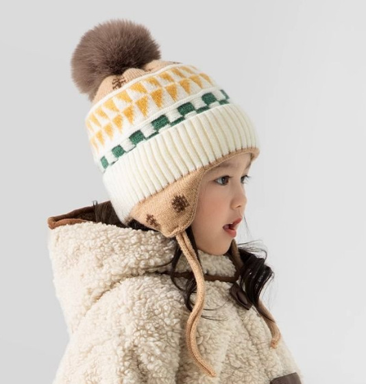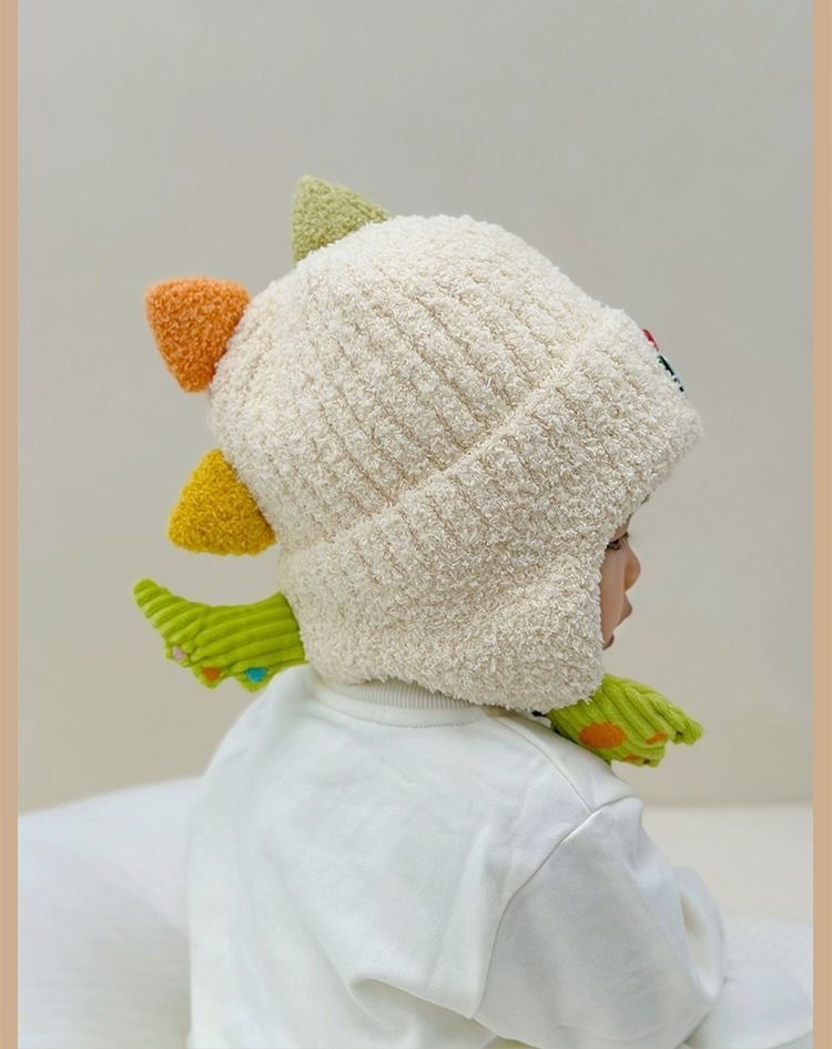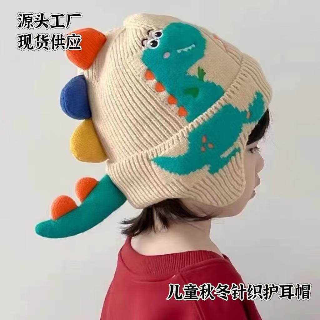 어린이 모자 가을과 겨울 귀 보호 니트 모자 두꺼운 아기 풀오버 캡 공룡 소년과 소녀 따뜻한 양모 모자