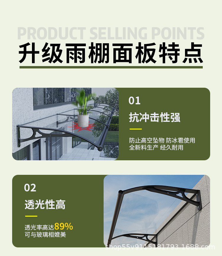 알루미늄 합금 캐노피 브래킷 대형 싱크대 곡선 창 발코니 내구성 보드 투명한 그늘 가정용 캐노피