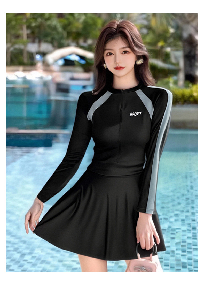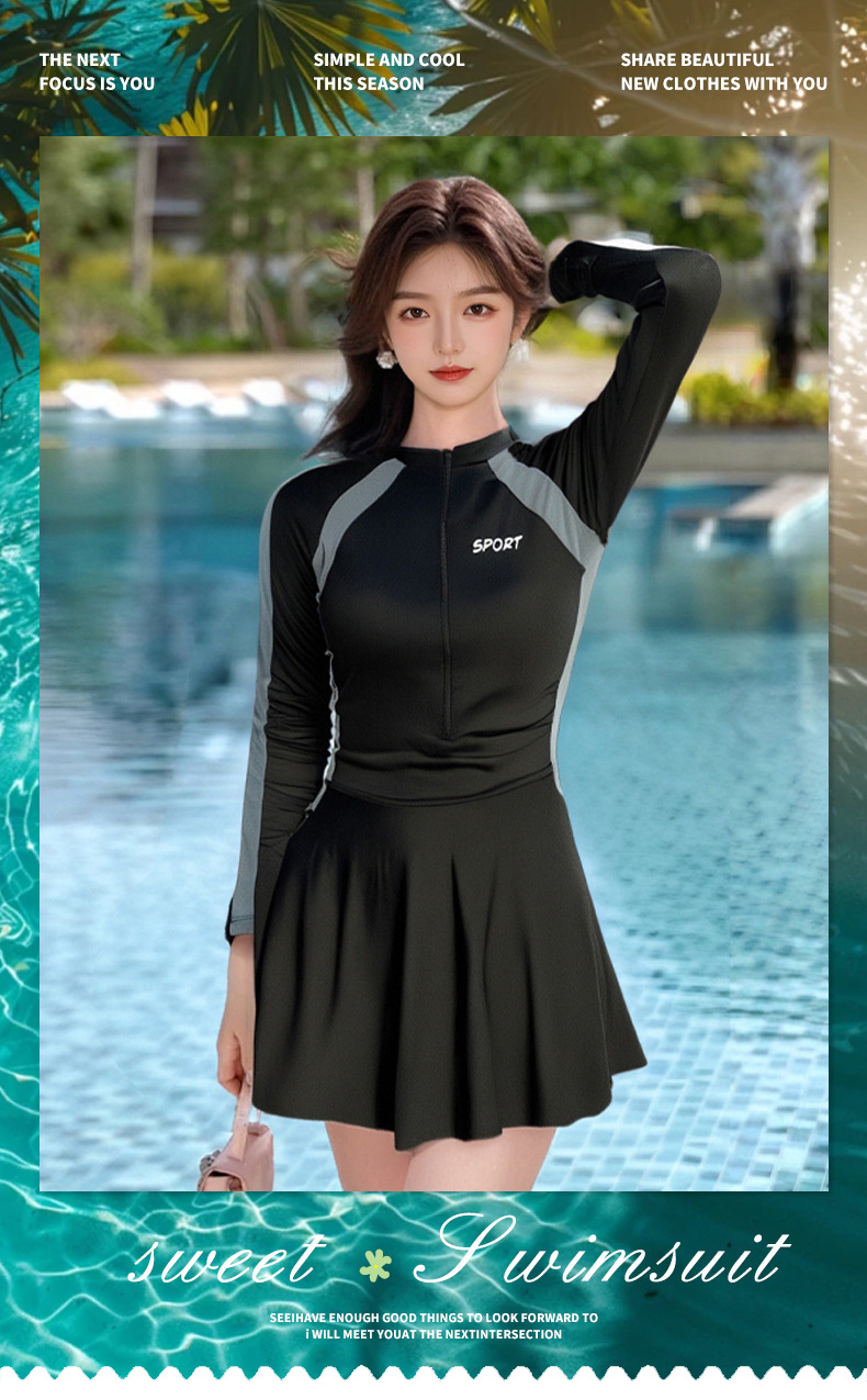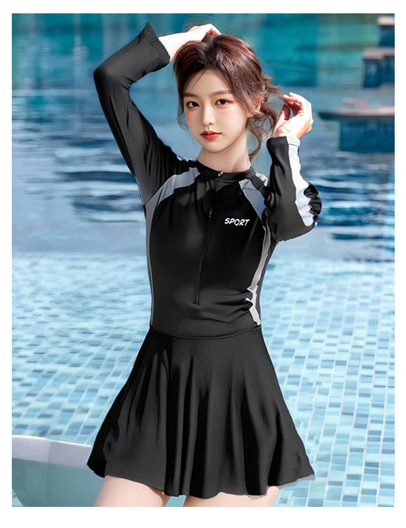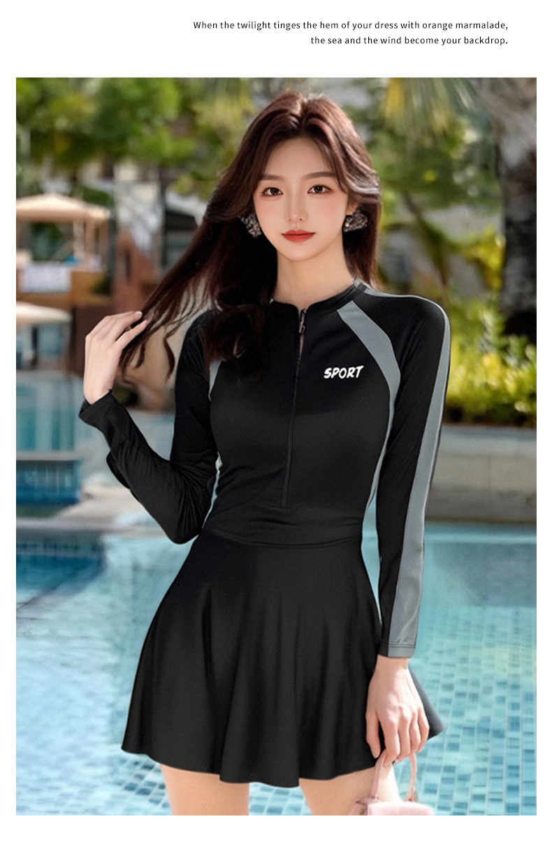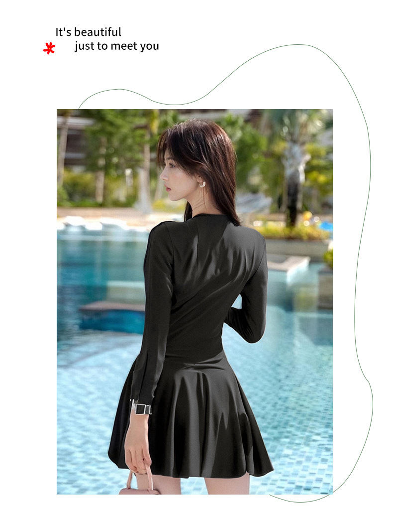 长袖防晒运动泳衣女连体裙式遮肚显瘦微胖妹妹温泉海边学生游泳