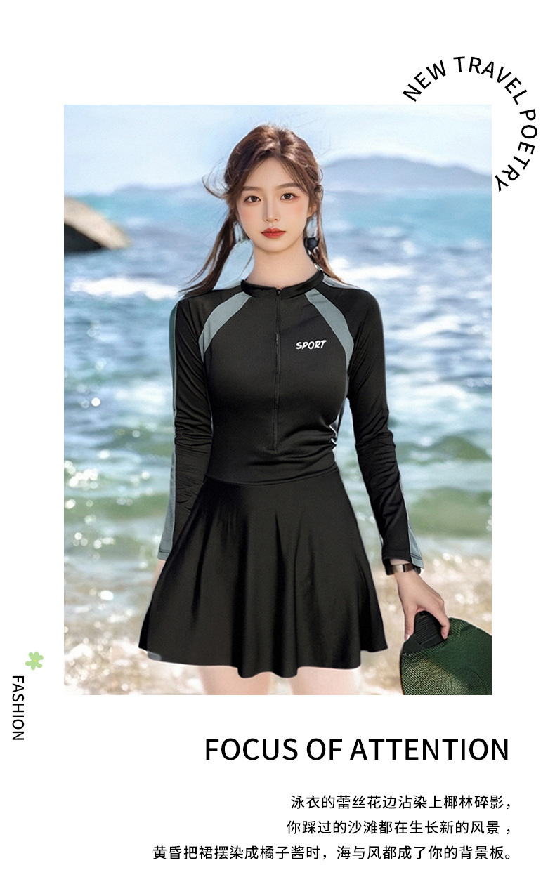 游泳衣女新款连体专业速干长袖保守平角修身显瘦运动冲浪泳装女