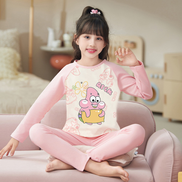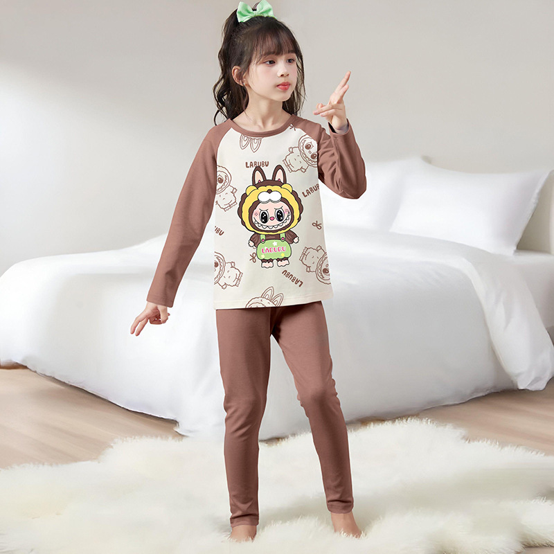 도매 가을과 겨울 두꺼운 기초 따뜻한 벨벳 소녀 잠옷 큰 어린이 만화 귀여운 소녀 홈 의류 세트