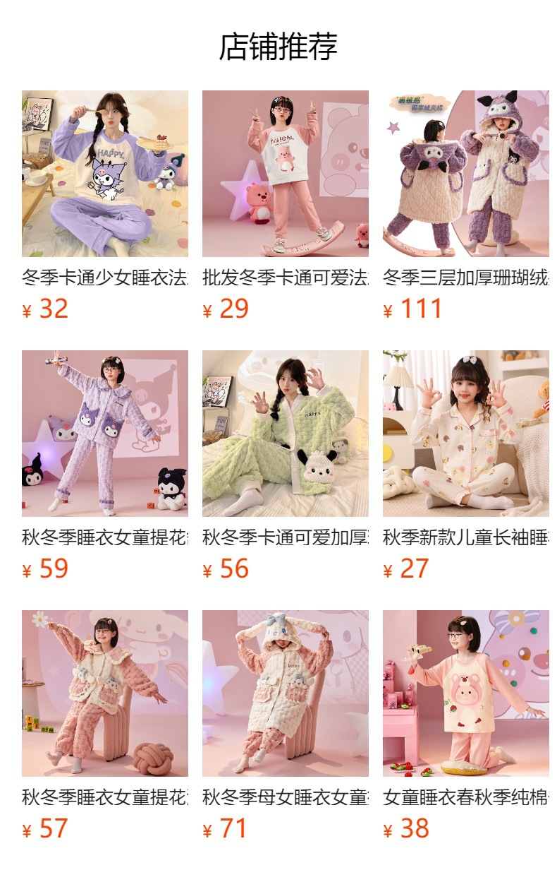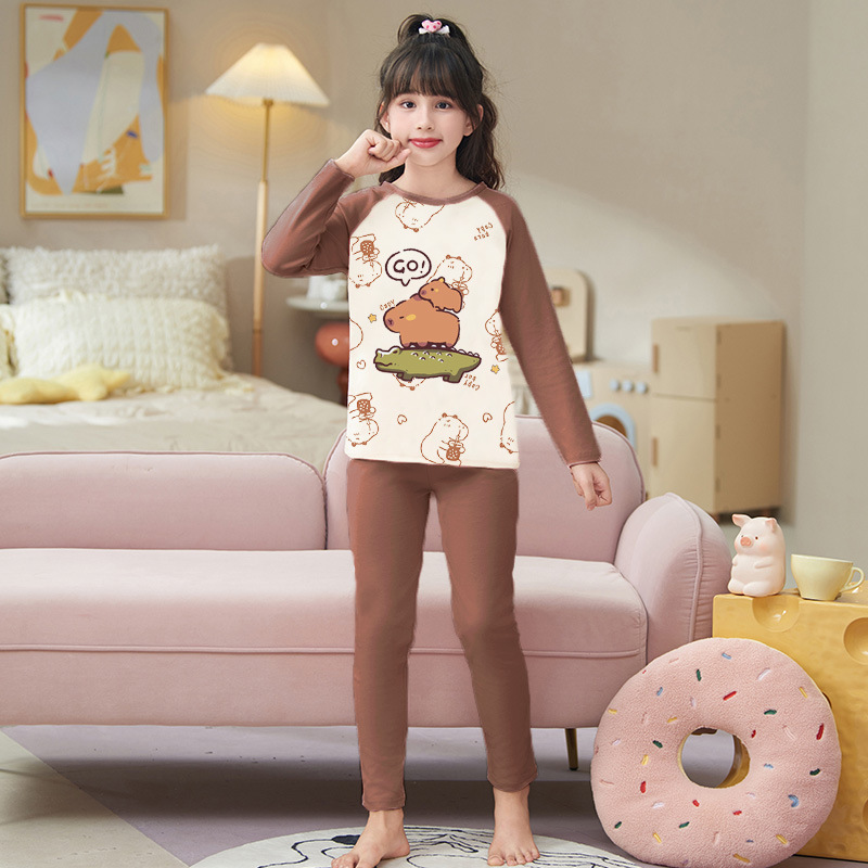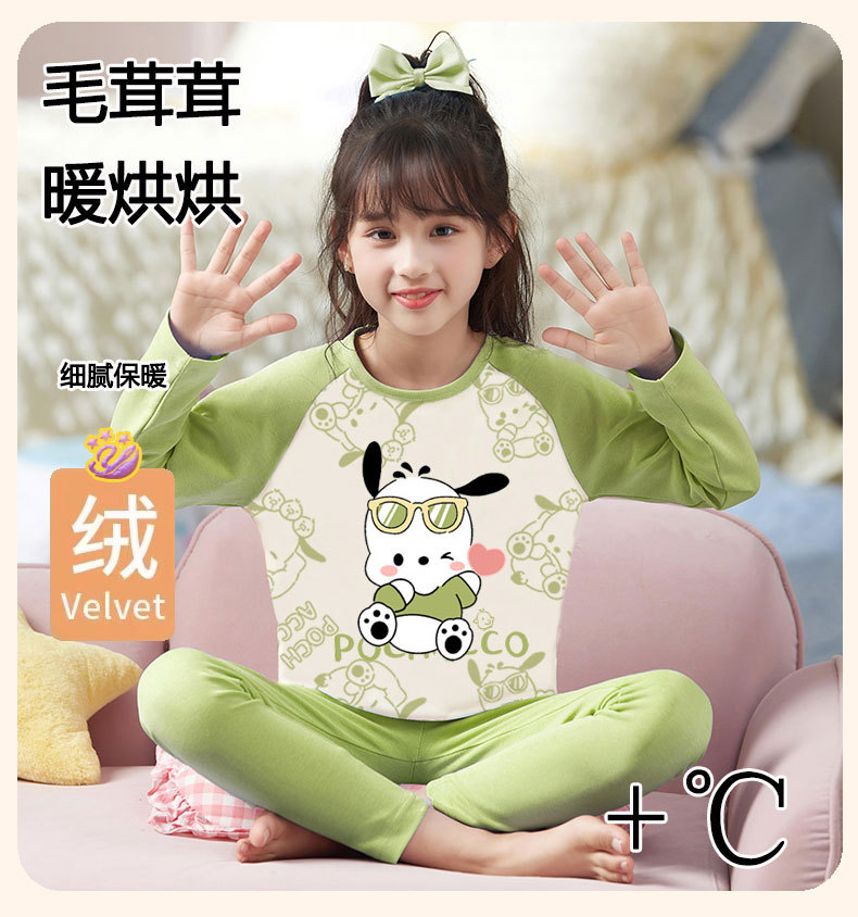 도매 가을과 겨울 두꺼운 기초 따뜻한 벨벳 소녀 잠옷 큰 어린이 만화 귀여운 소녀 홈 의류 세트스토어 가기