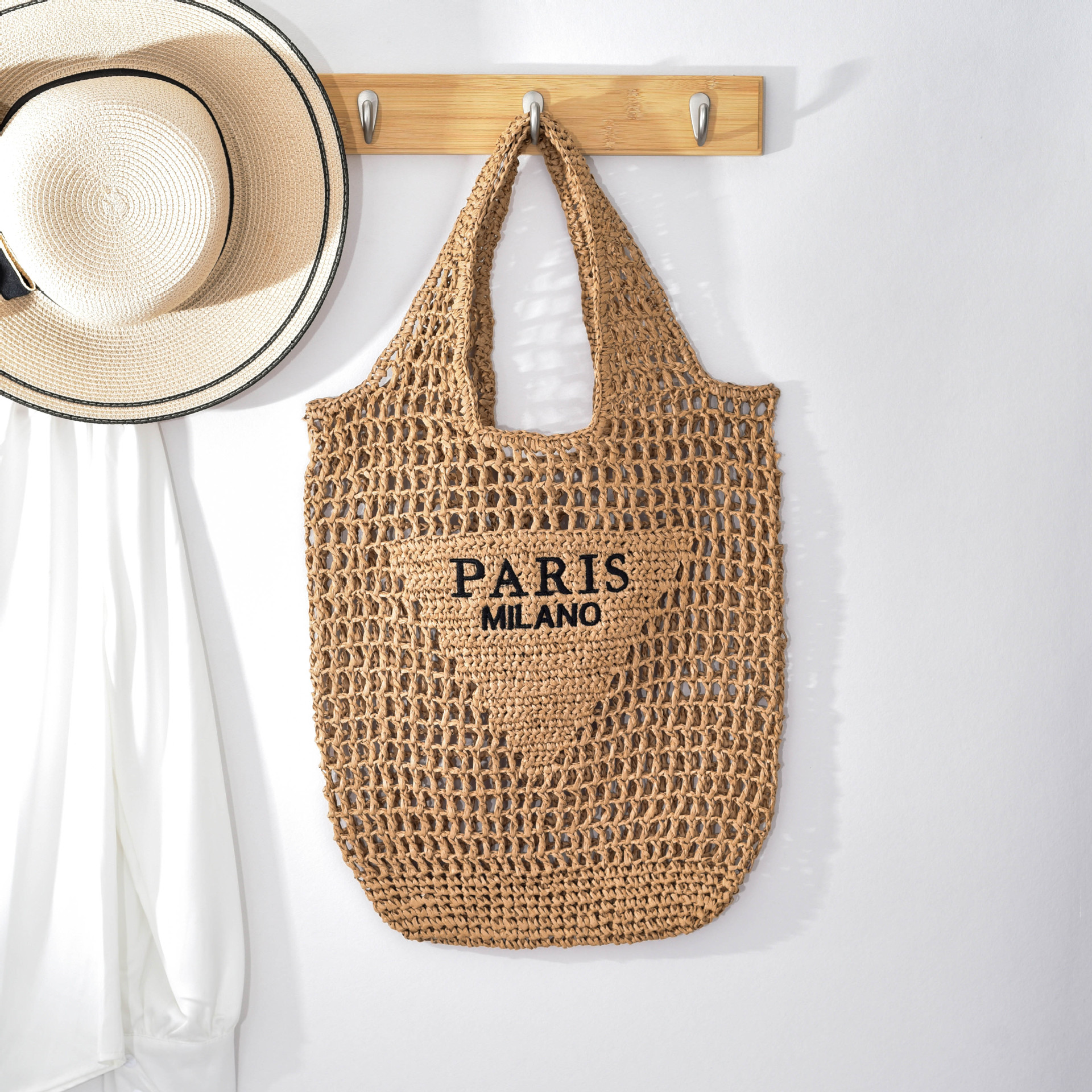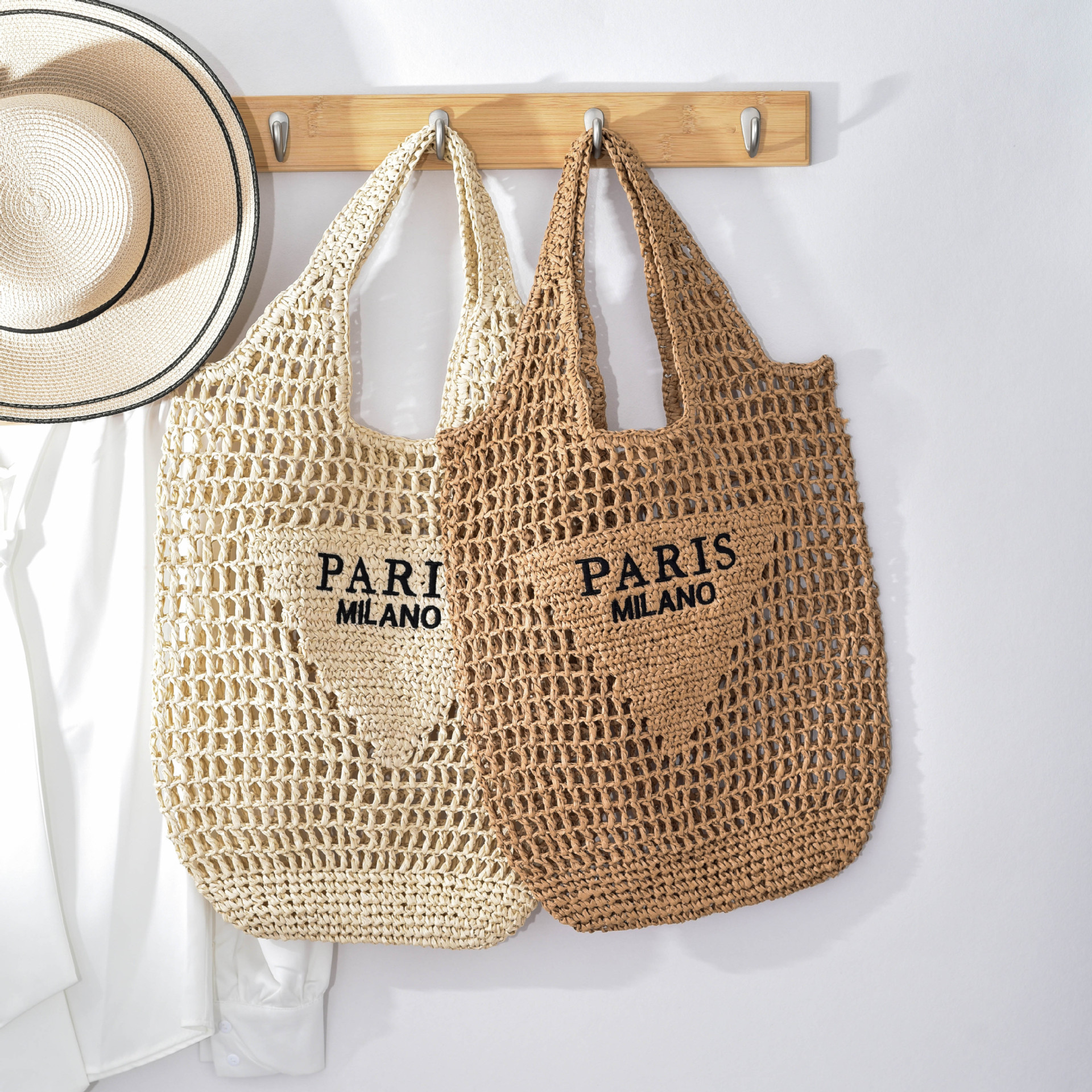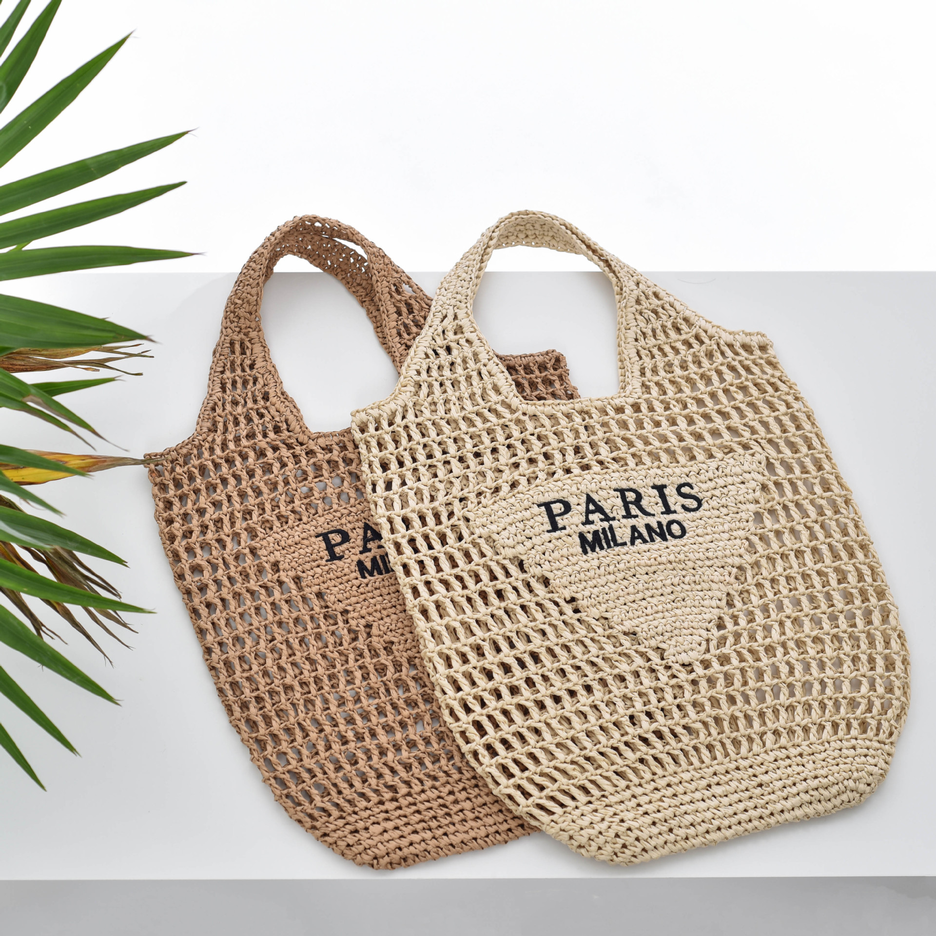 수제 밀짚 중공 자수 편지 모든 경기 대용량 국경 폭발성 짠 쇼핑 메쉬 포켓 손으로 들고 다니는 여성용 가방