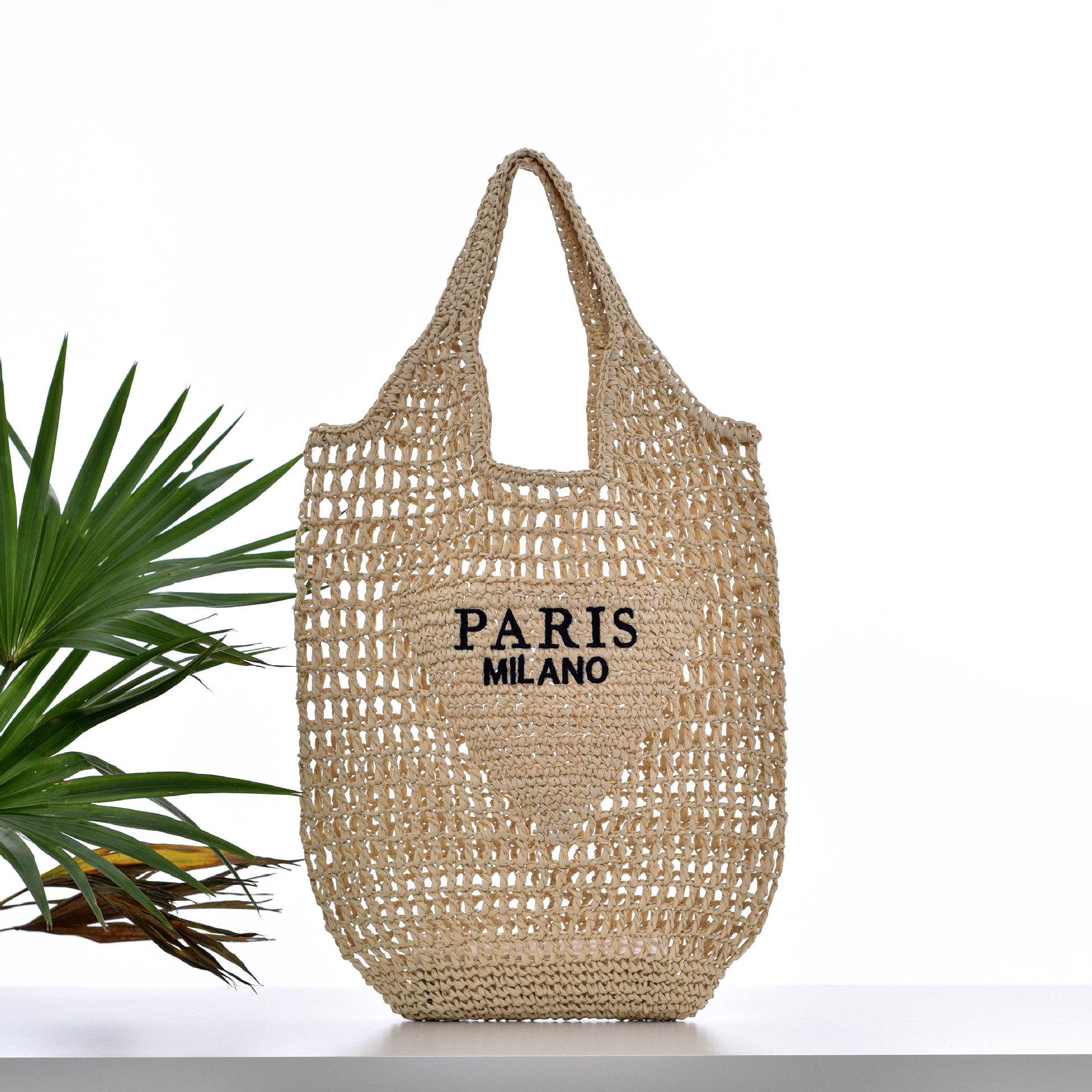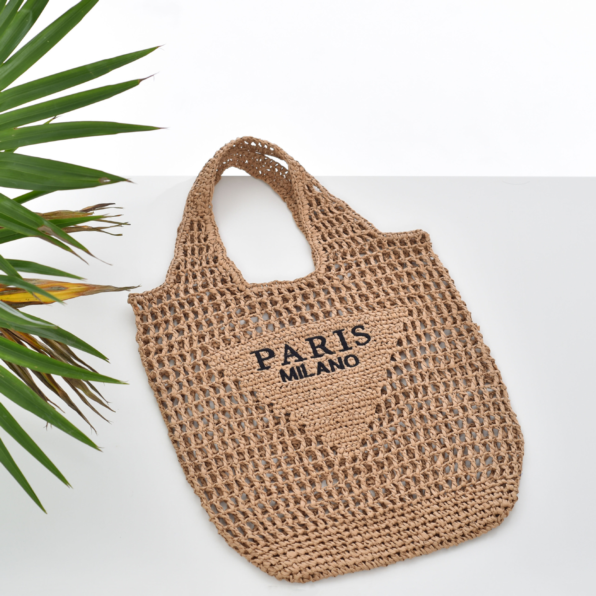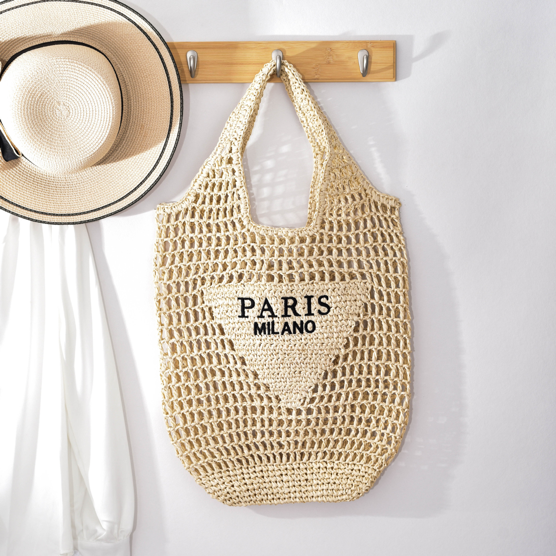 수제 밀짚 중공 자수 편지 모든 경기 대용량 국경 폭발성 짠 쇼핑 메쉬 포켓 손으로 들고 다니는 여성용 가방