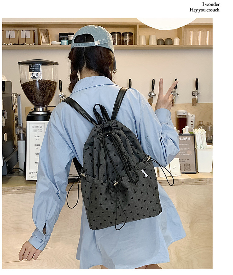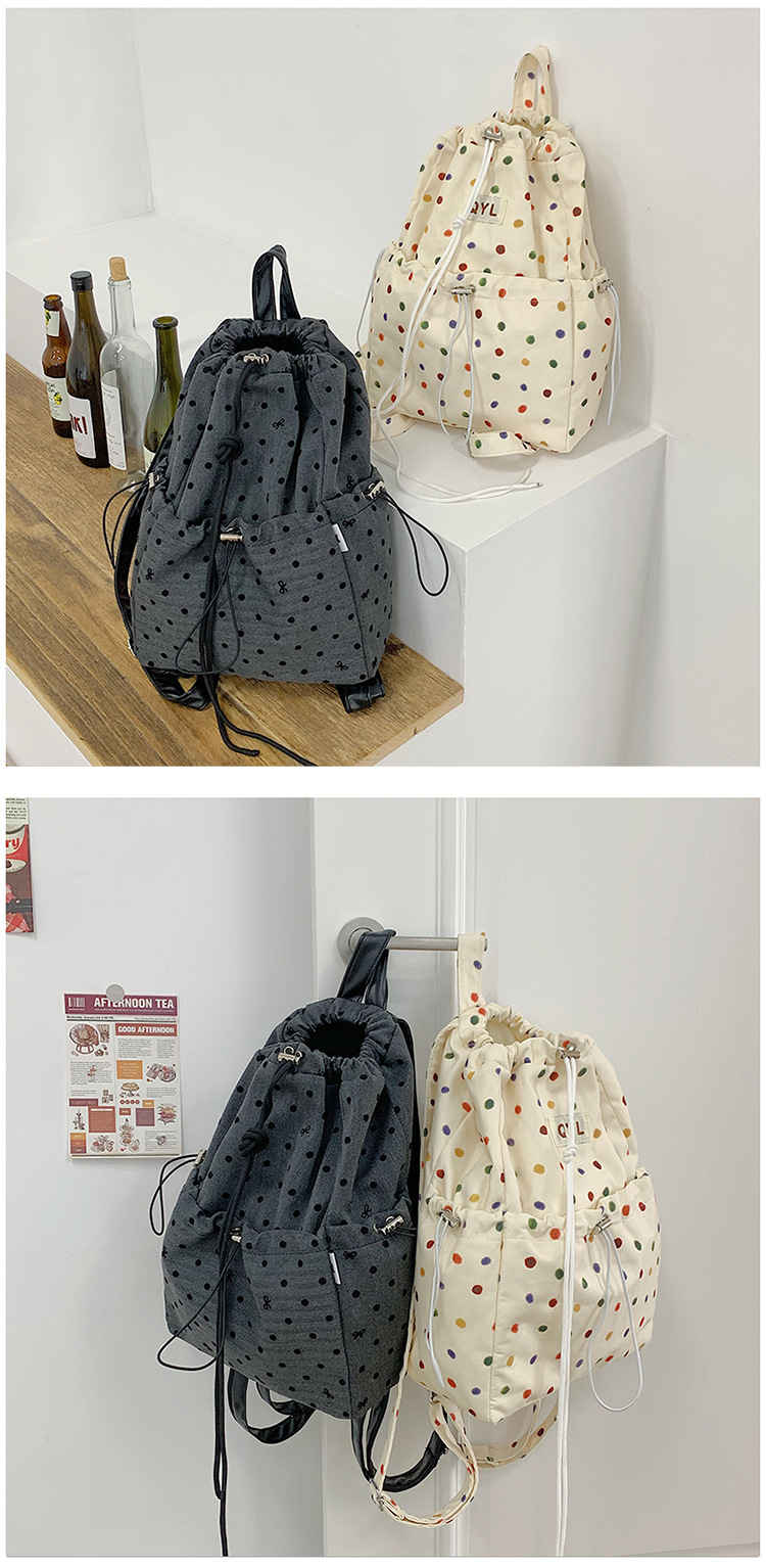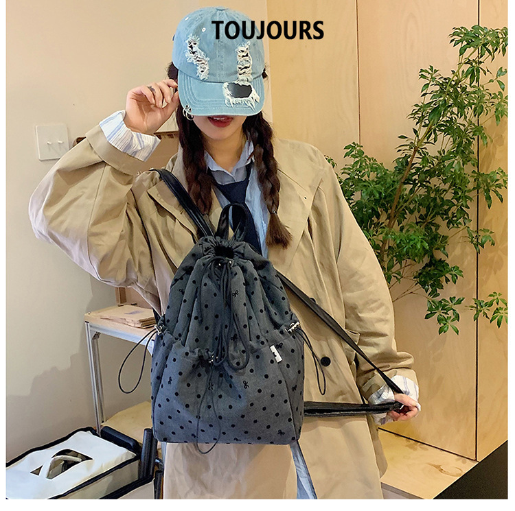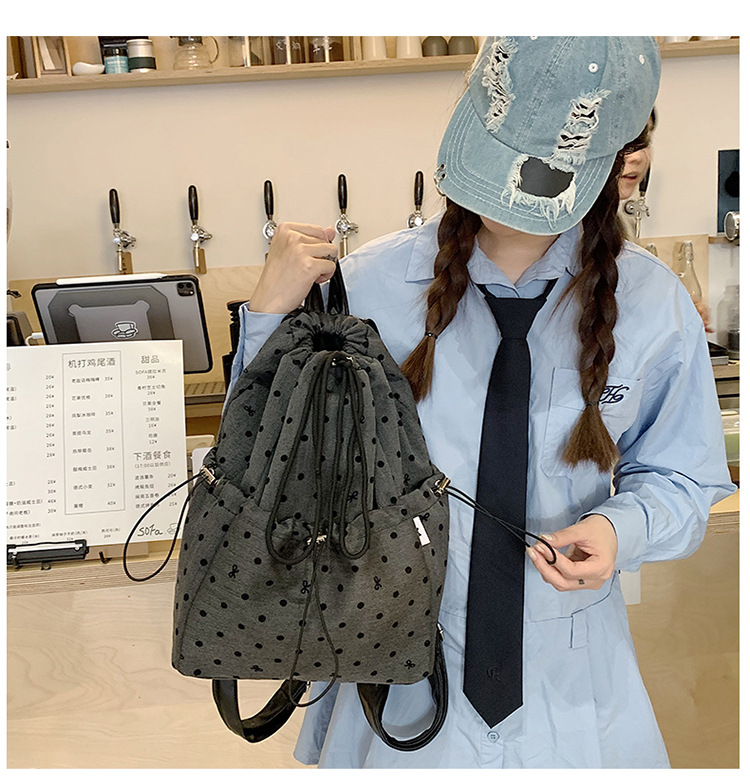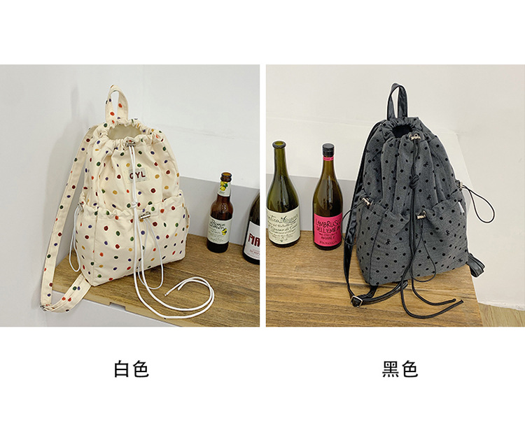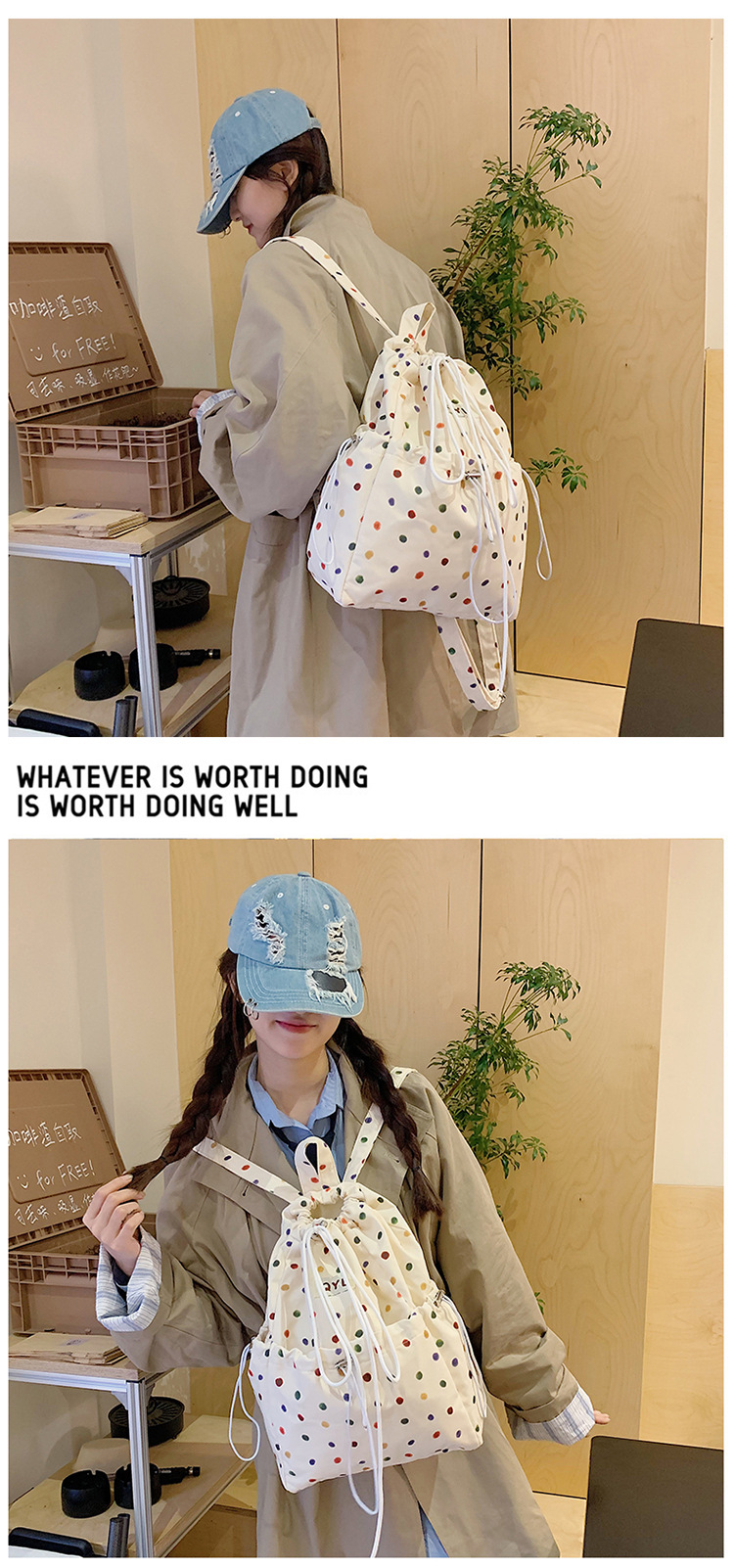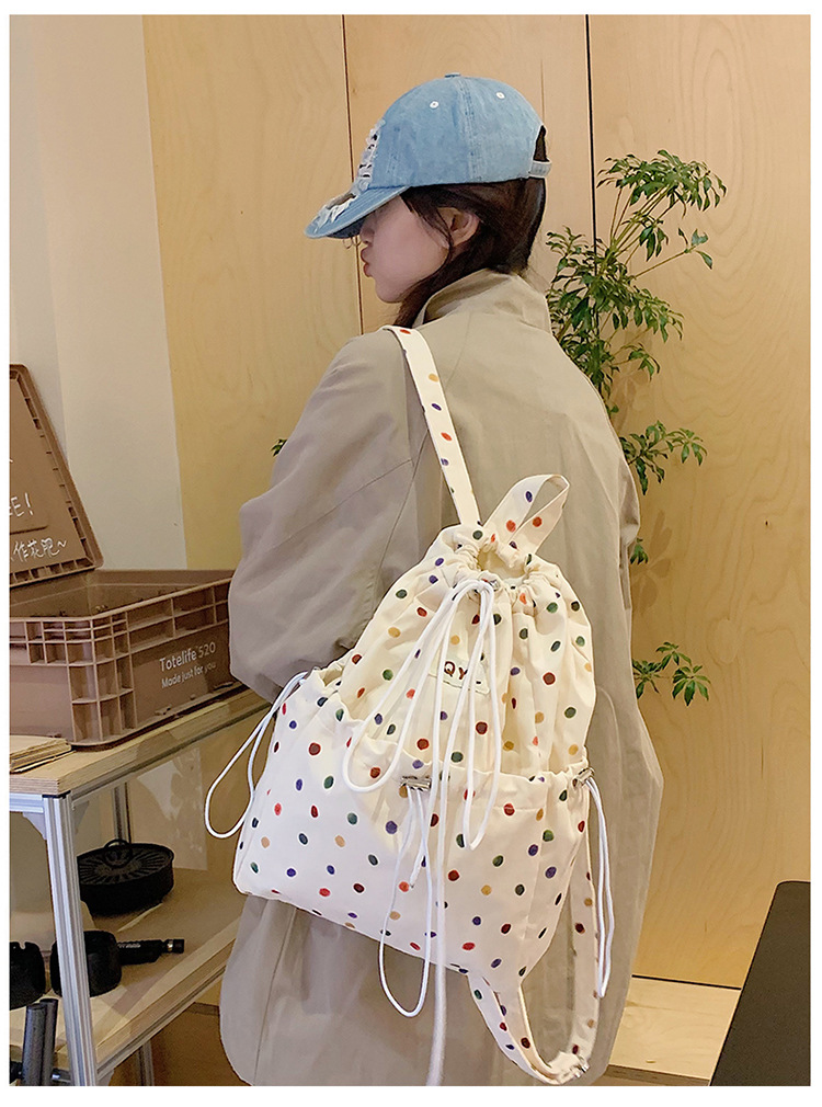 새로운 Schoolbag 소녀 중학교 일본 스타일 Ins 스타일 웨이브 포인트 아트 캠퍼스 스타일 드로스트링 경량 배낭스토어 가기