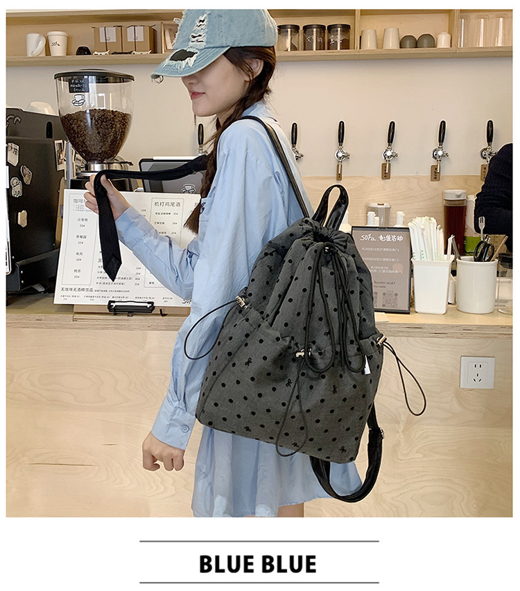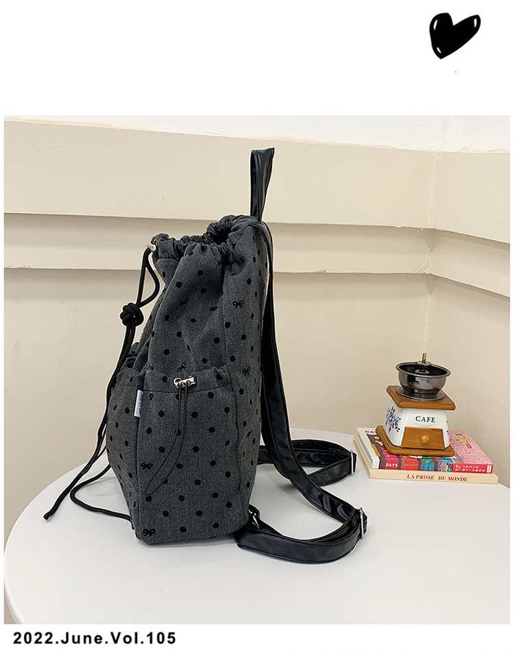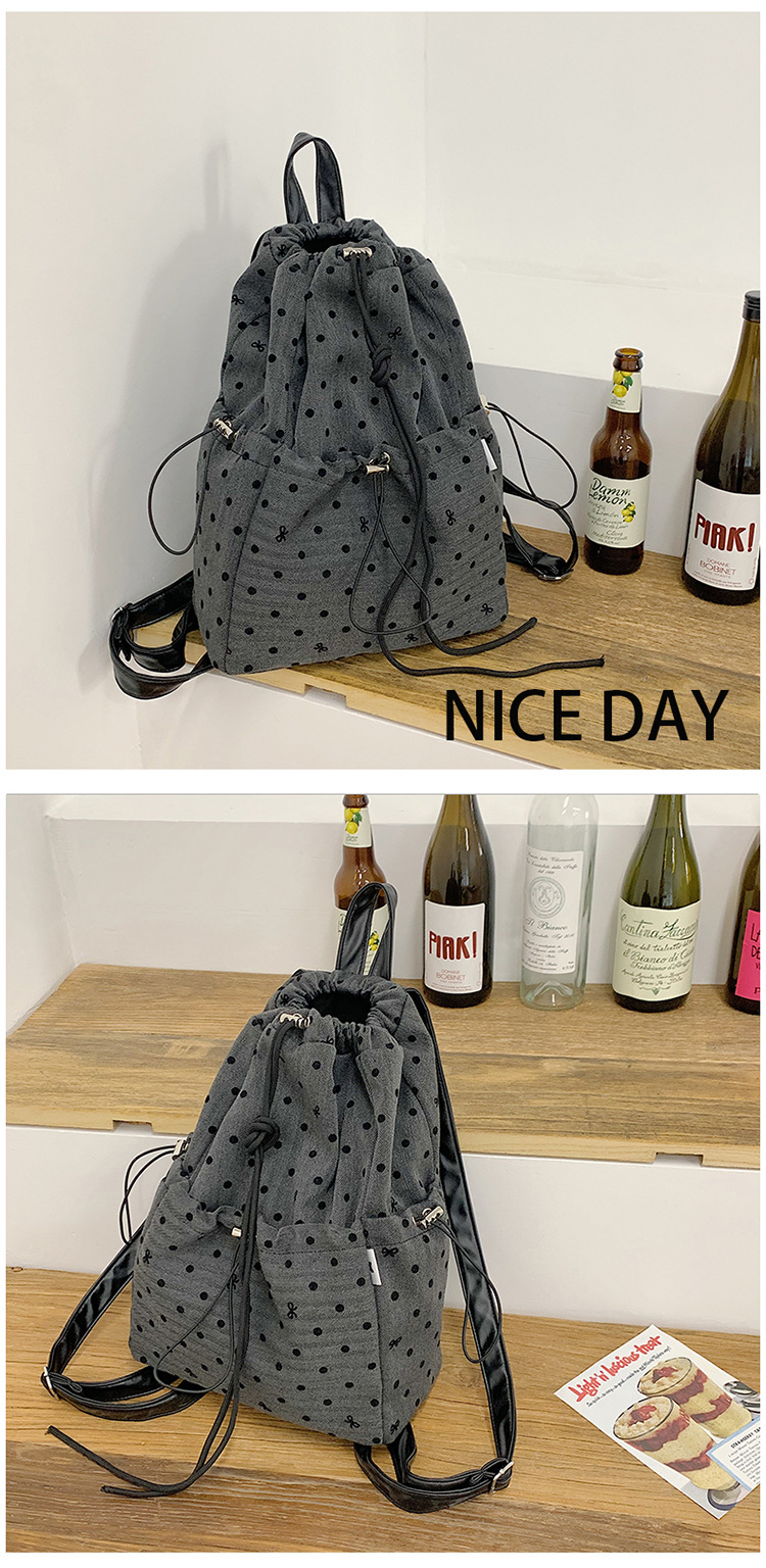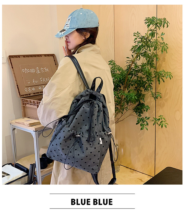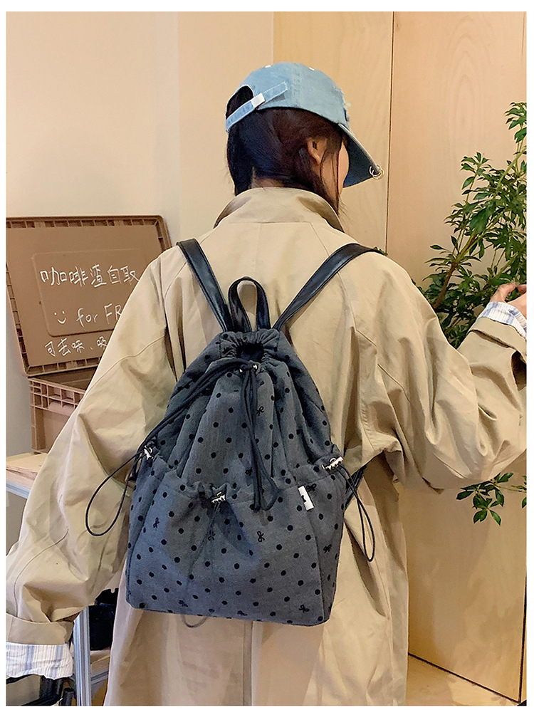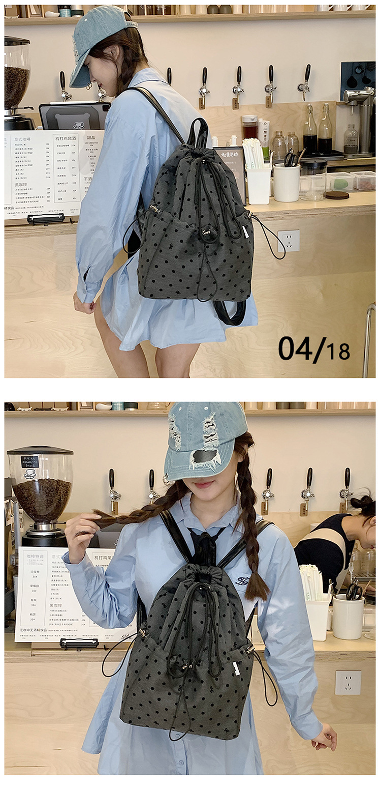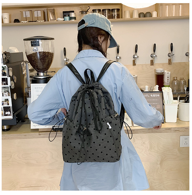 새로운 Schoolbag 소녀 중학교 일본 스타일 Ins 스타일 웨이브 포인트 아트 캠퍼스 스타일 드로스트링 경량 배낭스토어 가기