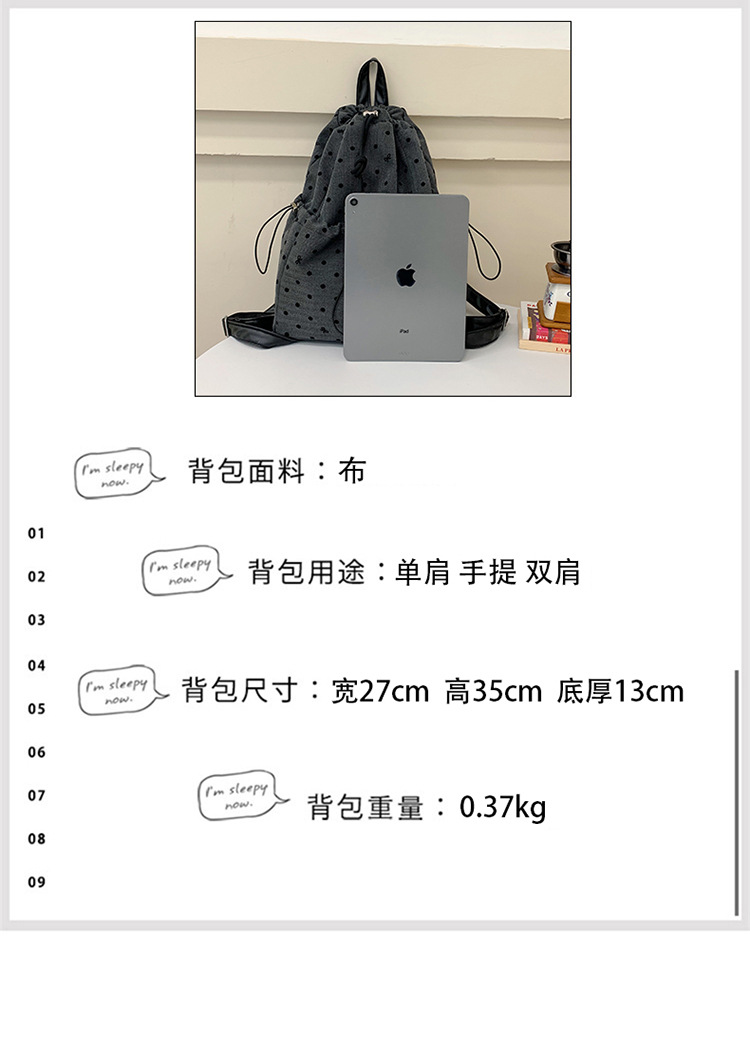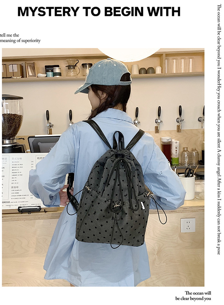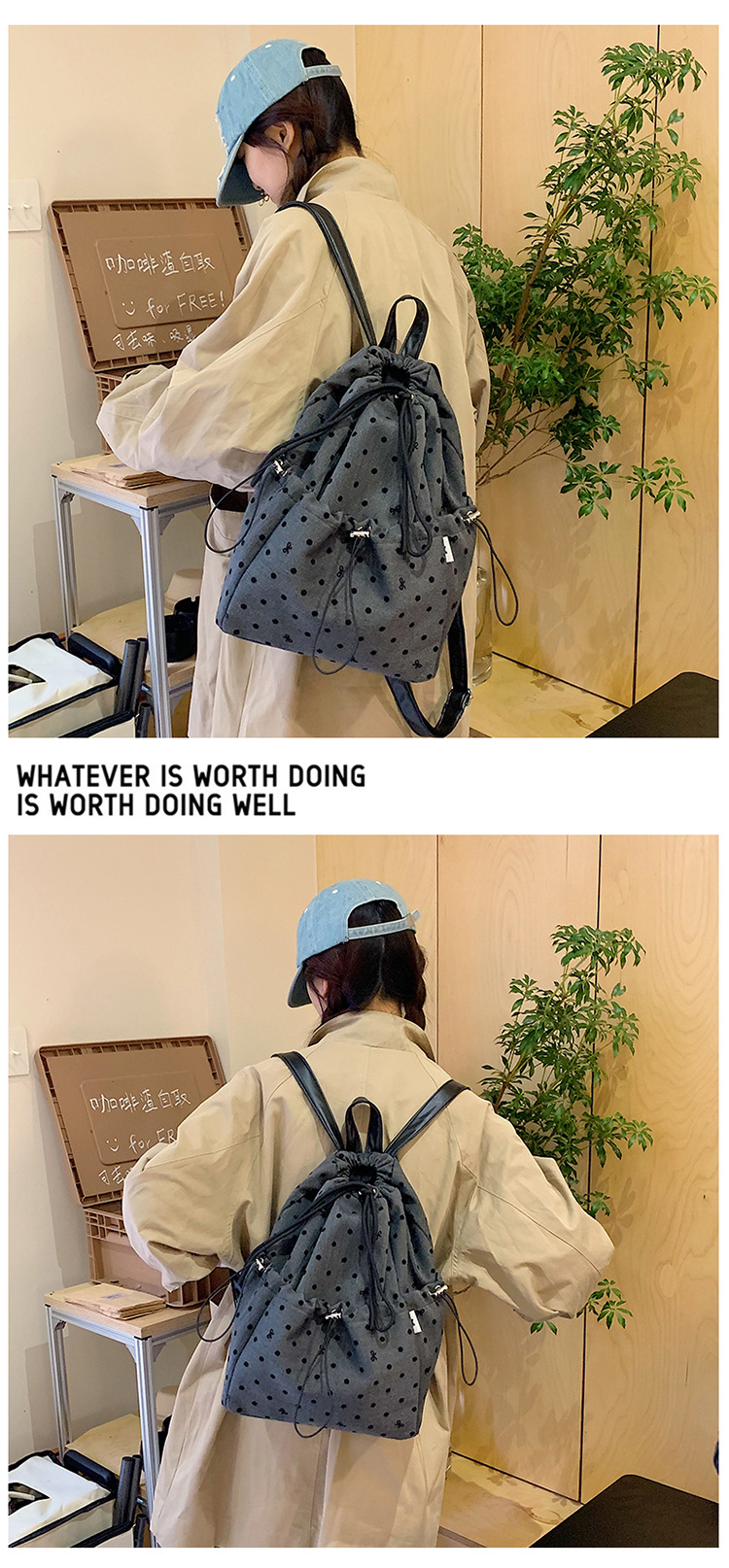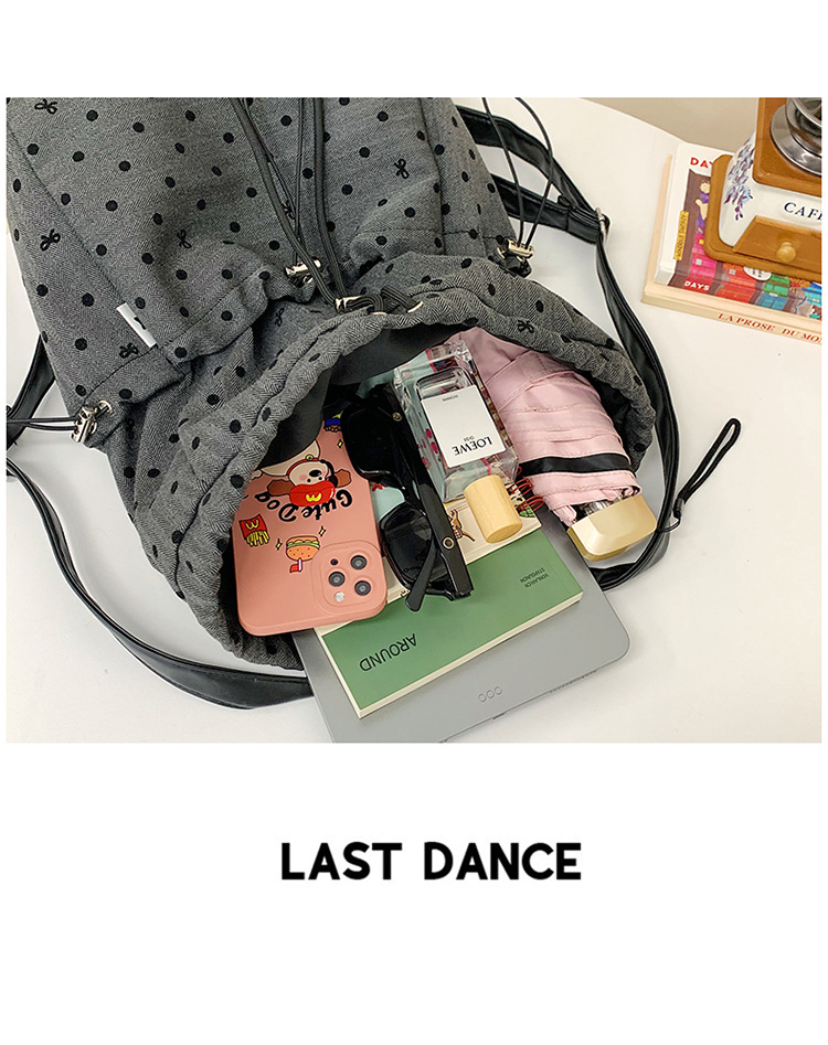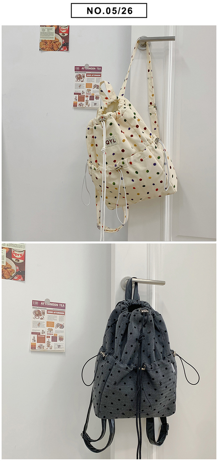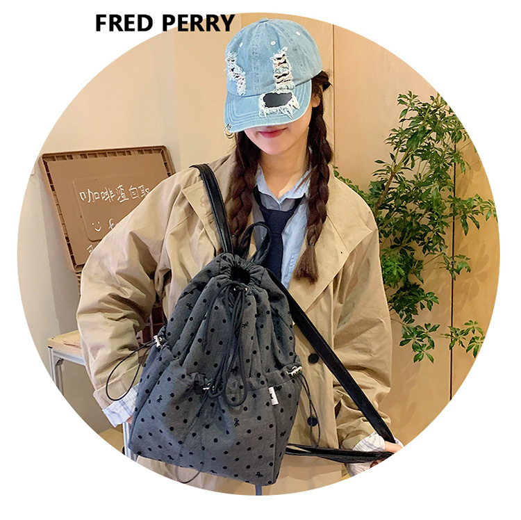 새로운 Schoolbag 소녀 중학교 일본 스타일 Ins 스타일 웨이브 포인트 아트 캠퍼스 스타일 드로스트링 경량 배낭스토어 가기