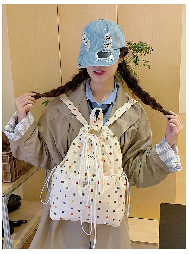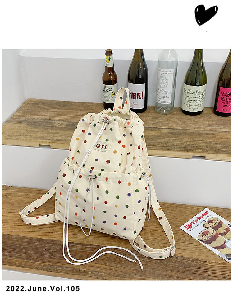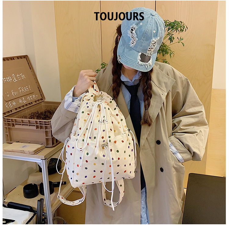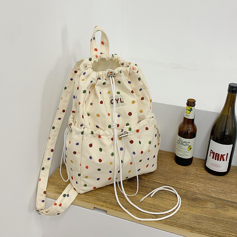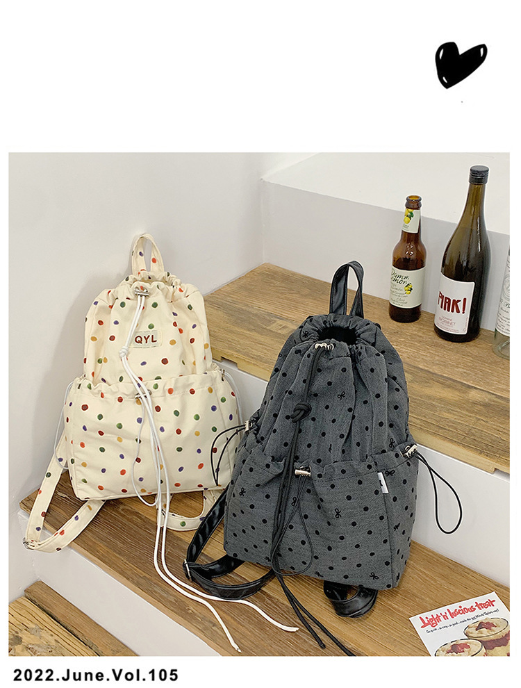 새로운 Schoolbag 소녀 중학교 일본 스타일 Ins 스타일 웨이브 포인트 아트 캠퍼스 스타일 드로스트링 경량 배낭