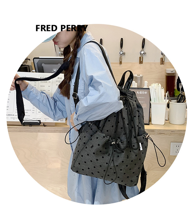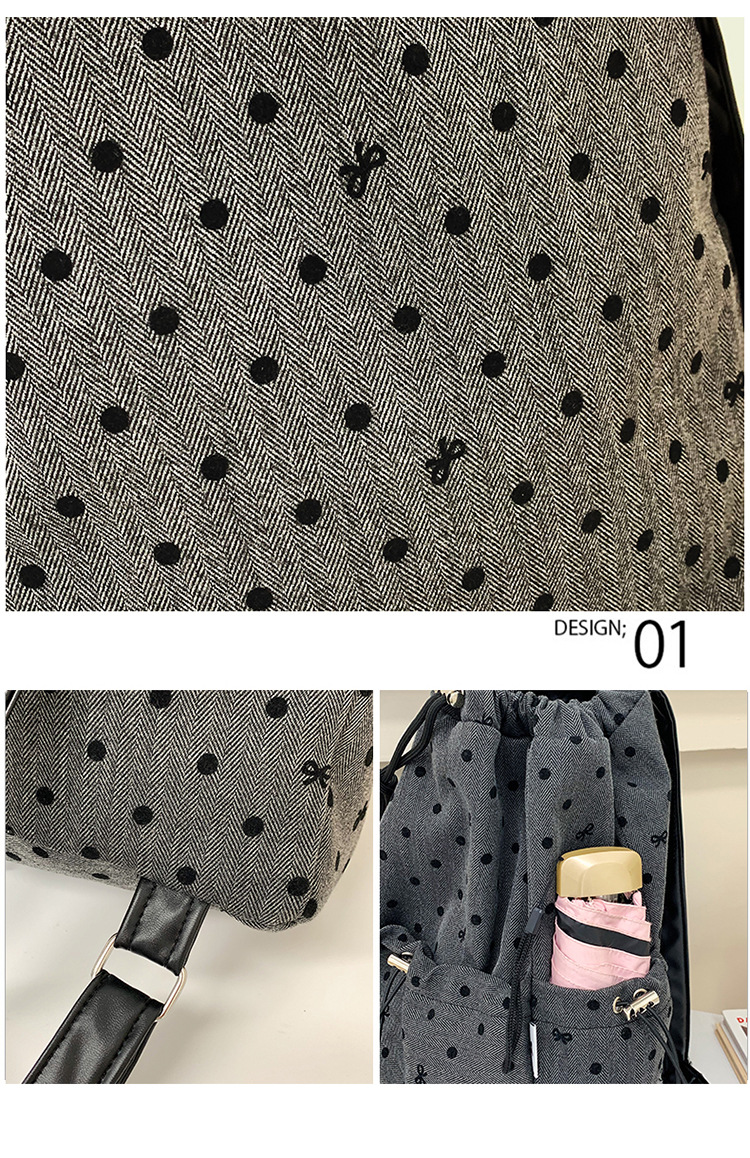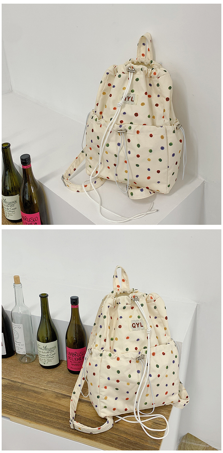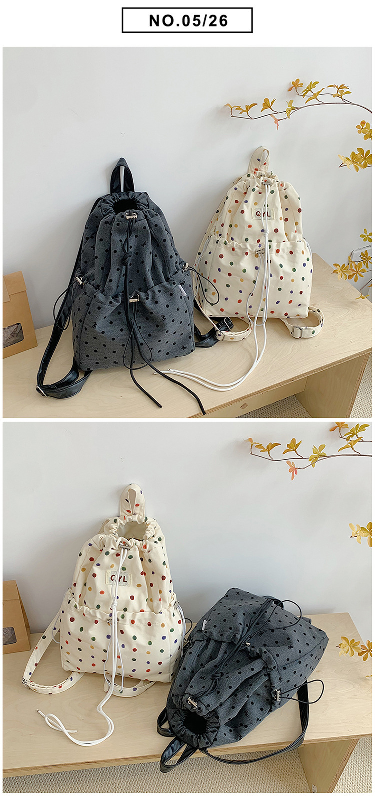 새로운 Schoolbag 소녀 중학교 일본 스타일 Ins 스타일 웨이브 포인트 아트 캠퍼스 스타일 드로스트링 경량 배낭