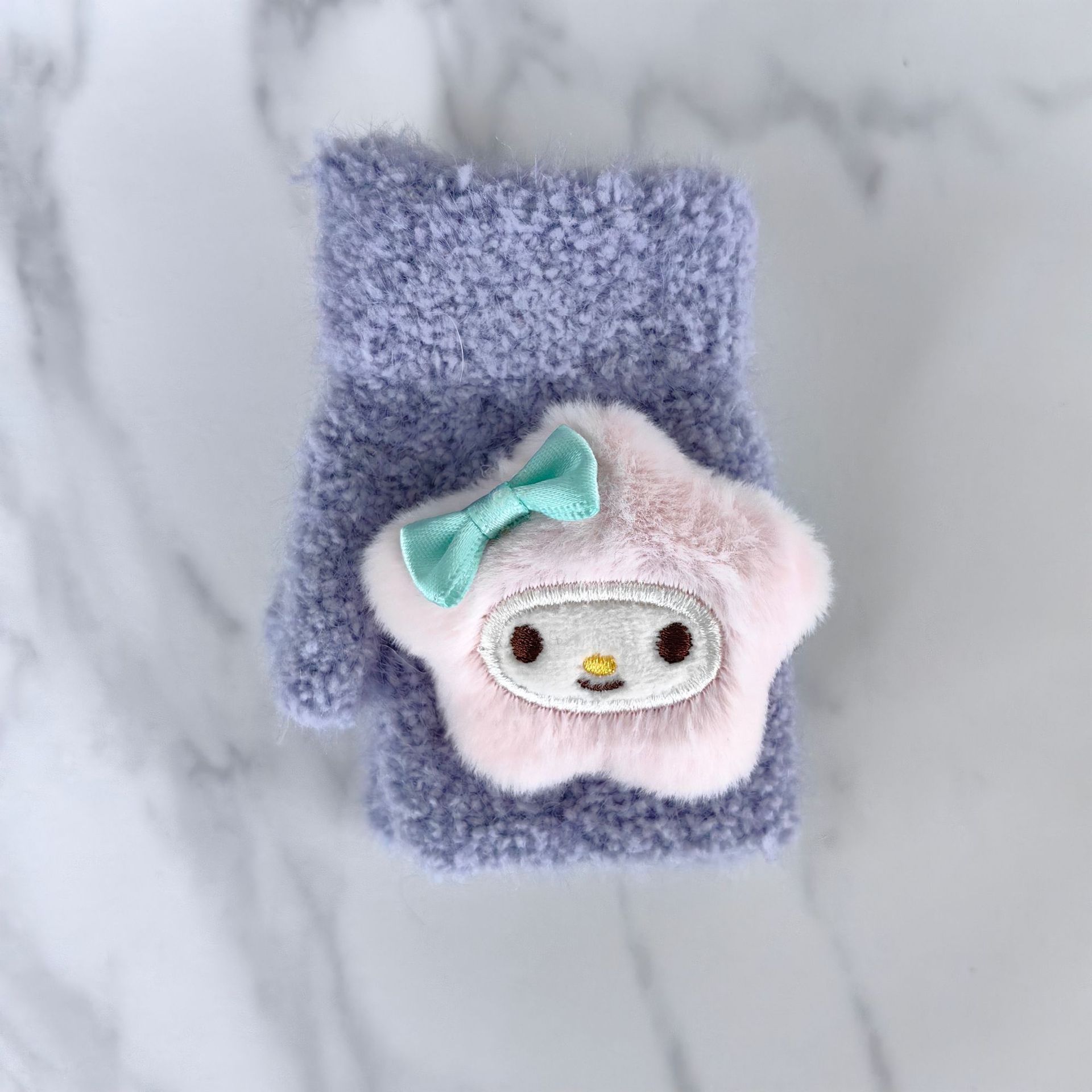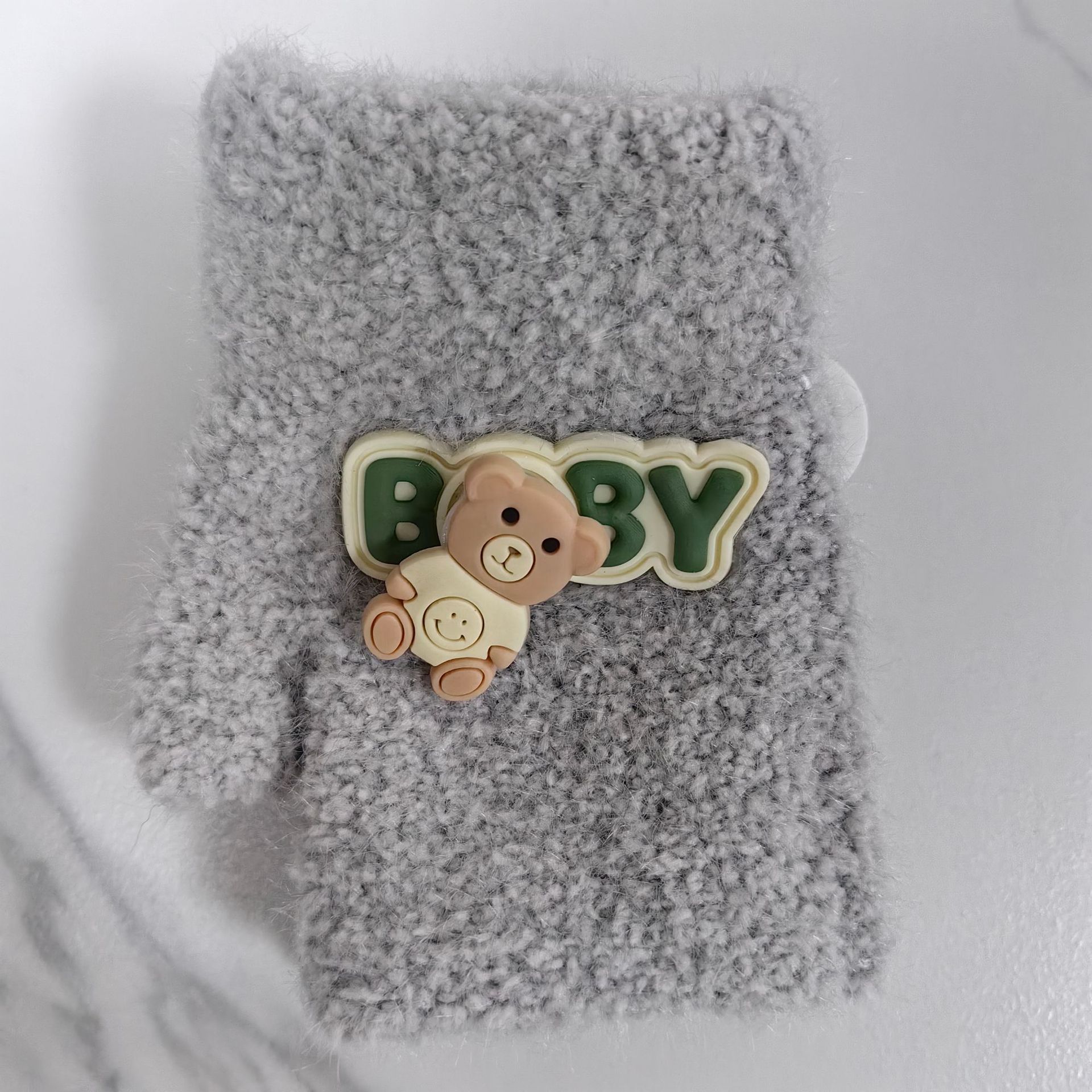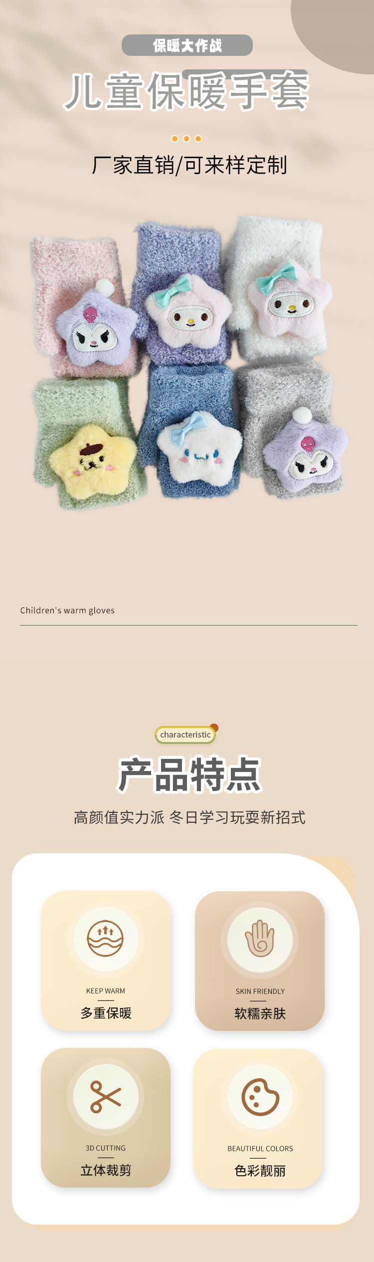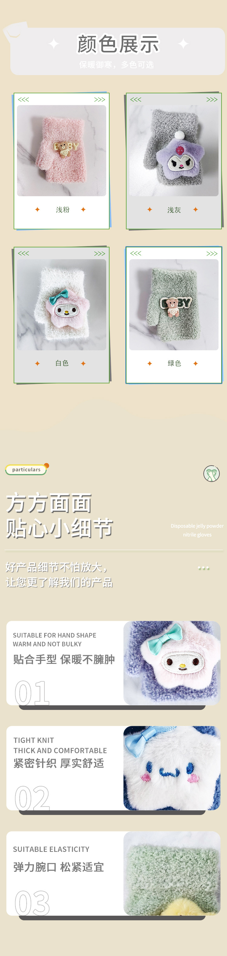 Xirui 어린이 니트 장갑 새로운 반 손가락 과립 벨벳 장갑 부드럽고 따뜻한 만화 패턴 손가락이없는 장갑스토어 가기