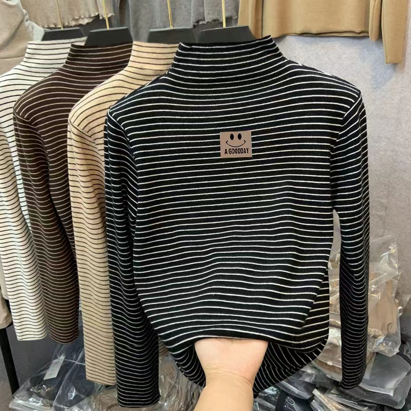 T2018 # 소년과 소녀를위한 기모 두꺼운 백킹 셔츠 가을과 겨울 반 높은 목 긴 소매 셔츠 벨벳 따뜻한 자켓을 가진 어린이