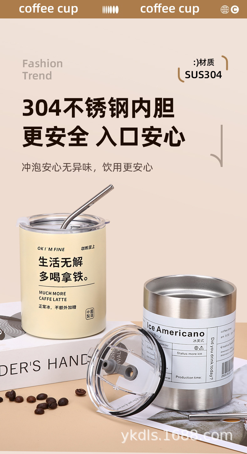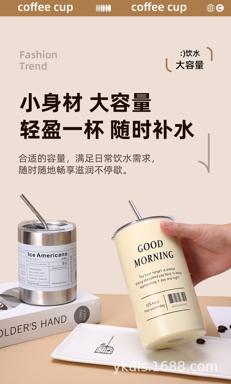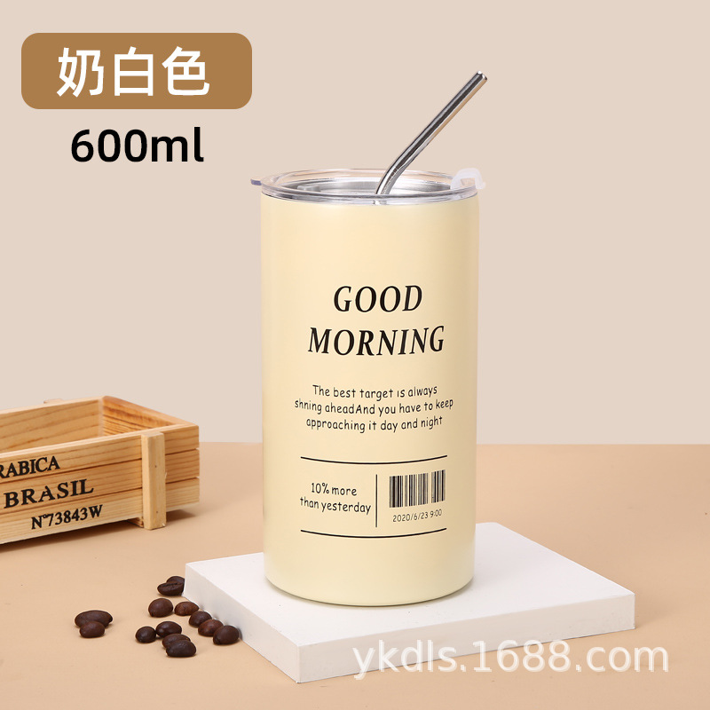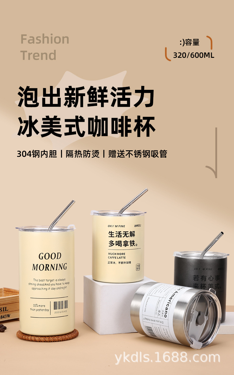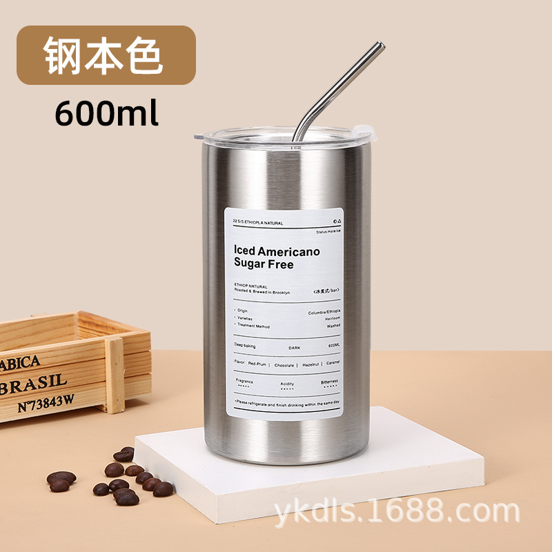 국경 스테인레스 스틸 아이스 미국 커피 컵 간단한 더블 레이어 진공 컵 짚 미니 스트레이트 보온병 컵