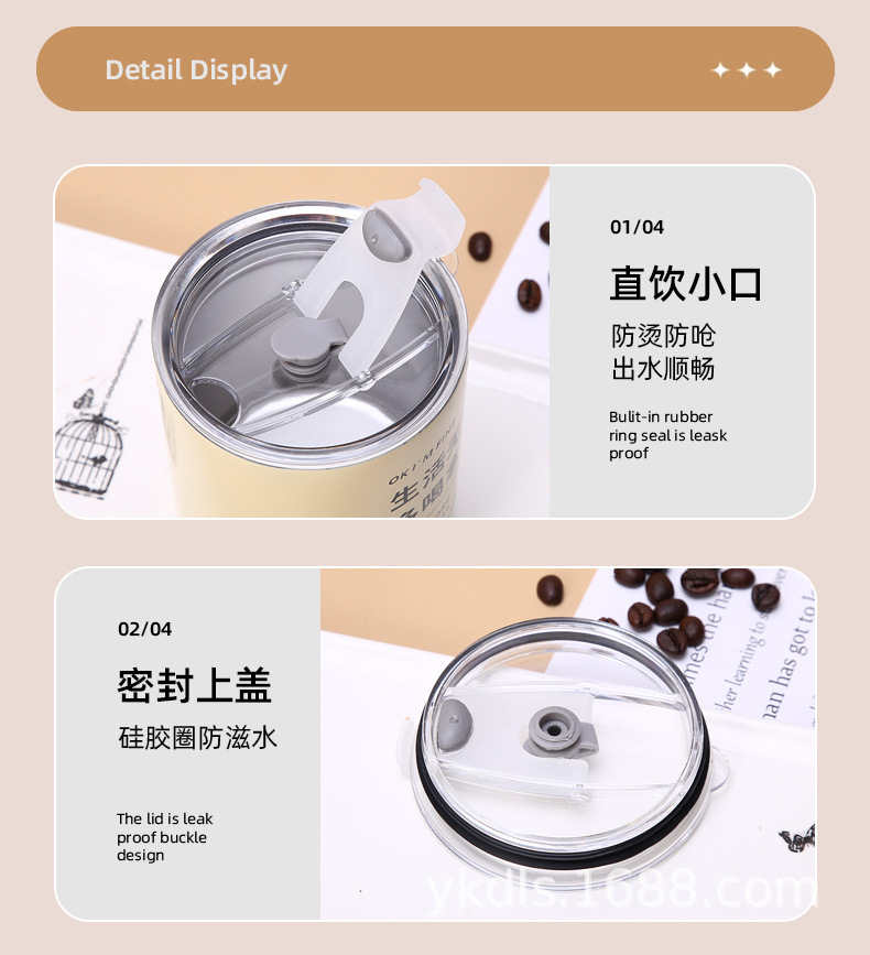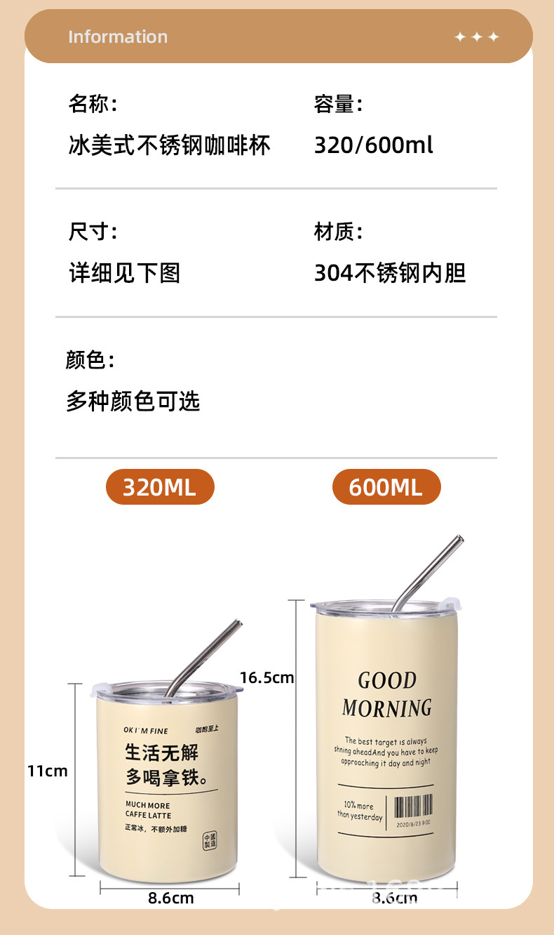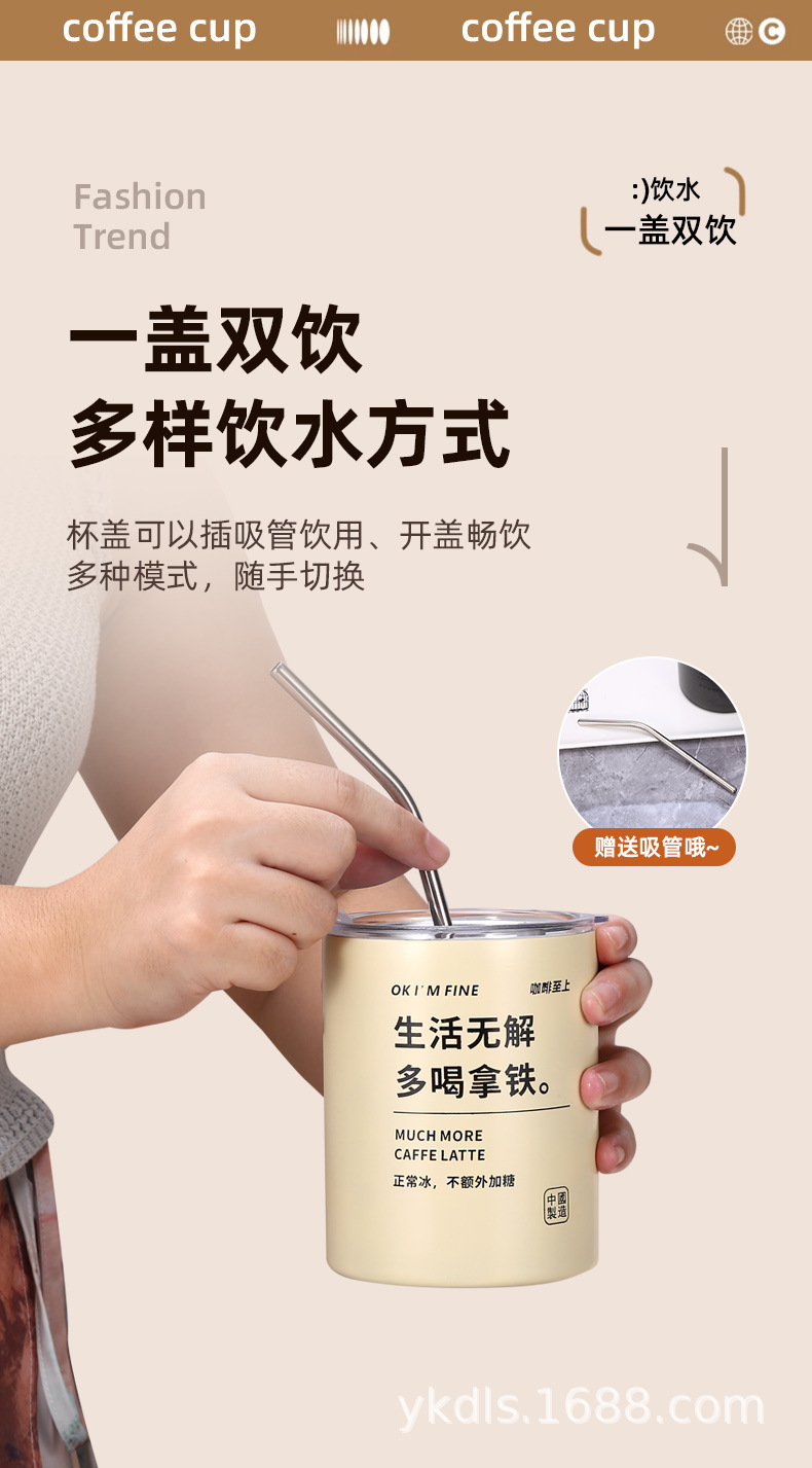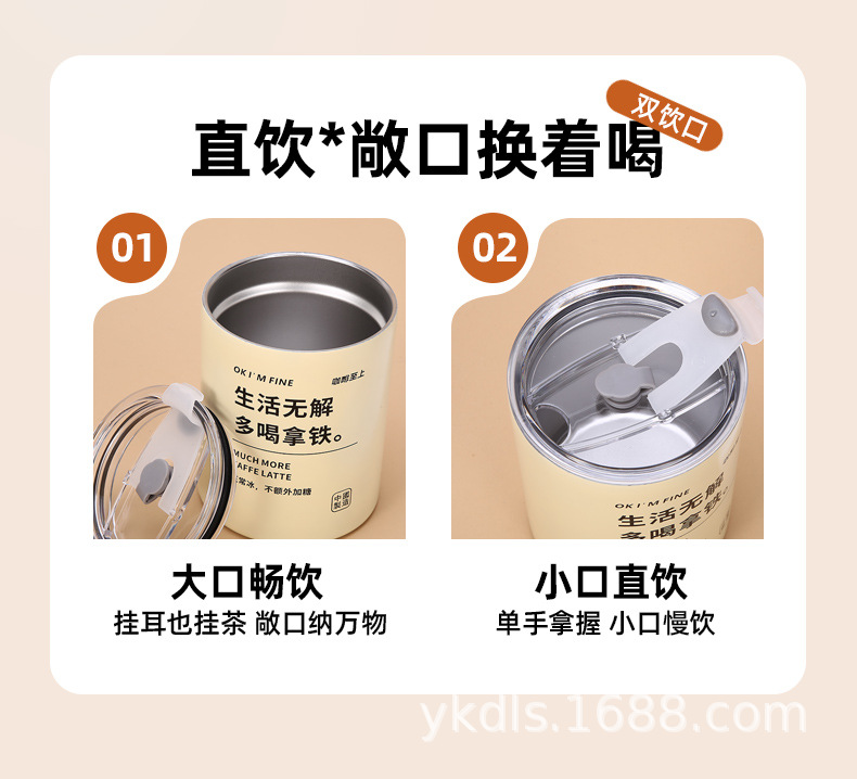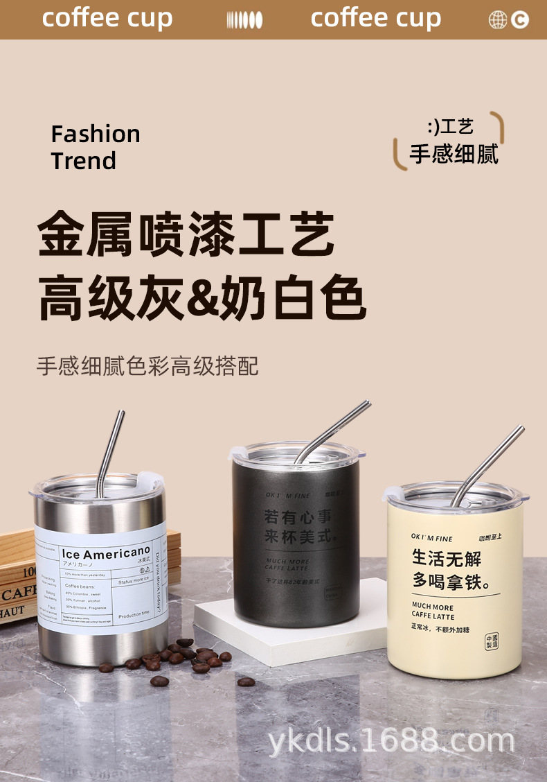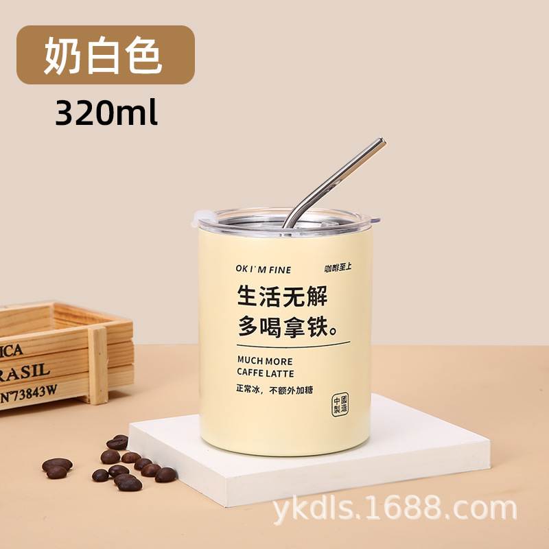 국경 스테인레스 스틸 아이스 미국 커피 컵 간단한 더블 레이어 진공 컵 짚 미니 스트레이트 보온병 컵