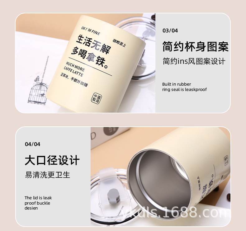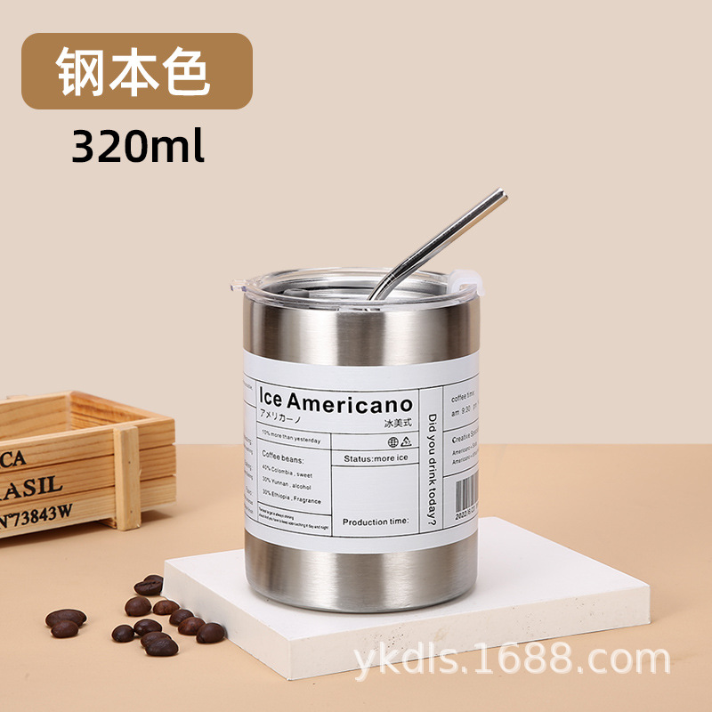 국경 스테인레스 스틸 아이스 미국 커피 컵 간단한 더블 레이어 진공 컵 짚 미니 스트레이트 보온병 컵스토어 가기