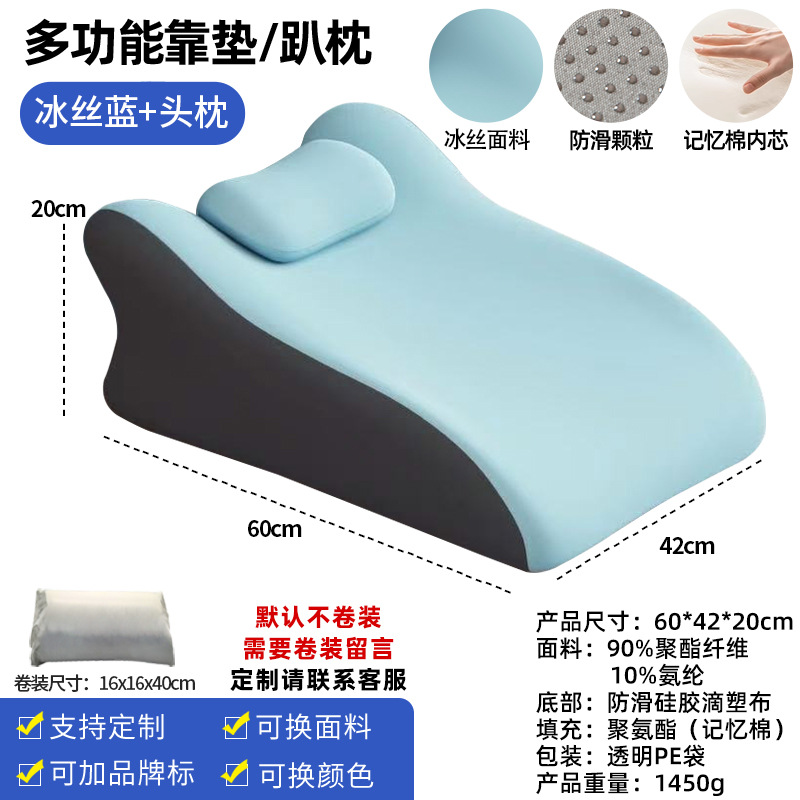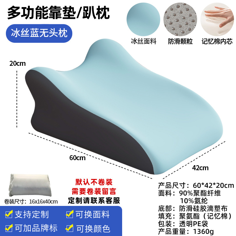 • 다기능 쿠션/뱃베개 [머리받침 없음] 아이스 실크 블루