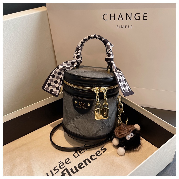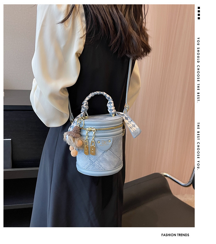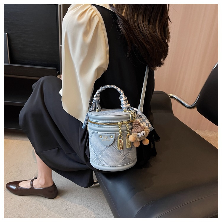 2024 올 매치 메신저 백 여성 핸드백 유행 올 매치 버킷 백 유행 귀여운 펜던트 숄더 백스토어 가기
