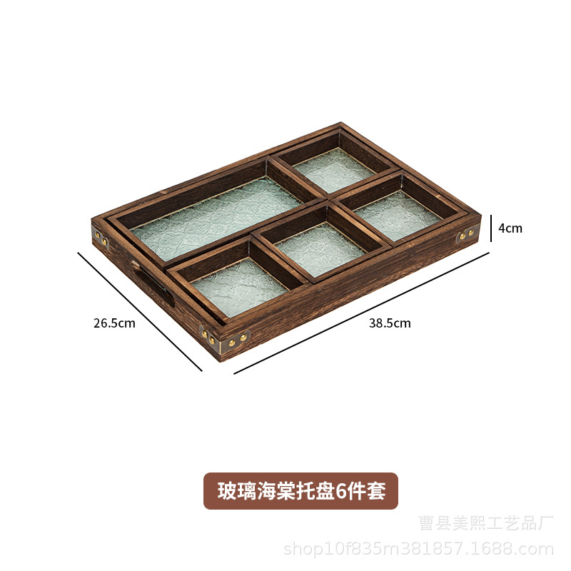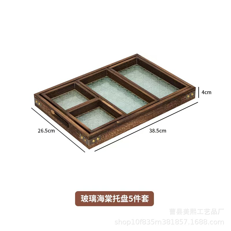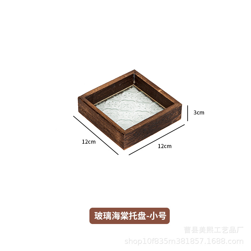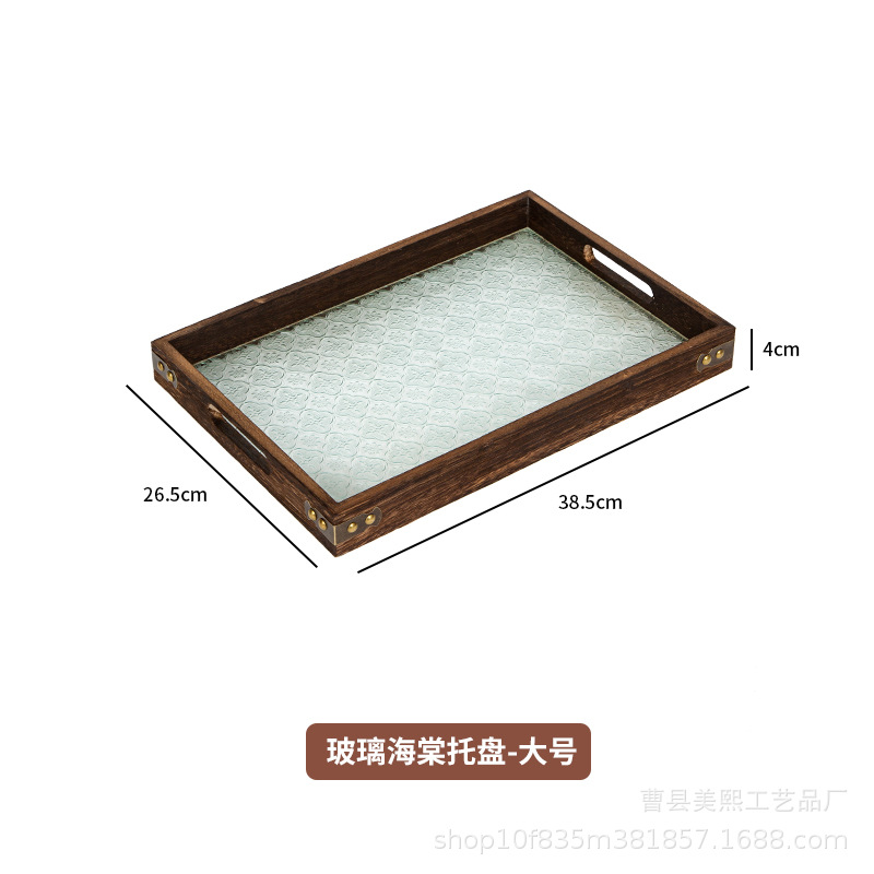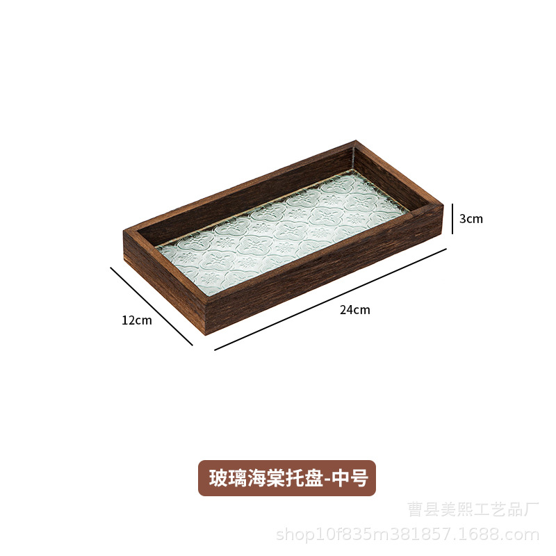 원목 벚꽃무늬 강화유리 트레이 차 트레이 디저트 트레이 찻잔 물컵 유리 장식품 과일 신중국풍