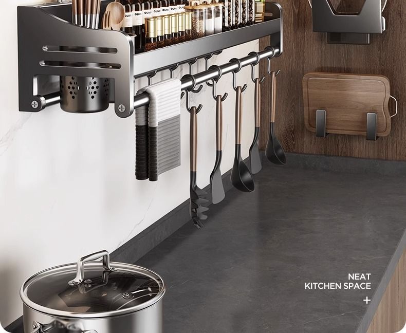 새로운 펀치없는 주방 랙 벽걸이 형 다기능 욕실 나이프 홀더 가정용 벽 용품 보관스토어 가기