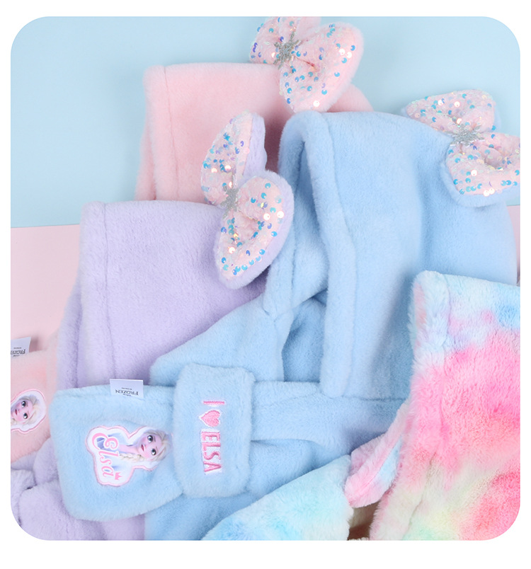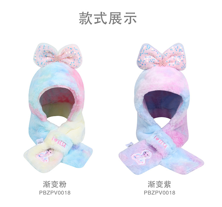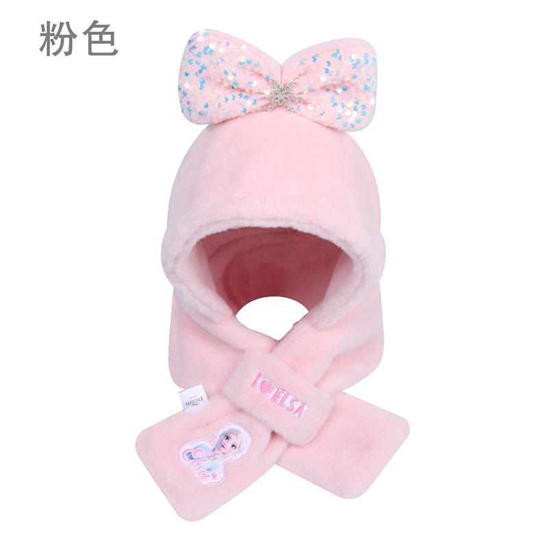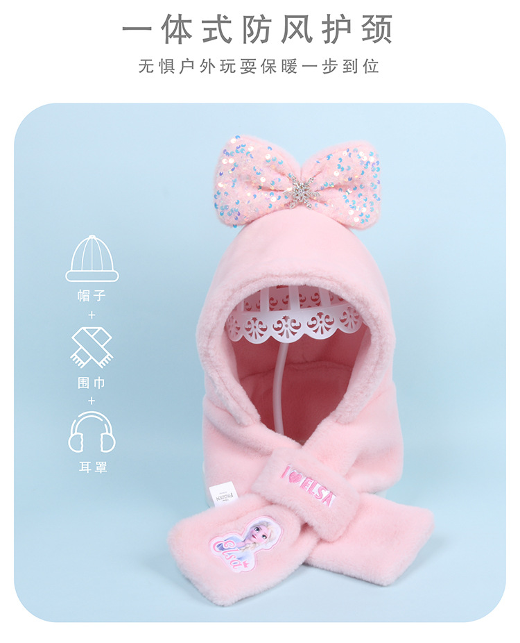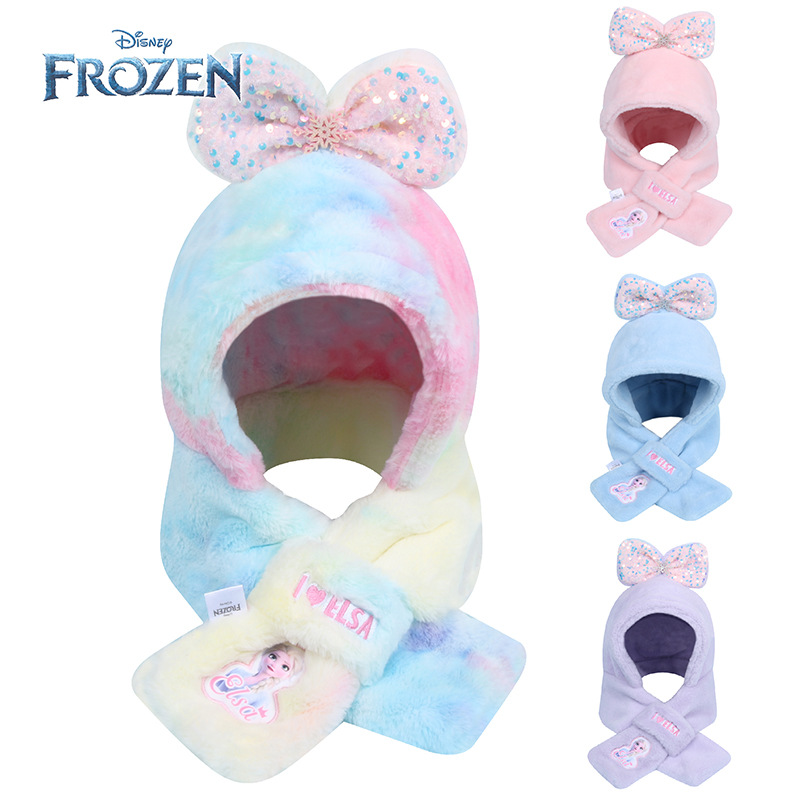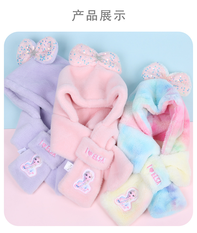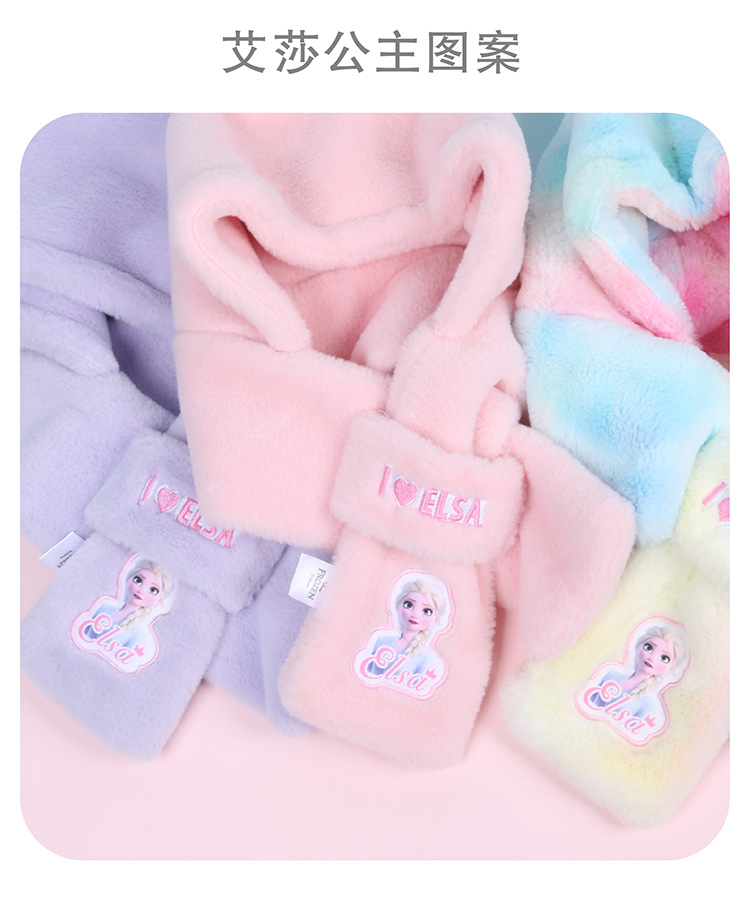 디즈니 어린이 원피스 스카프 모자 봉제 소녀 겨울 따뜻한 얼음과 눈 포장 기모 두꺼운 소녀