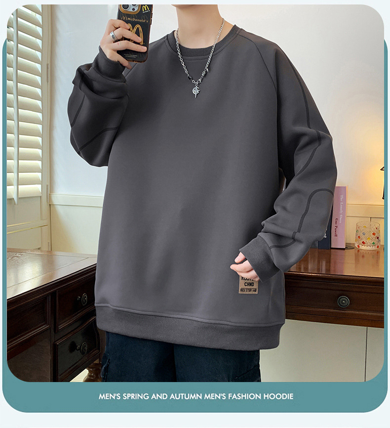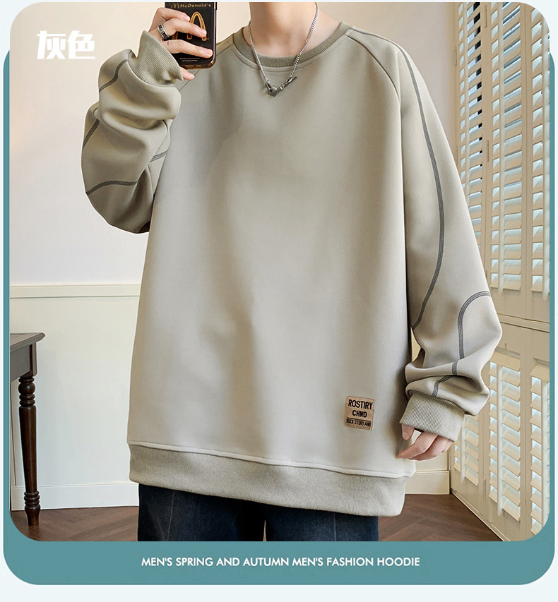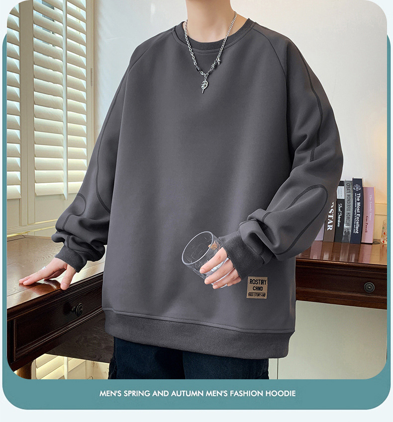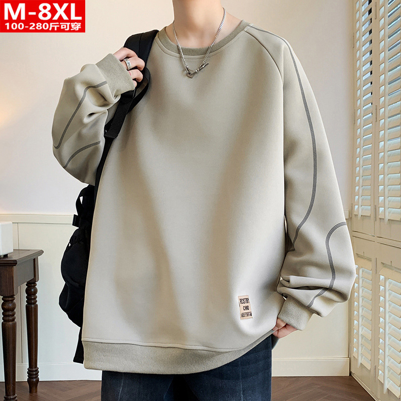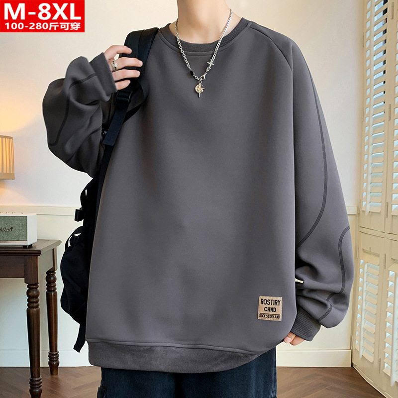 봄과 가을 트렌디 한 홍콩 스타일 남성 패션 라운드 넥 니트 스웨터 통통 대형 플러스 뚱뚱한 느슨한 스포츠 캐주얼 탑스토어 가기