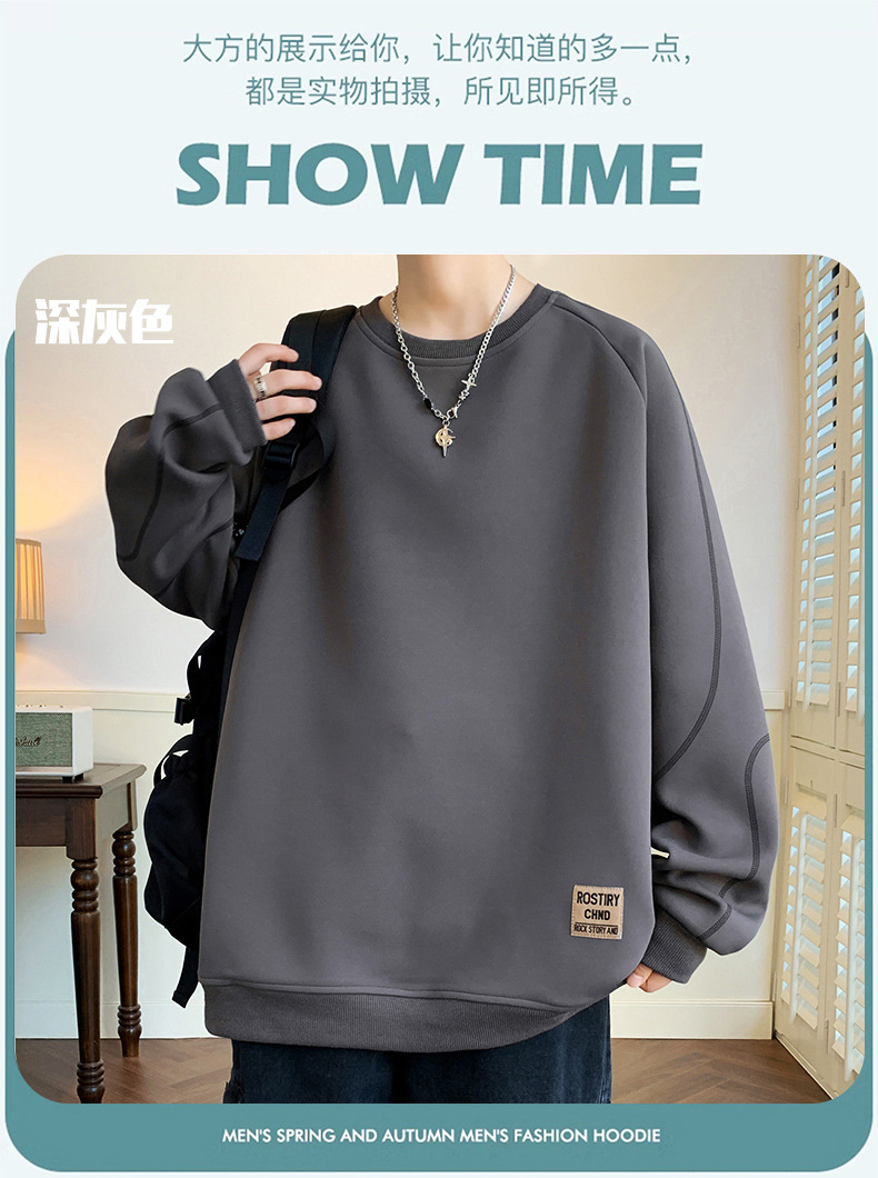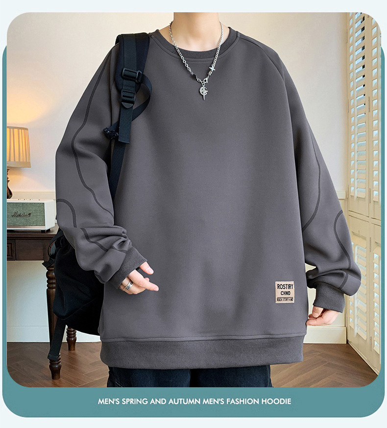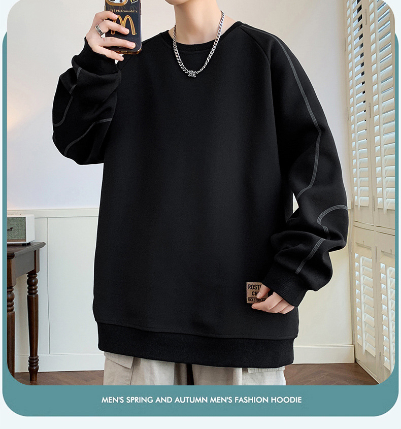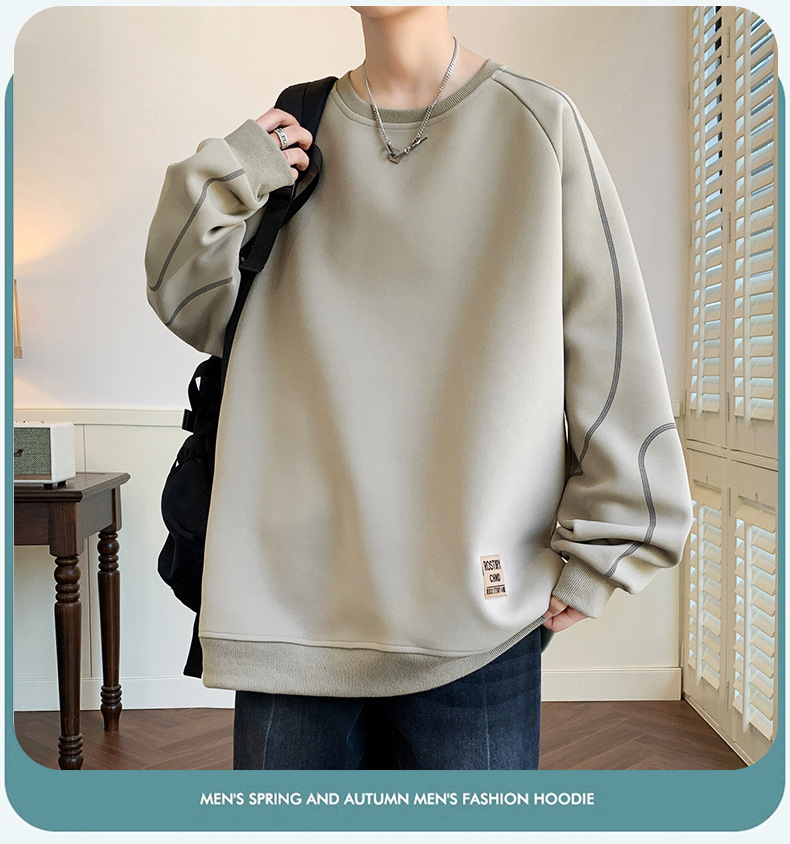 봄과 가을 트렌디 한 홍콩 스타일 남성 패션 라운드 넥 니트 스웨터 통통 대형 플러스 뚱뚱한 느슨한 스포츠 캐주얼 탑스토어 가기