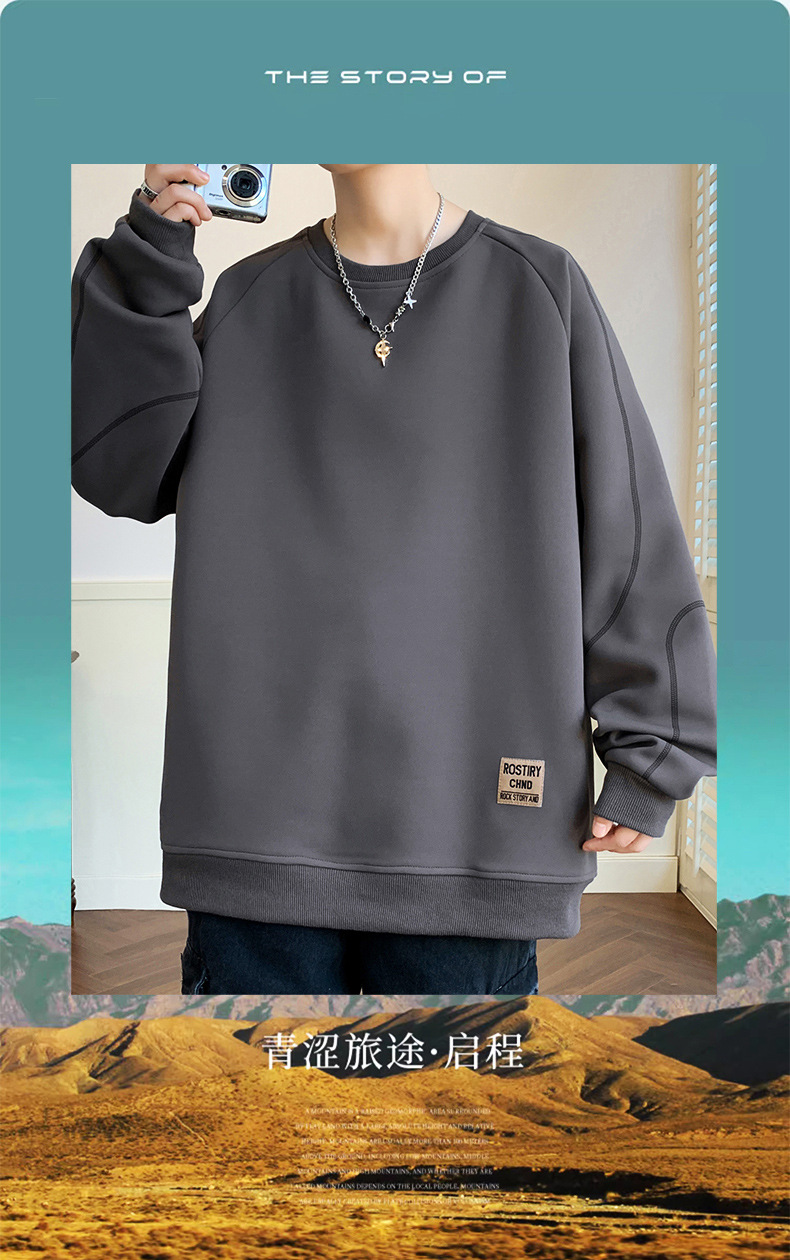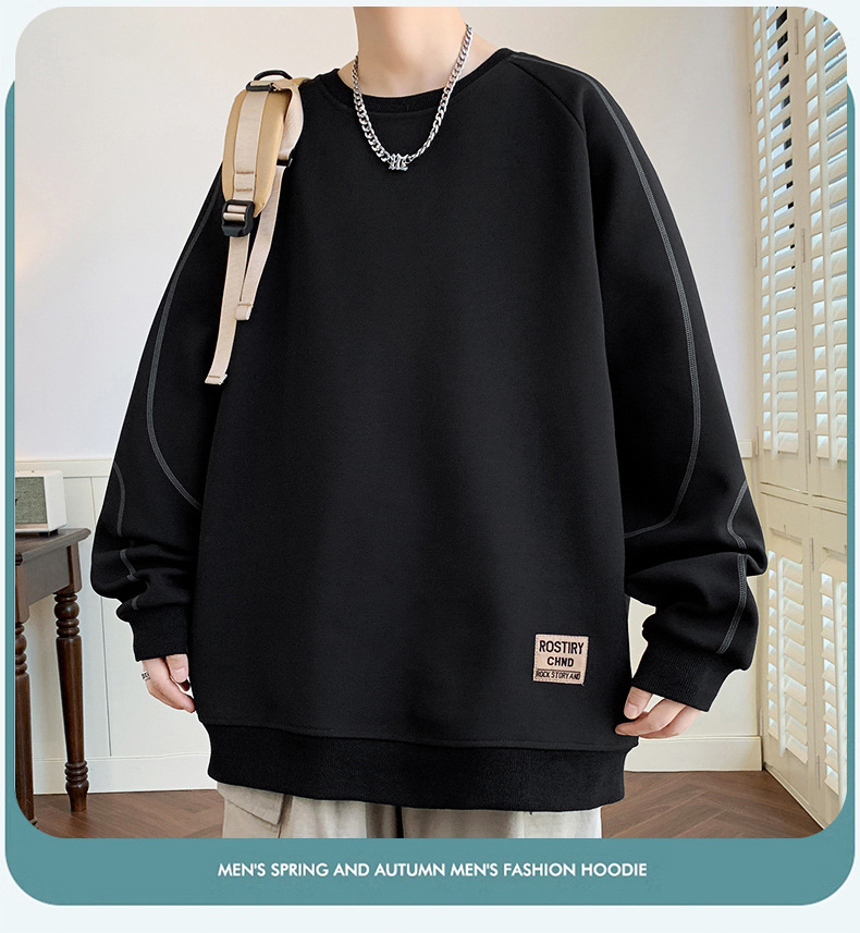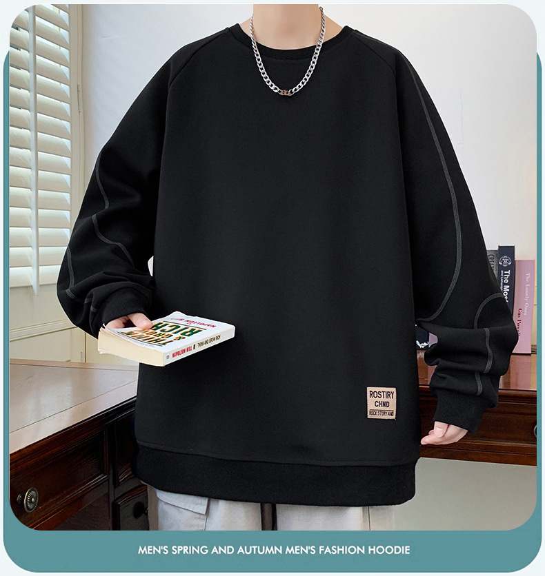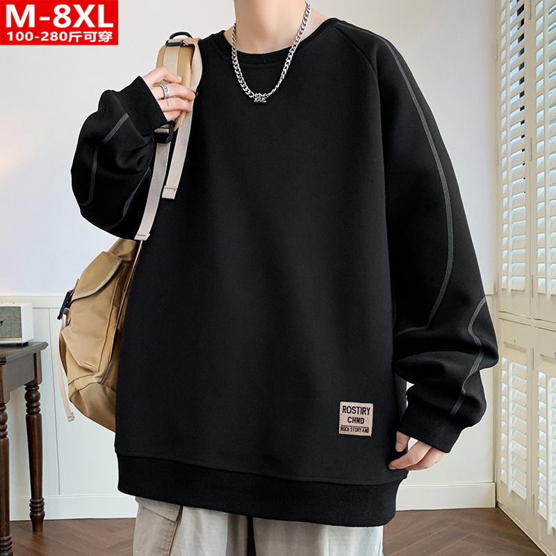봄과 가을 트렌디 한 홍콩 스타일 남성 패션 라운드 넥 니트 스웨터 통통 대형 플러스 뚱뚱한 느슨한 스포츠 캐주얼 탑