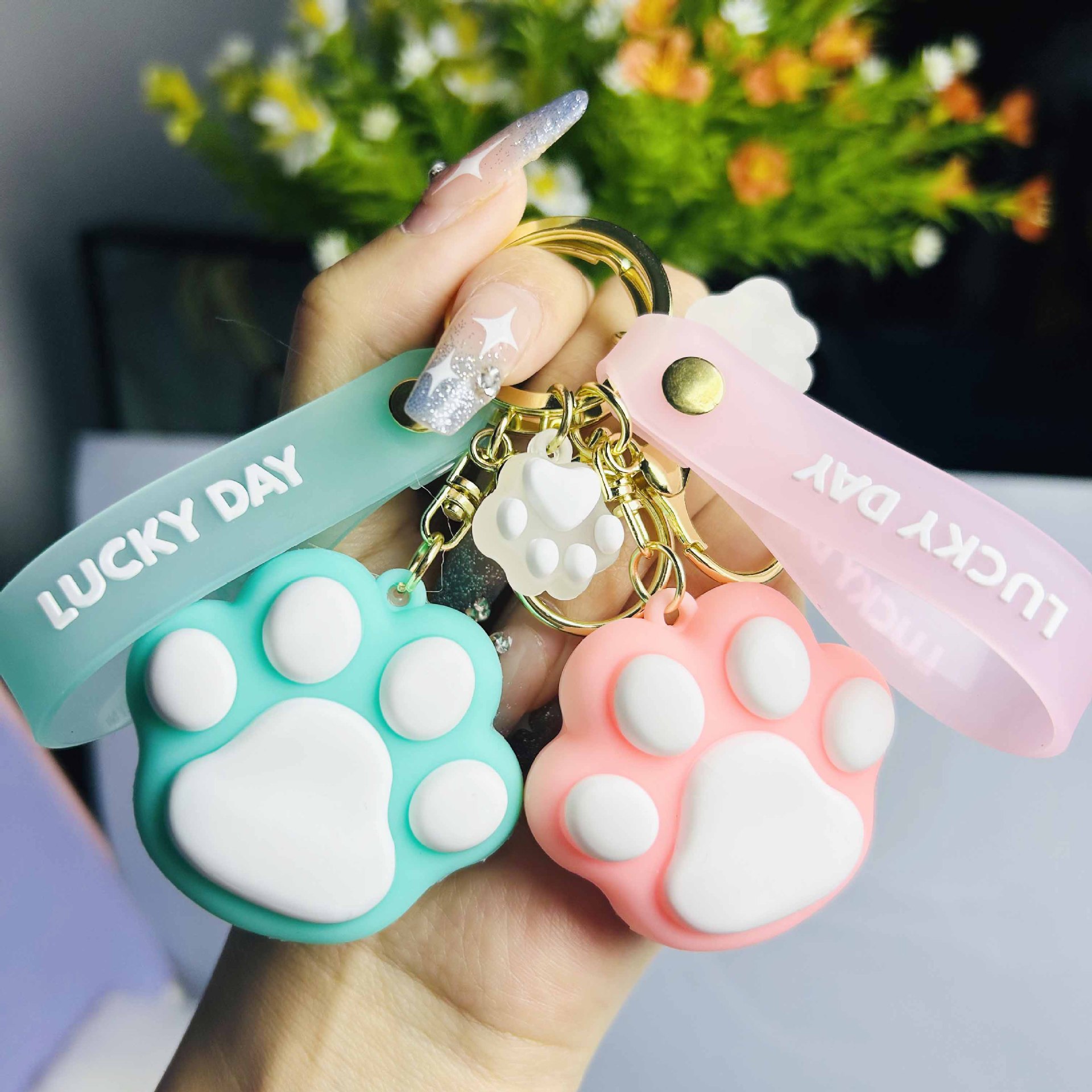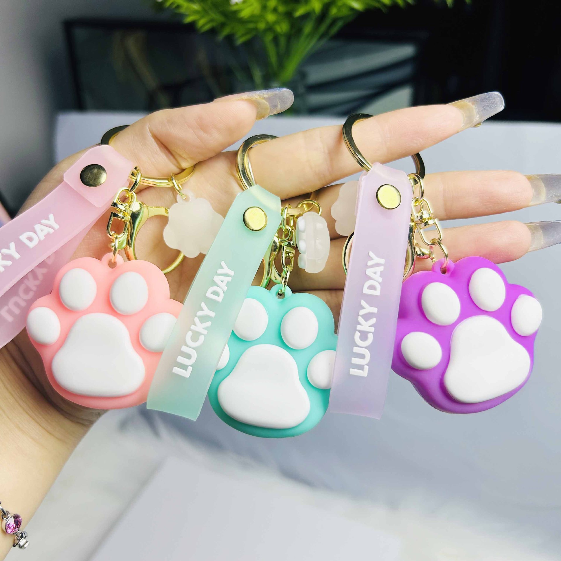 만화 창의적인 고양이 발톱 열쇠고리 귀여운 남녀 패션 자동차 열쇠고리 가방 장식 소형 선물 도매스토어 가기