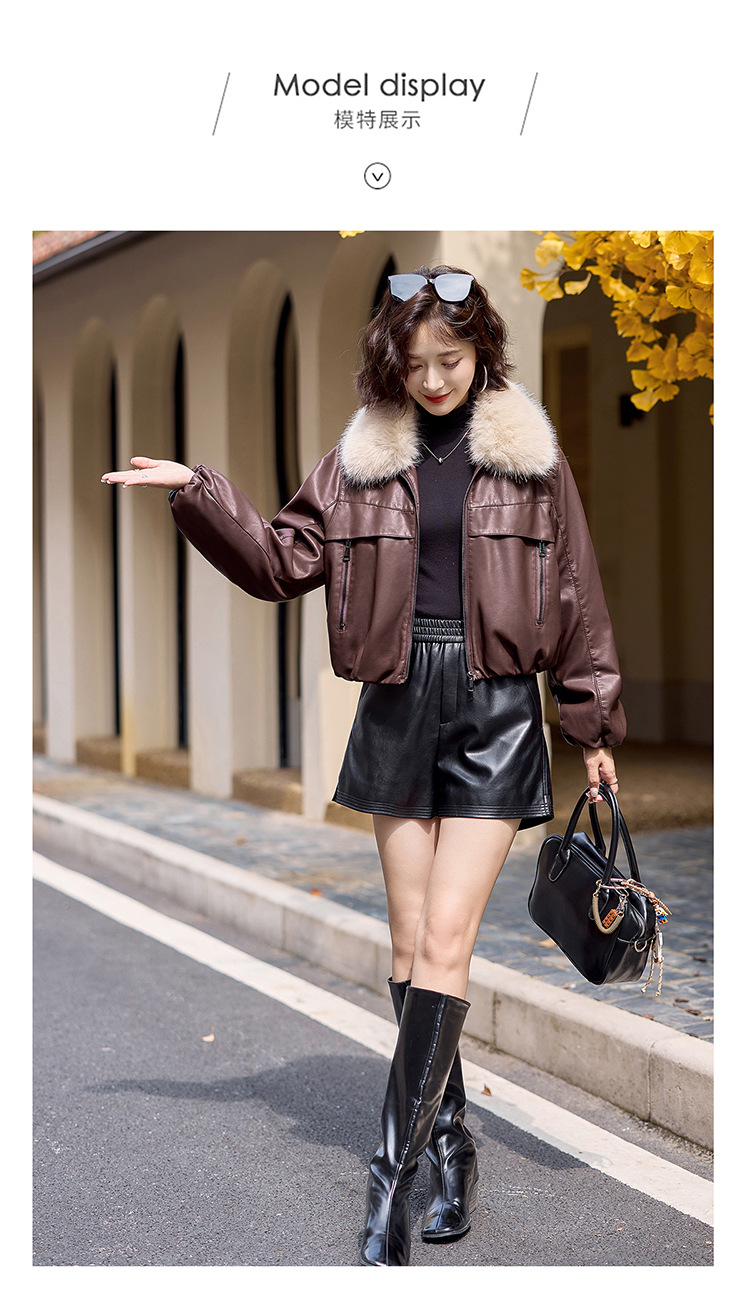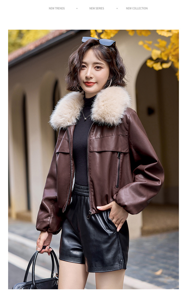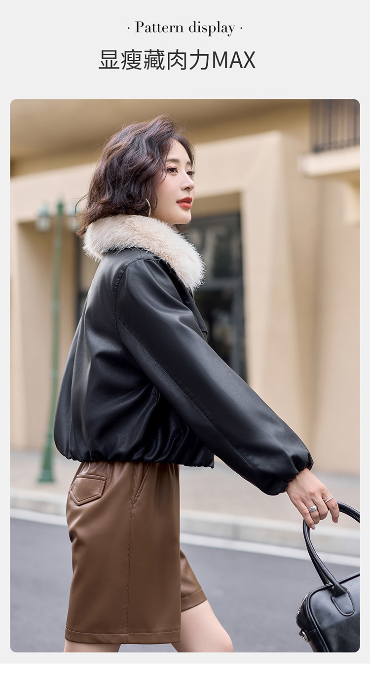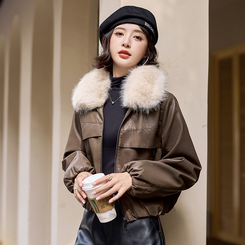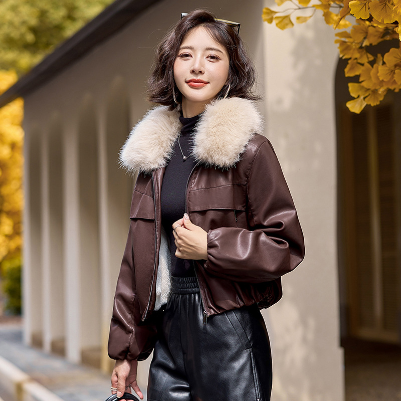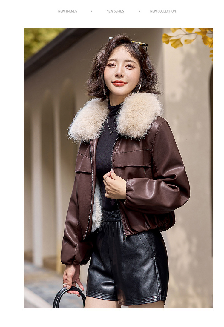 여성용 겨울 2025 신상 두꺼운 PU 가죽 자켓, 작은 사이즈 숏 스타일 레트로 퍼 칼라 패딩 자켓스토어 가기
