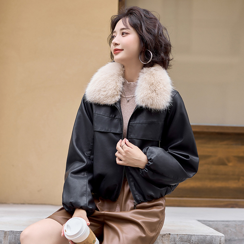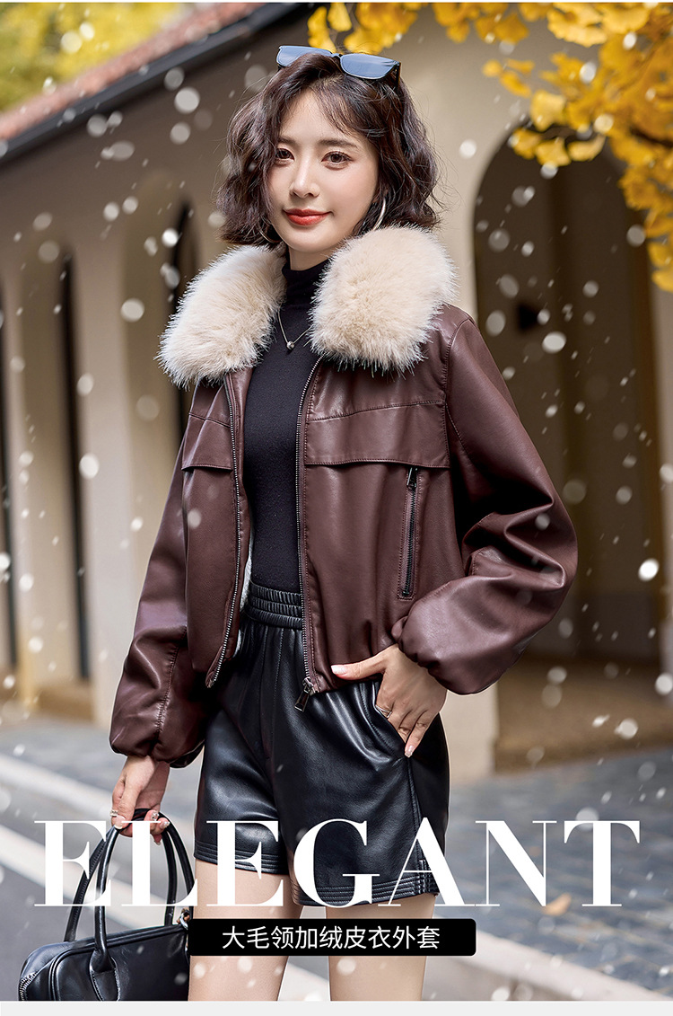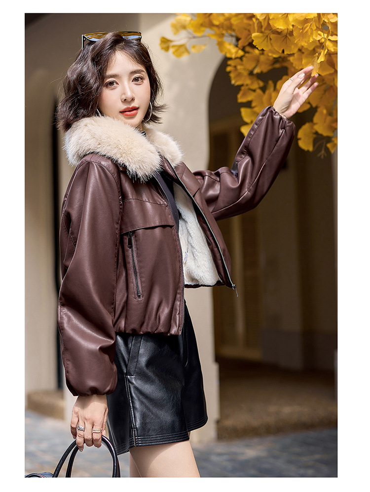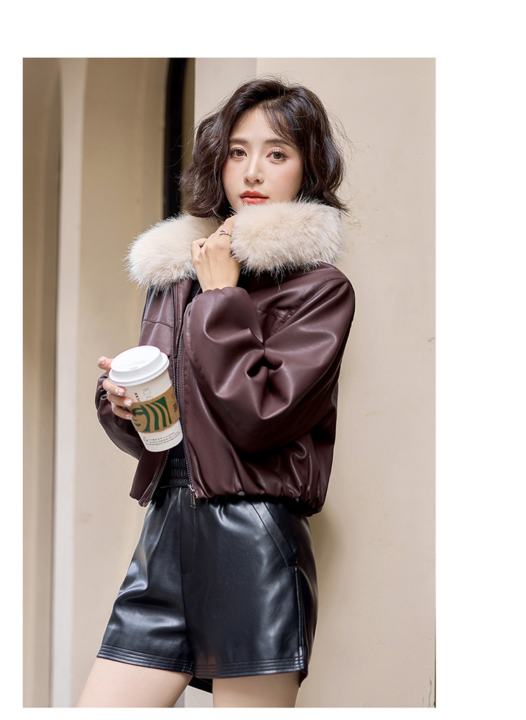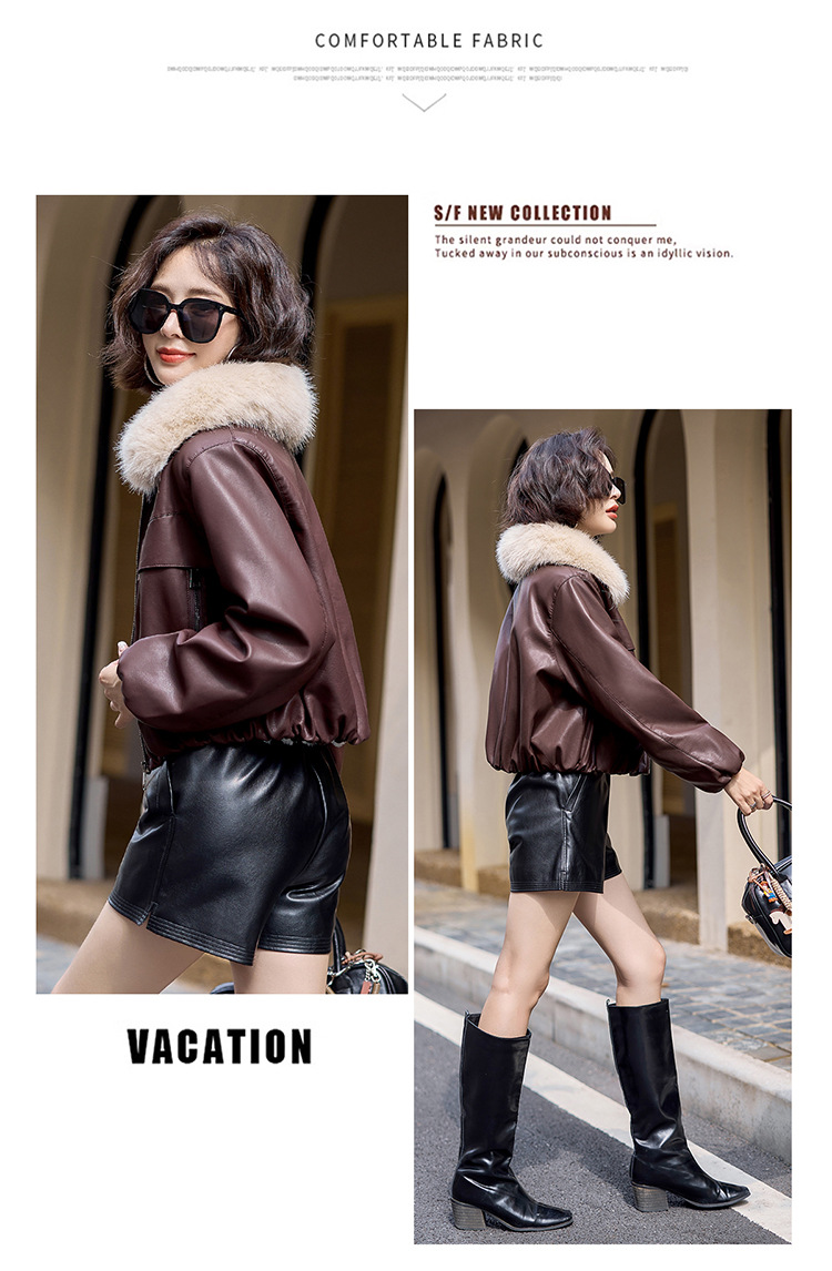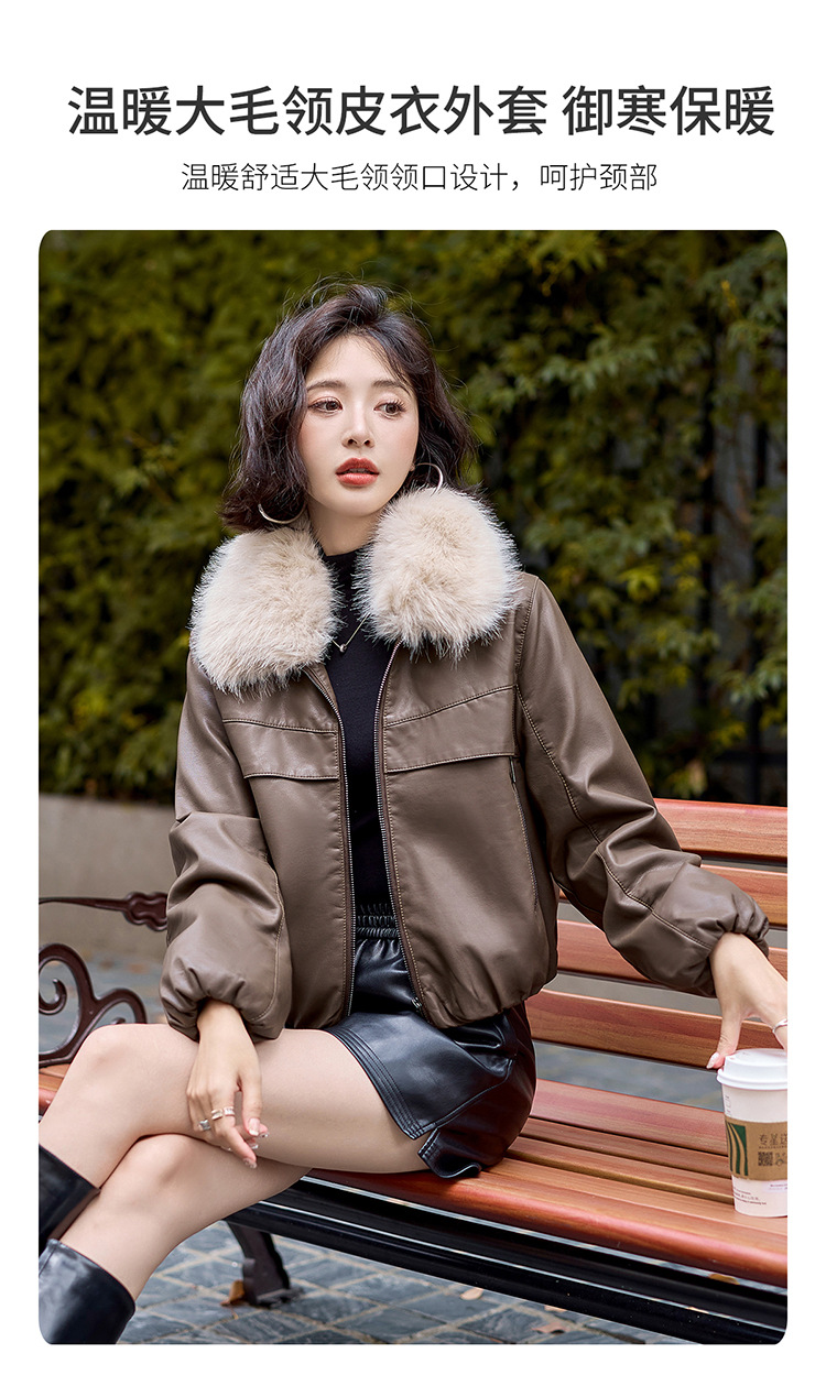 여성용 겨울 2025 신상 두꺼운 PU 가죽 자켓, 작은 사이즈 숏 스타일 레트로 퍼 칼라 패딩 자켓스토어 가기